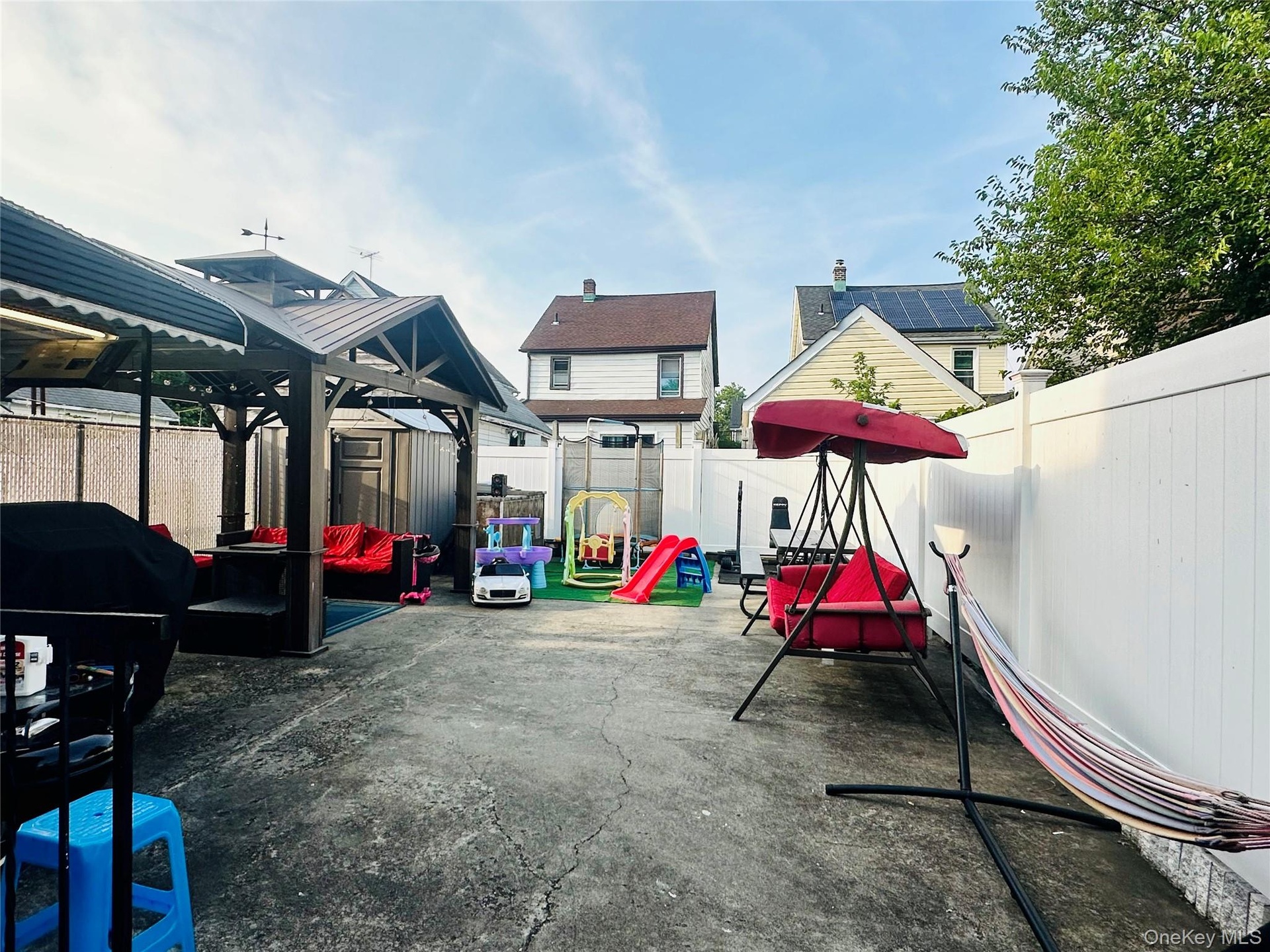 - Fenced backyard featuring a patio area, a gazebo, and grilling area