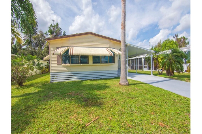 Discover comfortable living in this delightful 2-bedroom, 2-bathroom mobile home located in the highly desirable Spanish Lakes Golf Village, a 55+ active community in Port St. Lucie, FL. This home offers spacious interiors, a well-appointed kitchen, and a large screened-in porch--perfect for enjoying Florida's beautiful weather. Step into an inviting open floor plan creating a warm and welcoming atmosphere. The kitchen features ample cabinet space and a large pantry. The primary suite boasts an en-suite bathroom and a walk-in closet, providing comfort and privacy. Beyond the home, the community offers top-notch amenities, including golf, tennis, pickleball, clubhouse activities, swimming, and more--all designed for an engaging, active lifestyle.