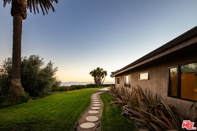 Your private Malibu hideaway awaits! This elevated Midcentury Modern architectural gem sits atop a bluff on a mostly flat acre of land behind a private gate. Marvel at jaw-dropping 270 degree ocean and mountain VIEWS, including Catalina Island and the Queen's Necklace. Every room of this 3,278 sq. ft 3 BR/3 Full BA plus office/den home has views to enjoy. A contemporary design with hardwood floors, quartz and stone countertops, vaulted ceilings and retractable glass doors which open to a heated pool, jacuzzi, and large grassy backyard from the living room and primary bedroom, allowing for the best of indoor/outdoor Malibu living. Special features include: walk-in closets, full powder bath, huge laundry room, 2-car garage, 2 interior and 1 exterior gas fireplaces, wine fridge, brand new Kitchen-Aid fridge, all high-end appliances, solar panels for an extremely low energy bill, and more! Experience privacy without losing quick access to all the best amenities Malibu has to offer.