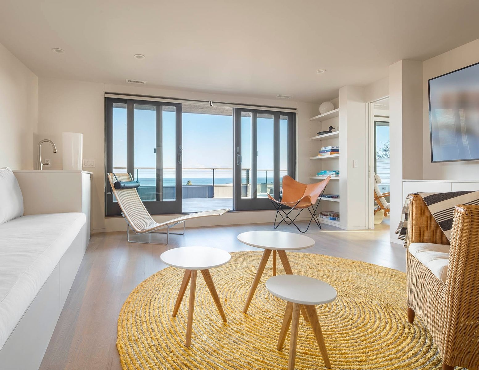 This completely reconstructed Hither Hills home was designed by award winning architects and professionally decorated throughout. Featuring ocean-facing walls of glass leading to spacious decks on two levels, four bedrooms each with en-suite bathrooms, spacious great room, dining area and kitchen. Second floor Master Suite has adjacent lounge area with wet bar and large screen TV. 1-1/2 blocks from ocean and private beach parking..