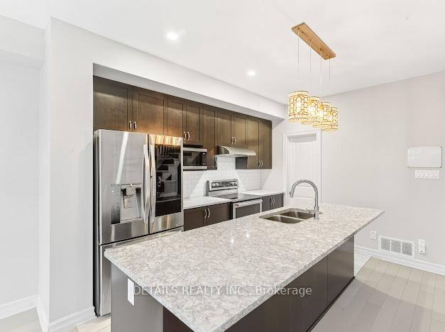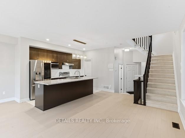 Built in 2019, this spacious end-unit townhome offers over 2,500 sq. ft. of beautifully updated living space in a highly walkable, family-friendly neighbourhood. The main floor features a functional open-concept layout with a bright and spacious living room, a chefs kitchen with granite countertops and a large island, a walk-in pantry, and access to a private backyard. The oversized garage provides ample storage and convenience.Upstairs, you'll find three generously sized bedrooms, including a spacious primary suite, plus a full laundry room. The fully finished basement adds valuable extra living space perfect for a home office, gym, or recreation area.