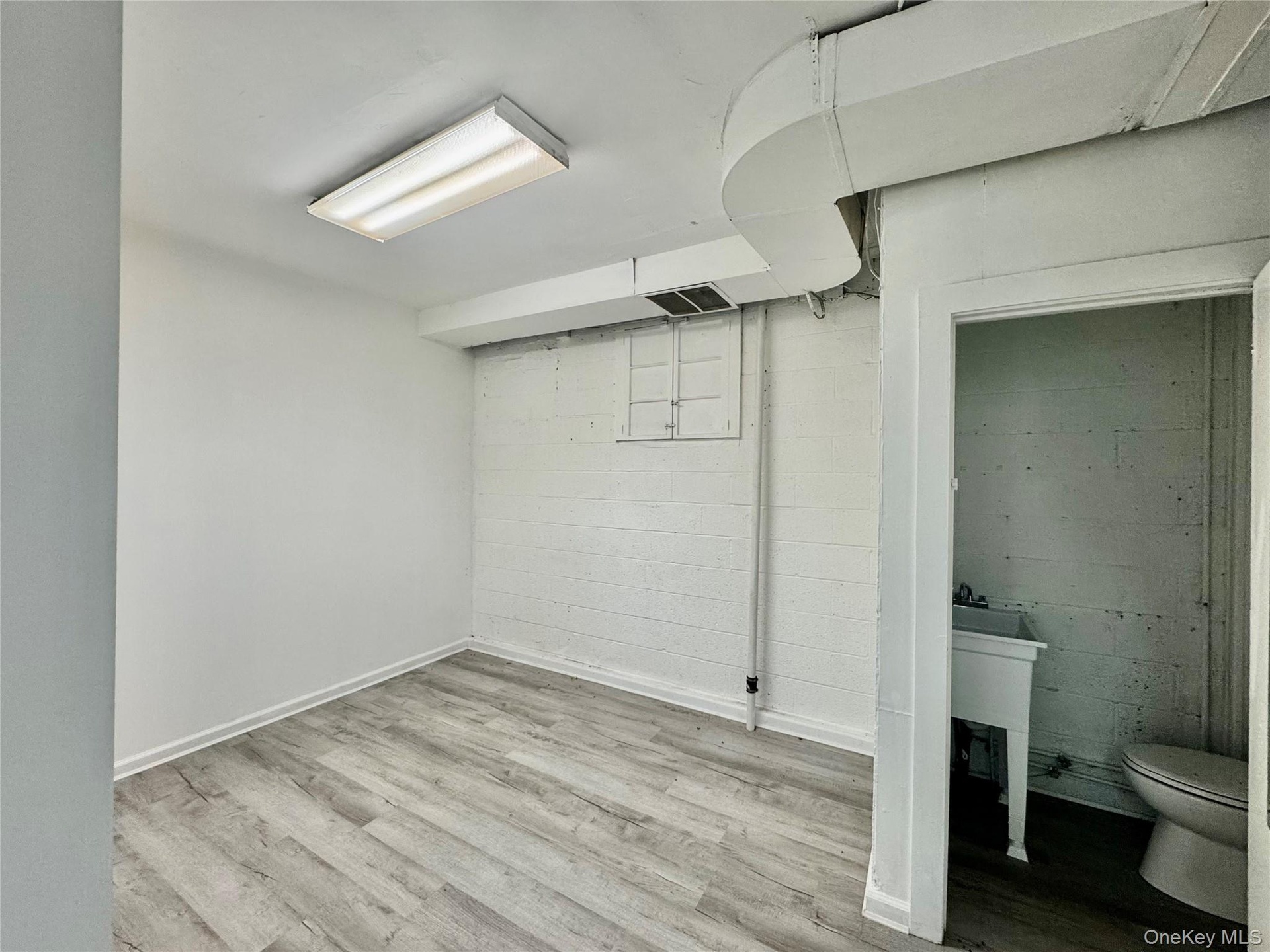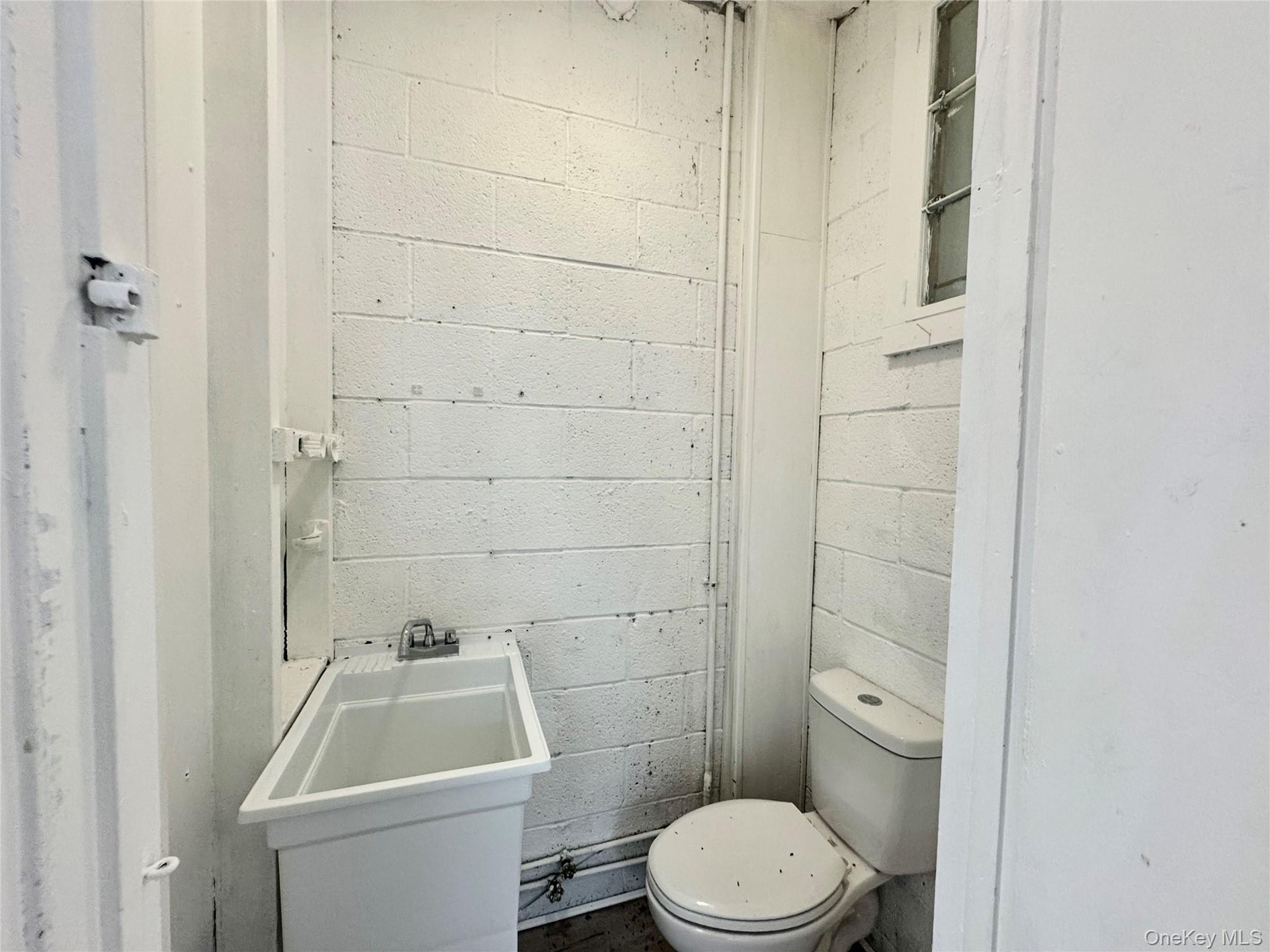 - 1st floor Half bathroom featuring a sink and concrete block wall