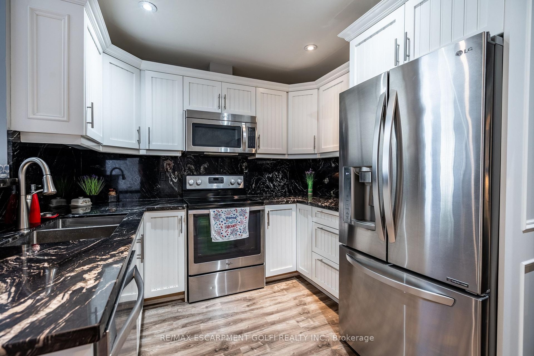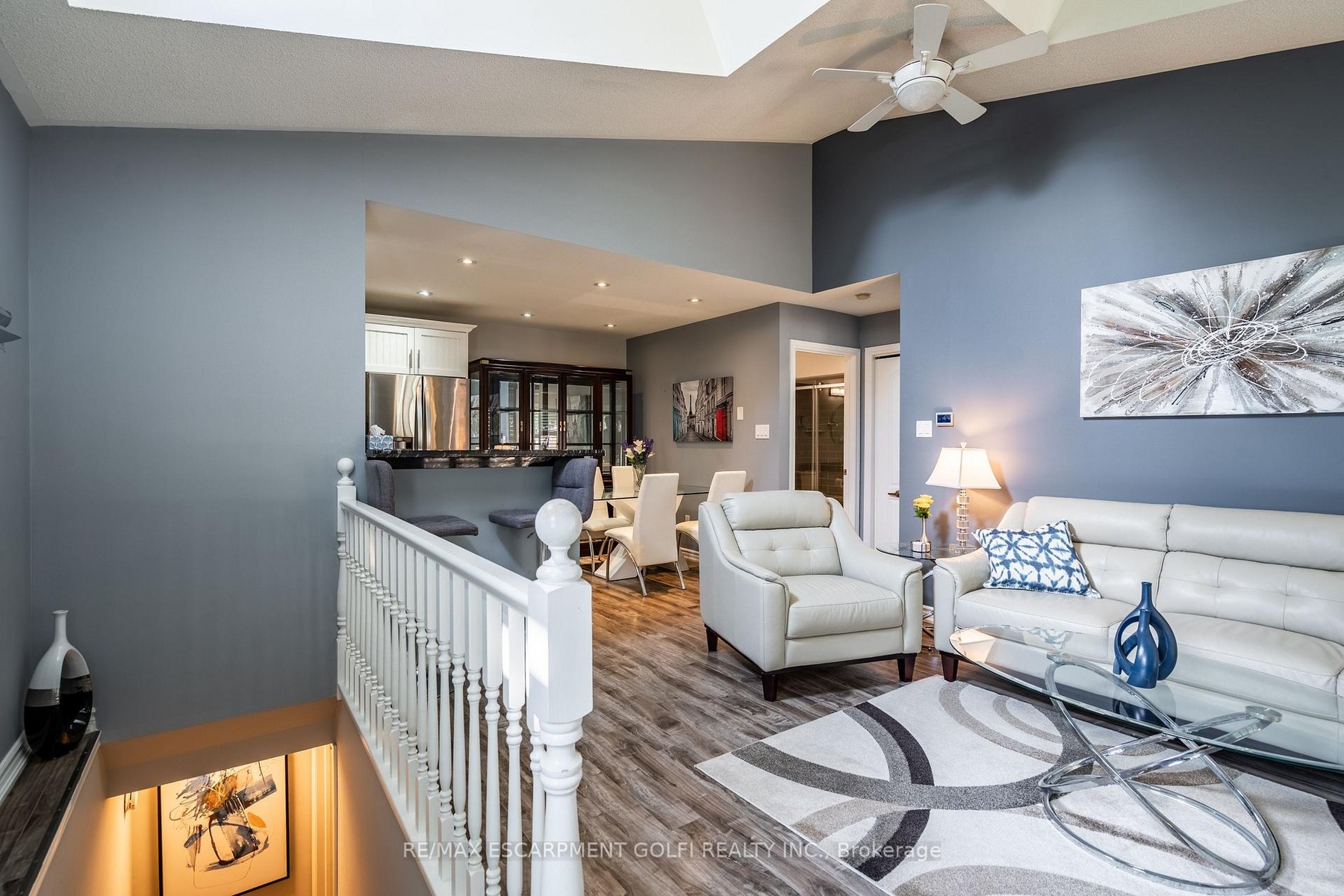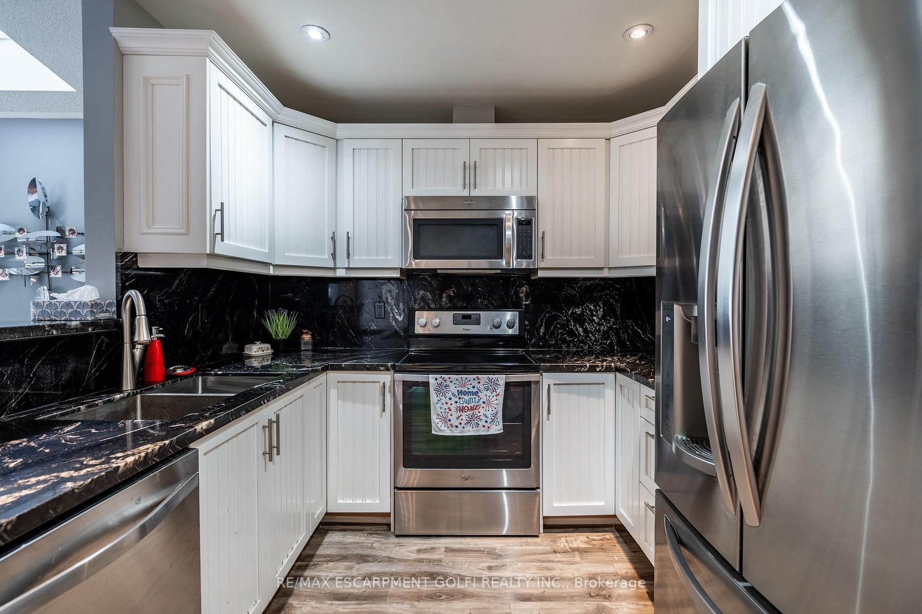 This Loved Home Will Impress You! Welcome to a beautifully maintained and thoughtfully designed end unit home that truly stands out. With main floor living and main floor laundry, this home offers comfort and convenience all in one. Youll be welcomed by abundant natural sunlight streaming through every room, creating a warm and inviting atmosphere. The kitchen is a true showstopper - perfect for entertaining or enjoying everyday meals. Step outside to your private terrace, ideal for morning coffee or evening relaxation. The finished basement adds even more living space, offering flexibility. Enjoy your own large parking space and visitor parking available. This community is close to shopping, restaurants, parks, and the prestigious Hamilton Golf and Country Club - this home offers the perfect blend of lifestyle and location.