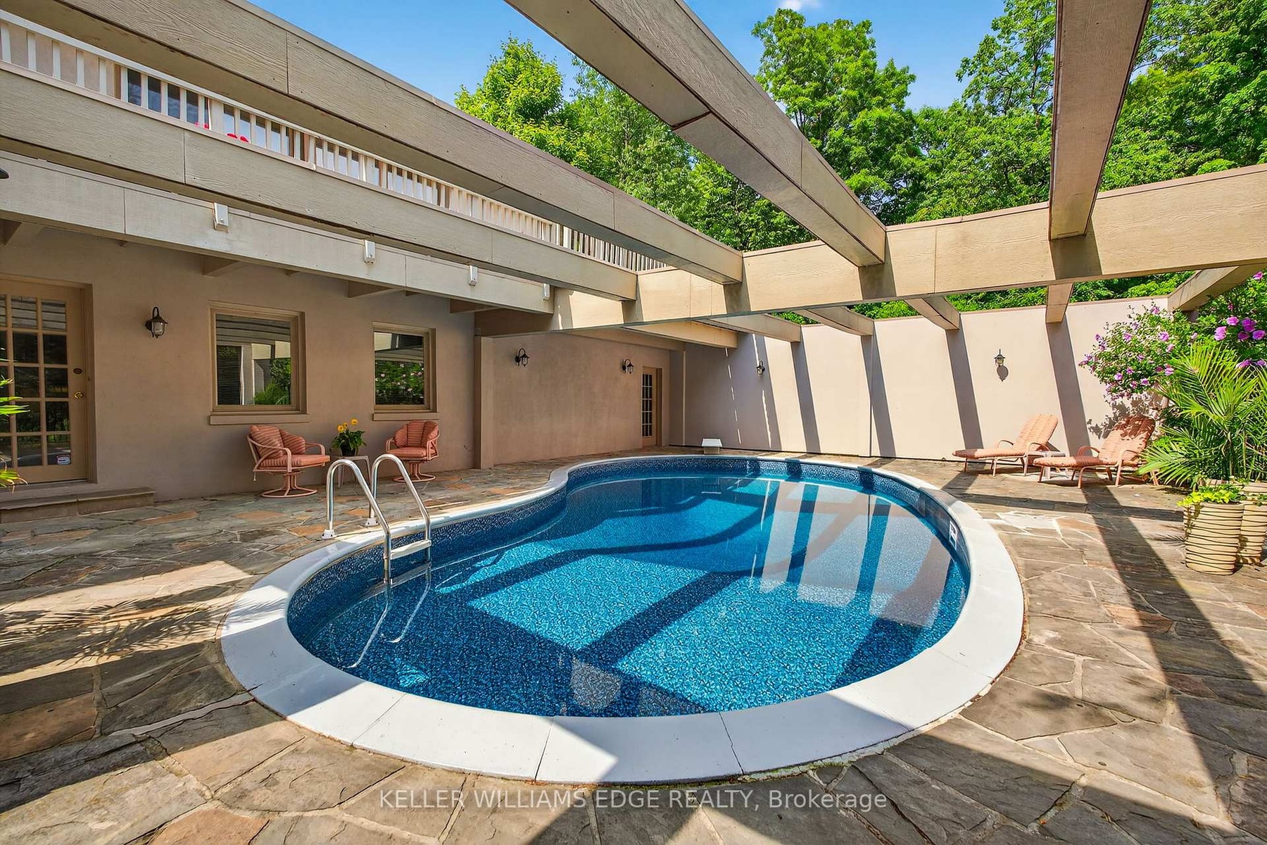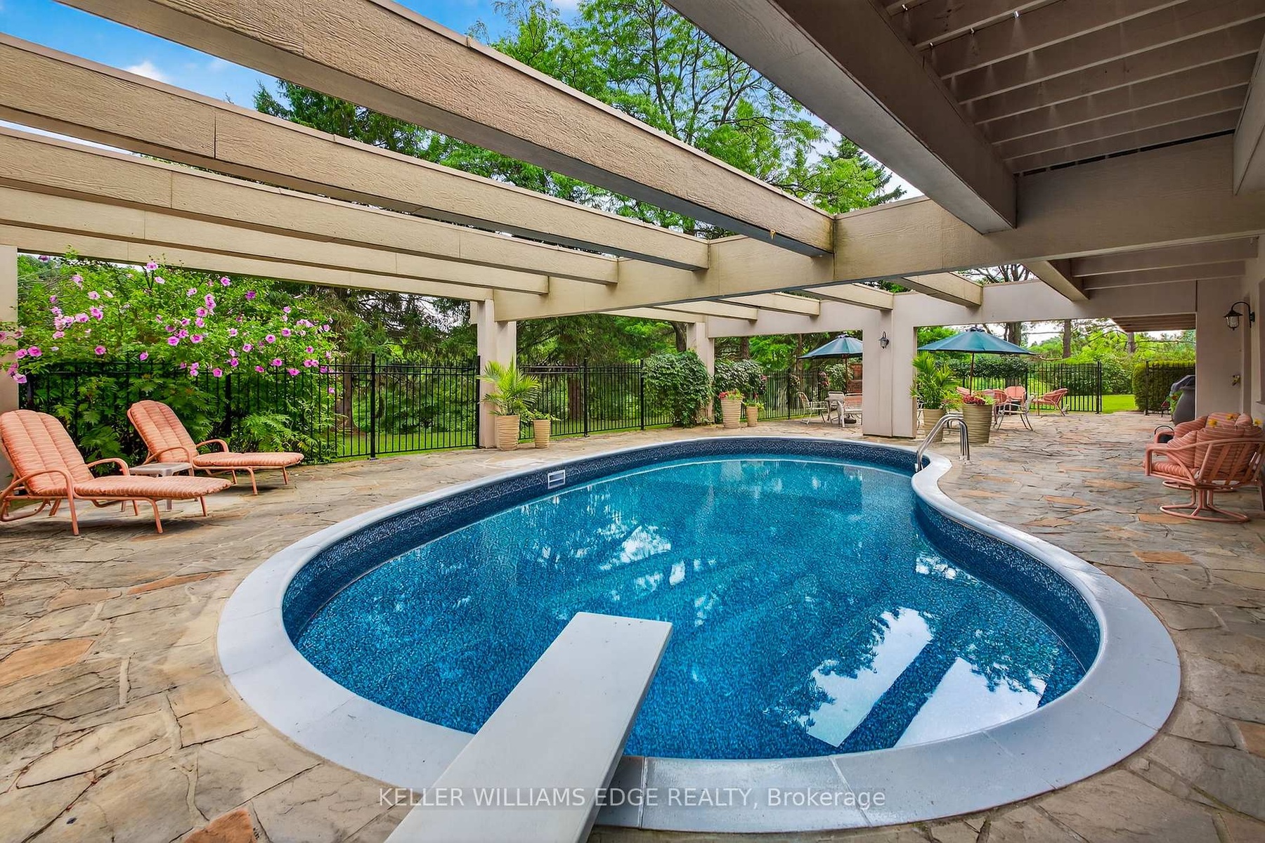 DescriptionThe Ultimate Private Retreat 50 Acres of Luxury. A long, winding tree-lined driveway leads you to 50 acres of complete privacy, a sanctuary for those who value seclusion and space. This 5-bedroom, 6-bath estate seamlessly blends timeless luxury with endless possibilities for generating income, situated on professionally landscaped grounds featuring a private pond, towering trees, English-style gardens, and an in-ground pool. Designed for connection and joy, the property features sprawling patios for BBQs and pizza nights, lawn games, and the pond for canoeing or skating in winter. There's also room to farm or pursue other income-generating opportunities, plus endless walking paths to explore your private paradise. Inside, the main floor offers four bedrooms, expansive principal rooms, and a layout that flows naturally, with windows framing serene views of the gardens, stone outcroppings, and mature trees. Upstairs, a private fifth bedroom, full bathroom, and living area create a flexible retreat for guests, in-laws, or older children. The finished lower level includes two recreation areas, a dedicated office, and space for hobbies, movie nights, or work-from-home setups. Car enthusiasts and hobbyists will appreciate the drive shed, perfect for storing cars, boats, snowmobiles, tractors, or tools. With 3,641 sq ft above grade and 5,851 sq ft of total living space, this is a home designed for living fully, entertaining generously, and creating memories for generations. A private country sanctuary where luxury, lifestyle, income potential, and possibility converge.Amenities- Backs On Green Belt