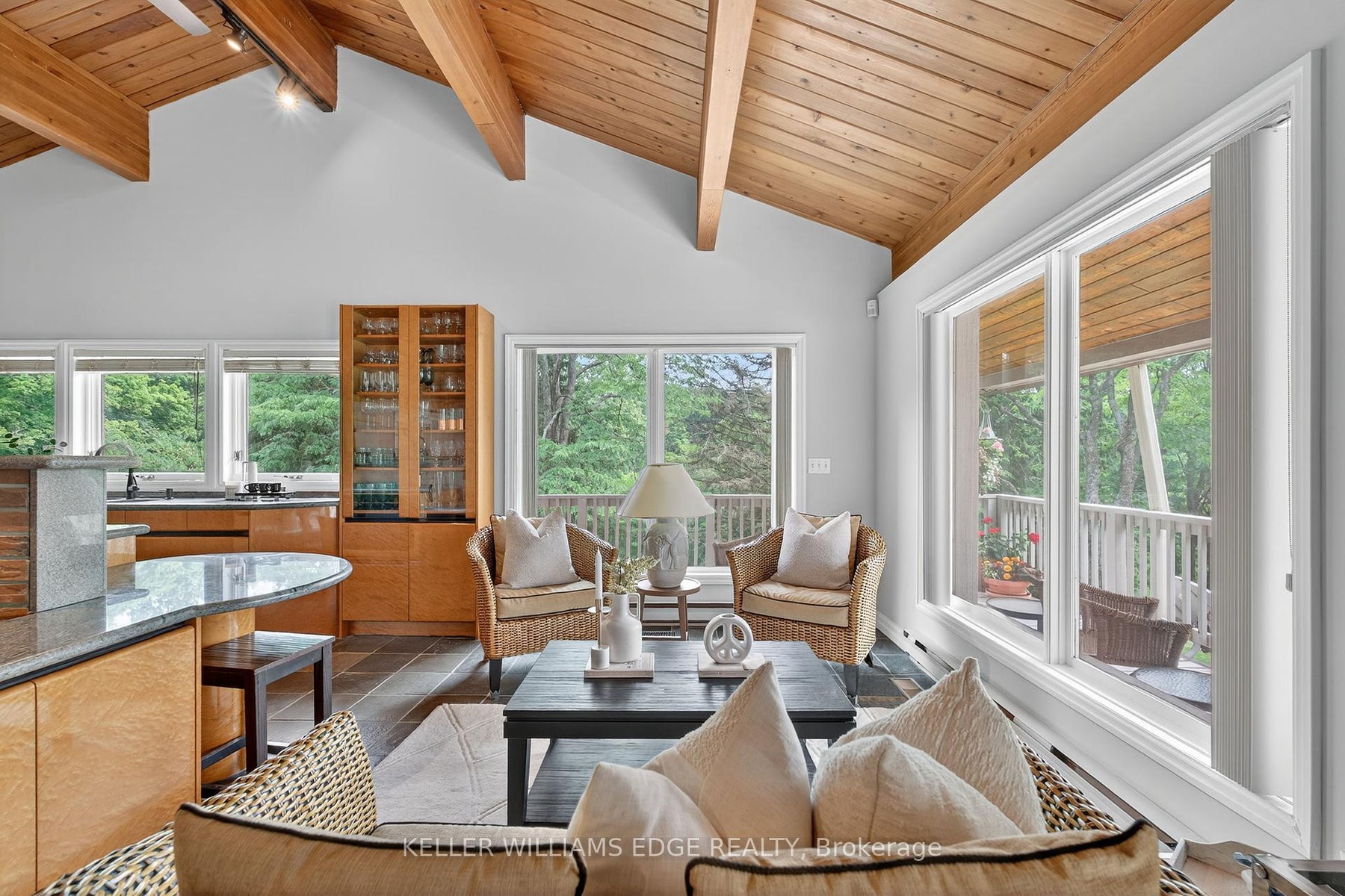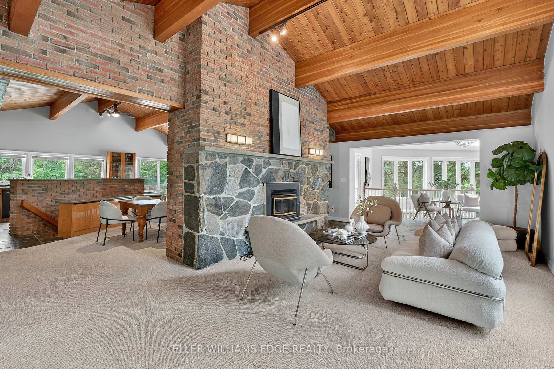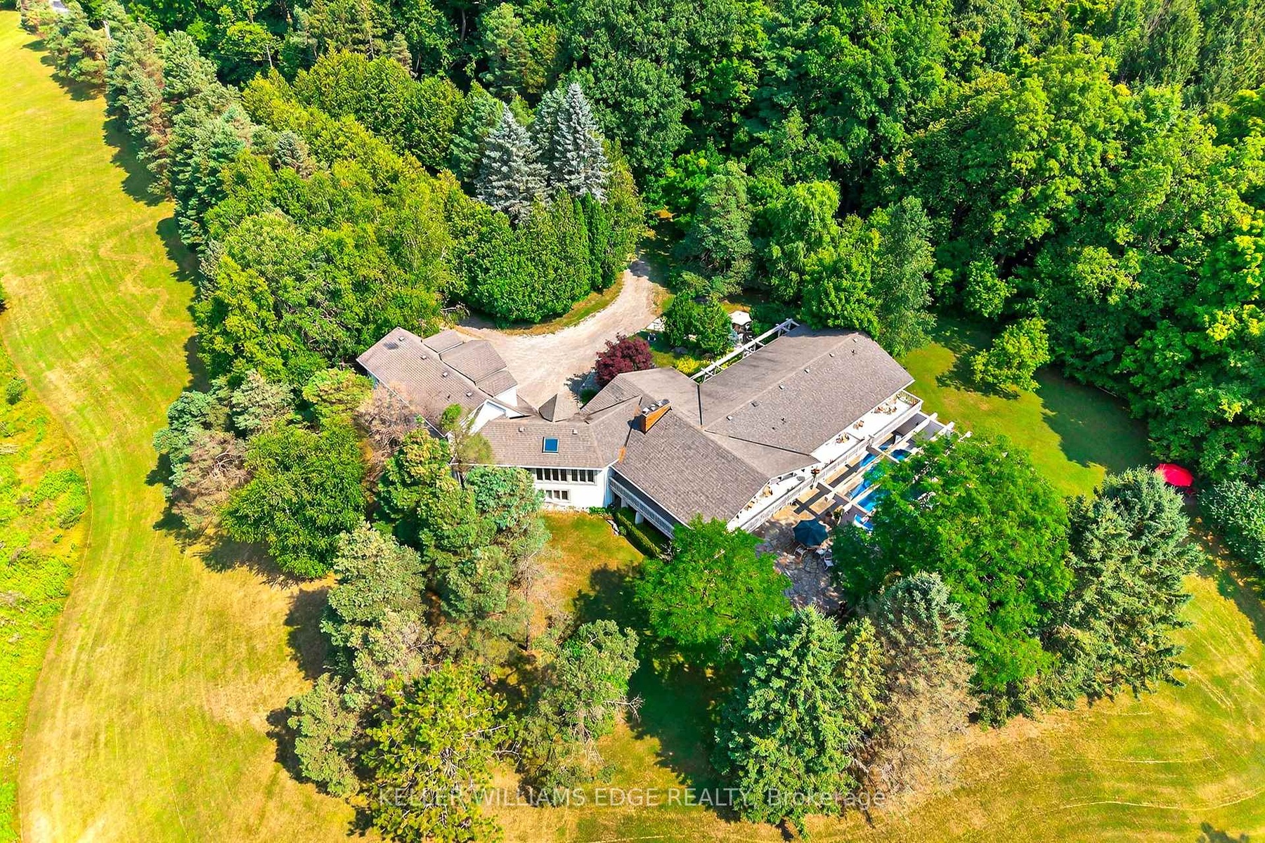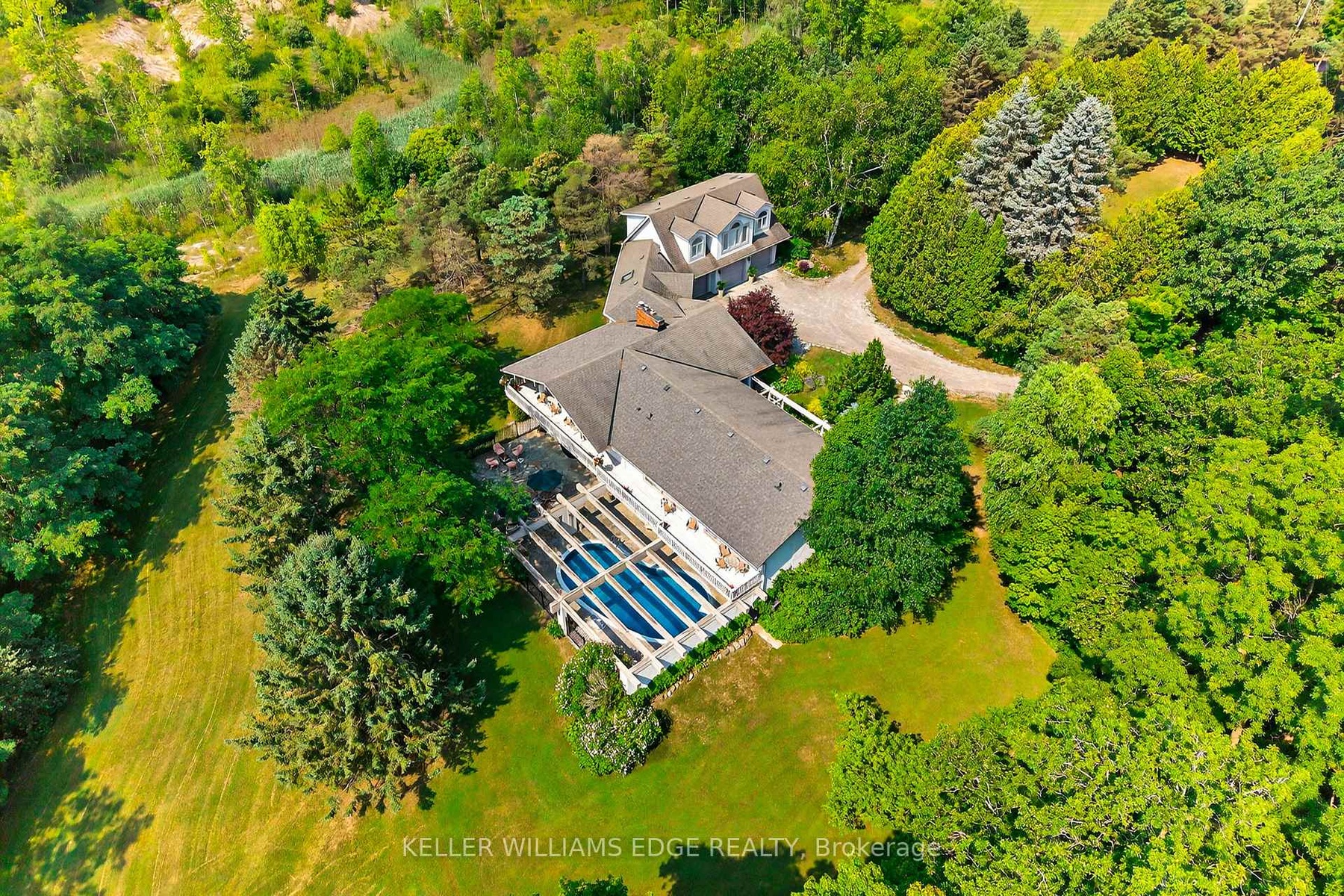 The Ultimate Private Retreat 50 Acres of Luxury. A long, winding tree-lined driveway leads you to 50 acres of complete privacy, a sanctuary for those who value seclusion and space. This 5-bedroom, 6-bath estate seamlessly blends timeless luxury with endless possibilities for generating income, situated on professionally landscaped grounds featuring a private pond, towering trees, English-style gardens, and an in-ground pool. Designed for connection and joy, the property features sprawling patios for BBQs and pizza nights, lawn games, and the pond for canoeing or skating in winter. There's also room to farm or pursue other income-generating opportunities, plus endless walking paths to explore your private paradise. Inside, the main floor offers four bedrooms, expansive principal rooms, and a layout that flows naturally, with windows framing serene views of the gardens, stone outcroppings, and mature trees. Upstairs, a private fifth bedroom, full bathroom, and living area create a flexible retreat for guests, in-laws, or older children. The finished lower level includes two recreation areas, a dedicated office, and space for hobbies, movie nights, or work-from-home setups. Car enthusiasts and hobbyists will appreciate the drive shed, perfect for storing cars, boats, snowmobiles, tractors, or tools. With 3,641 sq ft above grade and 5,851 sq ft of total living space, this is a home designed for living fully, entertaining generously, and creating memories for generations. A private country sanctuary where luxury, lifestyle, income potential, and possibility converge.