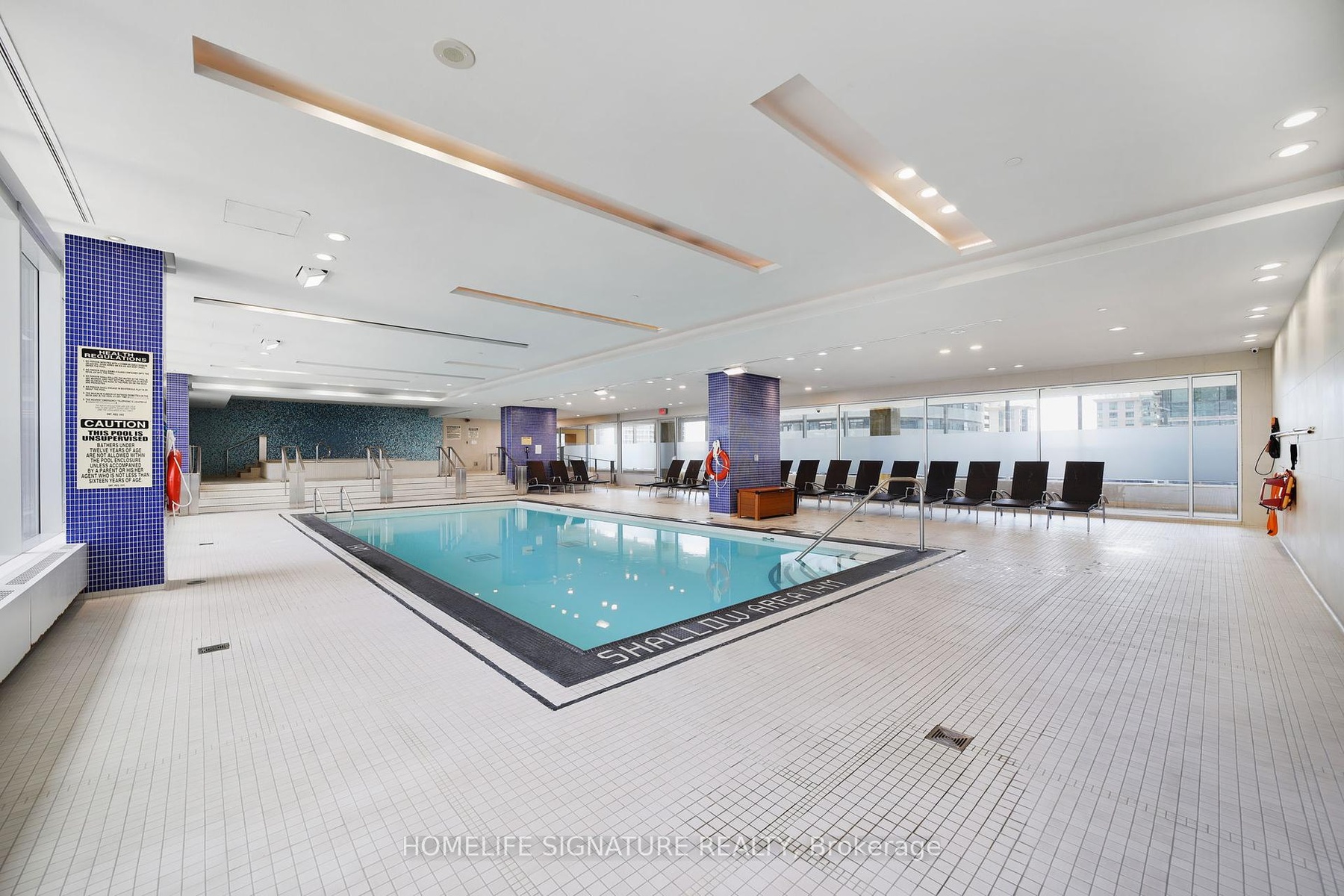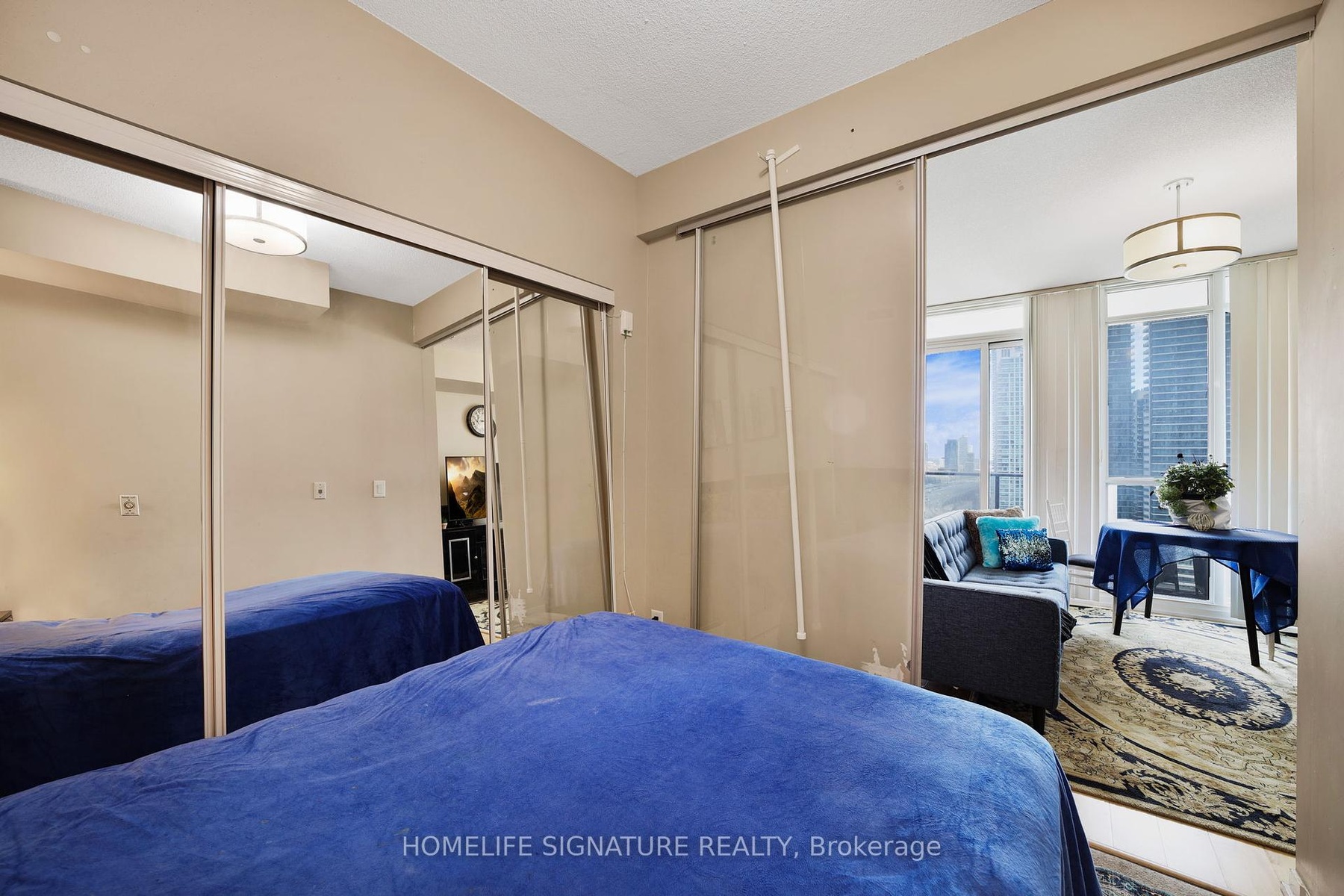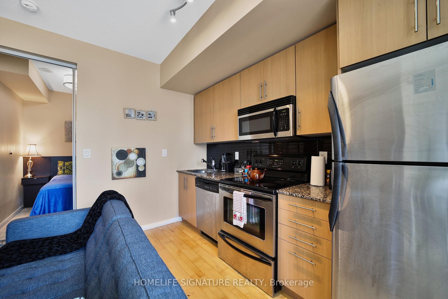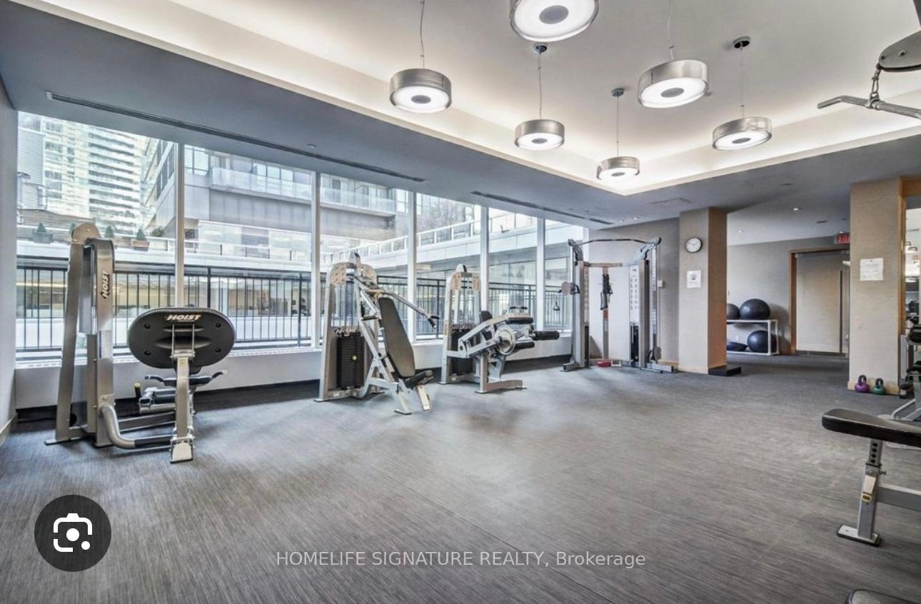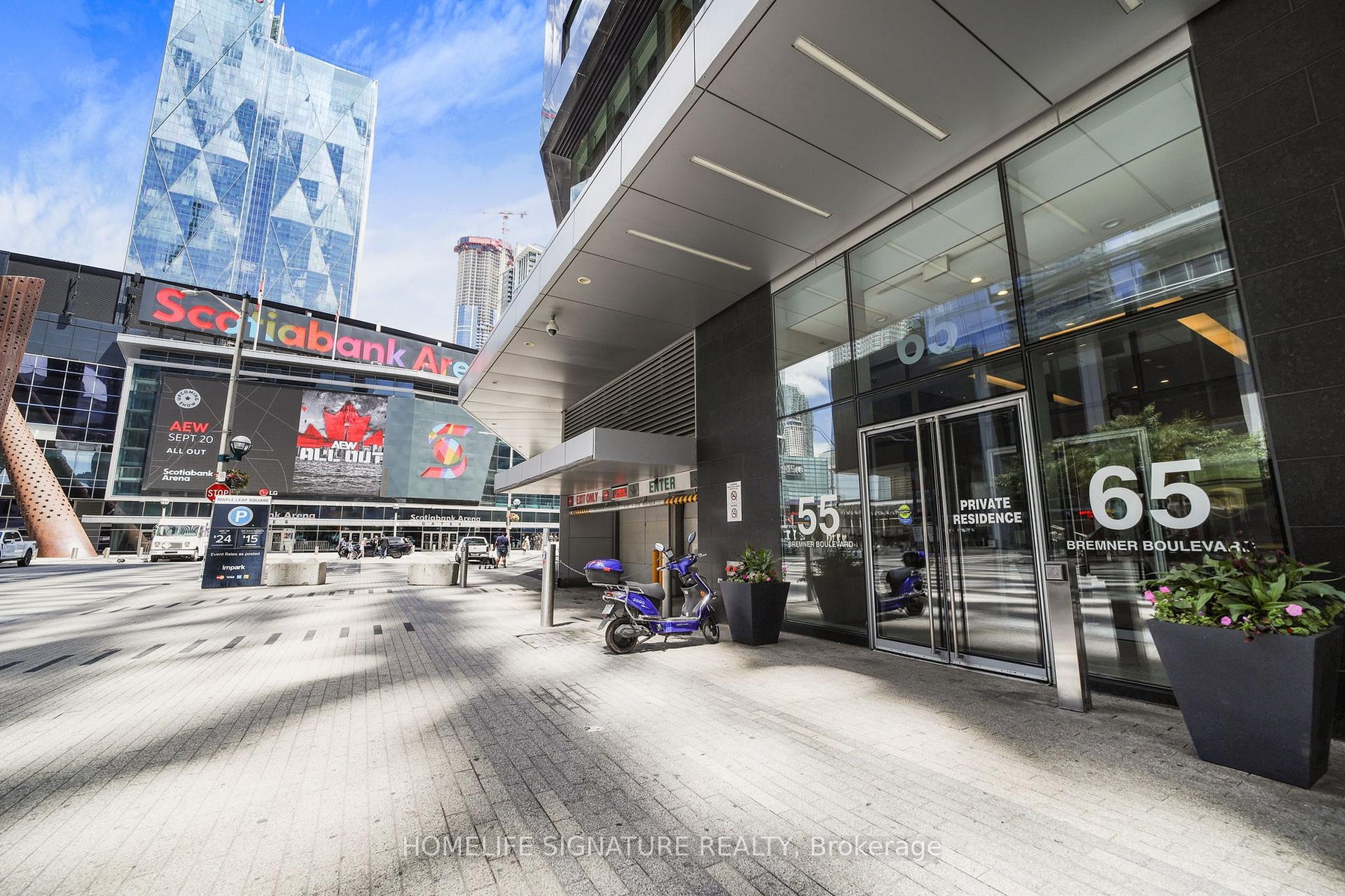 Welcome to Maple Leaf Square where downtown living meets luxury and convenience! This bright and well-designed 1-bedroom suite offers approximately 500 sq. ft. of open-concept living space, 9-ft ceilings, floor-to-ceiling windows, and a walk-out to a large balcony with unobstructed panoramic views of the CN Tower, Rogers Centre, and Toronto's shimmering waterfront. The modern kitchen features granite countertops, a sleek black subway tile backsplash, and a center island perfect for dining or entertaining. Hardwood flooring flows through the living and dining areas, while the spacious bedroom features cozy carpet and a mirrored closet. Locker included for extra storage. Enjoy world-class amenities: indoor & outdoor pools, hot tub, sauna, full gym, party room, theatre room, business center, rooftop Sky Lounge, guest suites, and 24-hour concierge. Direct PATH access, plus Metro grocery right in the building (2-hour free parking with $20 purchase). Steps to Union Station, Scotiabank Arena, Financial District, Harbourfront, and more. Move-in ready!