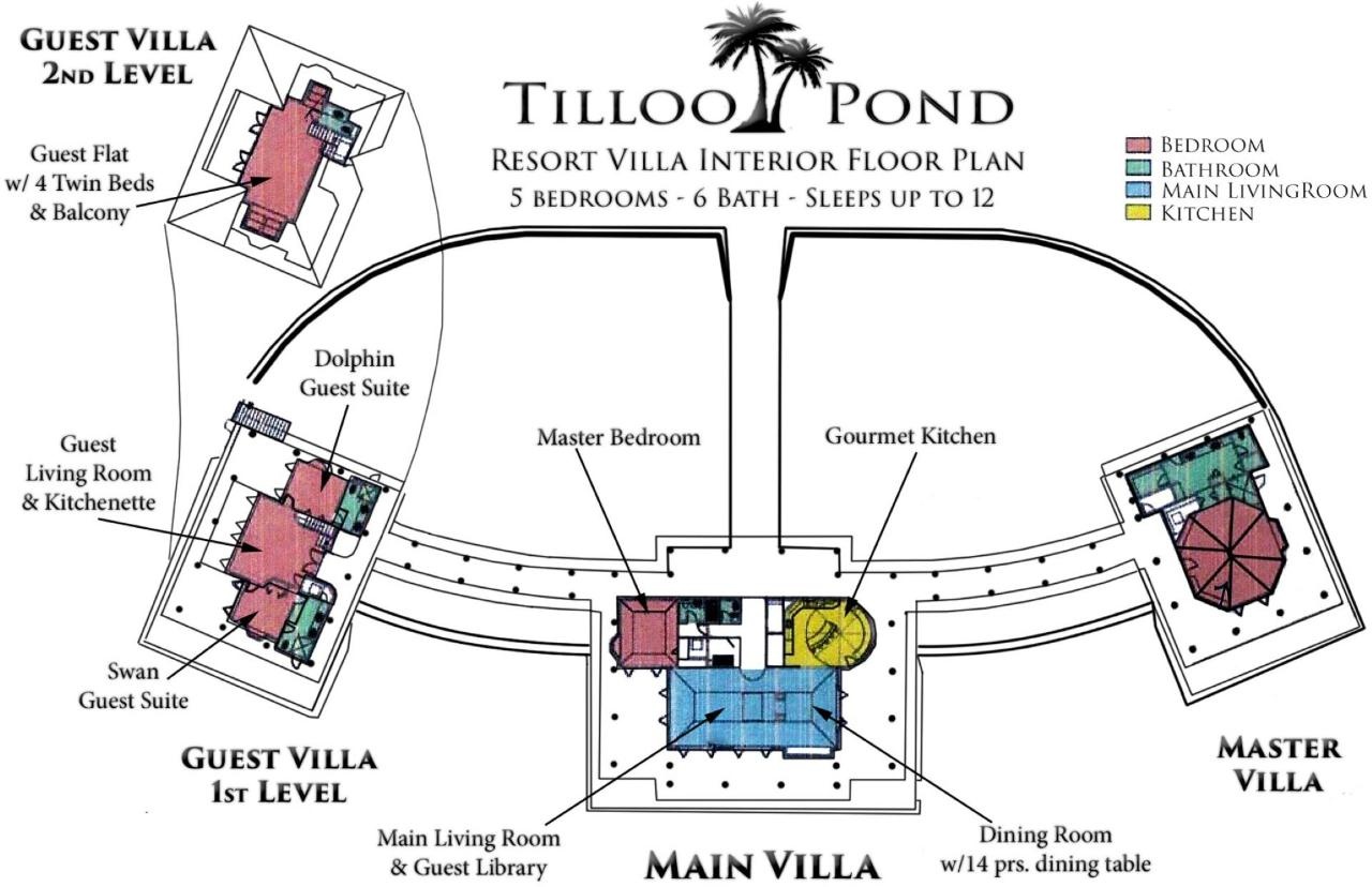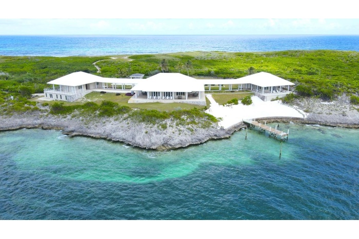 Welcome to Tilloo Pond Estate, a breathtaking oasis nestled on the stunning Tilloo Cay in Abaco, Bahamas. This remarkable property boasts 6,000 square feet of luxury, featuring 5 bedrooms and 6 bathrooms, and is situated on a sprawling 14-acre sea-to-sea parcel, in fact touching three bodies of water: the tranquil Tilloo Pond, the Sea of Abaco, and the Atlantic Ocean. The property is comprised of three villas connected by a covered breezeway: a Main Villa, a Master Suite Villa, and a Guest Villa. Throughout, there are two master suites, two guest rooms, a 4-twin bed loft, with 5.5 bathrooms, two living rooms, a gourmet kitchen, plus caretaker quarters. No expense has been spared on the decor and furnishing of this beautiful home with top of line fittings and finishings. Tilloo Pond is offered fully equipped and furnished including original artworks. The property features a swimming pool, a small private beach, as well as two private docks, one in the sheltered harbor, and one on the Sea of Abaco.