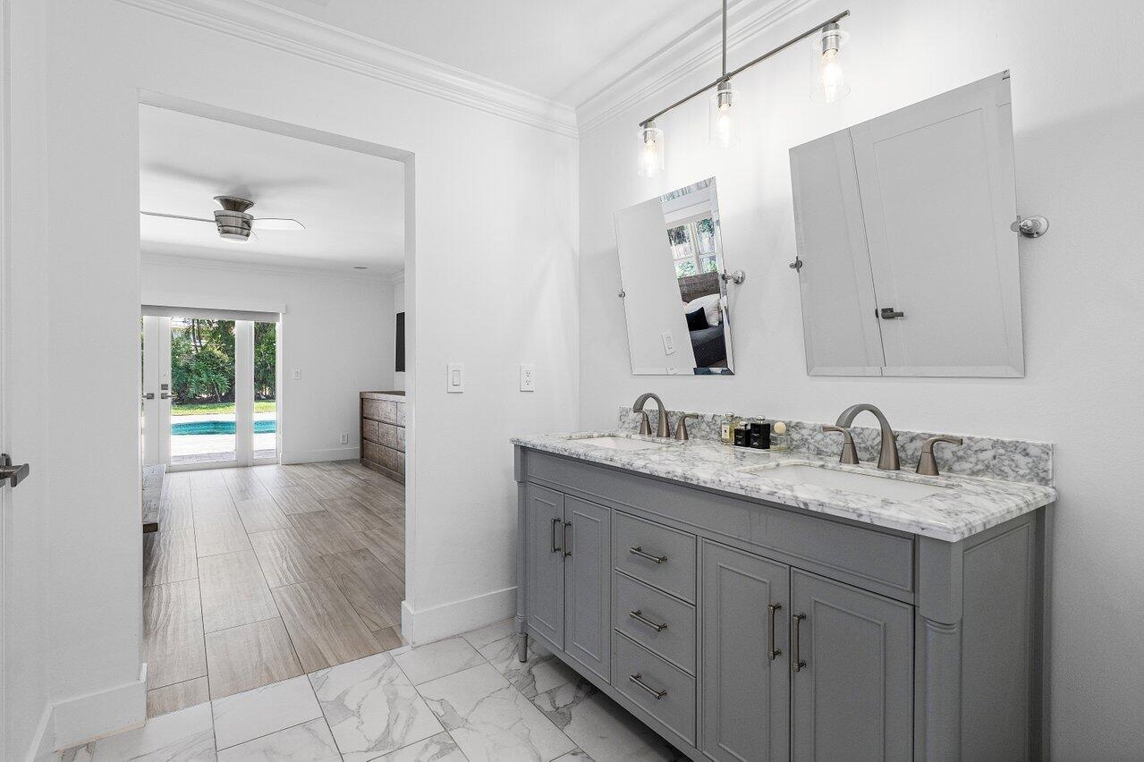 Located in the highly sought-after Lake Ida neighborhood, this beautifully updated home offers a spacious and open split floor plan with 5 bedrooms and 3 bathrooms. Set on a generous 19,000 sq ft lot on a quiet cul-de-sac, the property is within walking distance to one of Delray's top private schools--a fantastic bonus. The fully renovated interior features neutral tones, Italian-imported flooring, and a stunning kitchen with a large leathered quartzite island and light-washed wood cabinetry. Additional highlights include a recently renovated pool, a newer cement tile roof, impact glass windows, and updated plumbing and electrical systems. This is only the second time the home has been offered for sale--a rare opportunity to own a classic Florida gem.