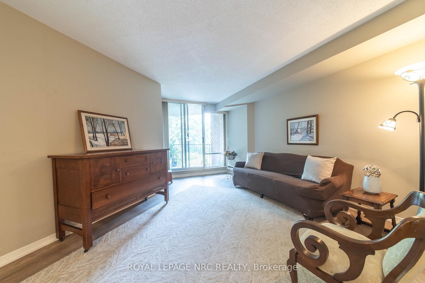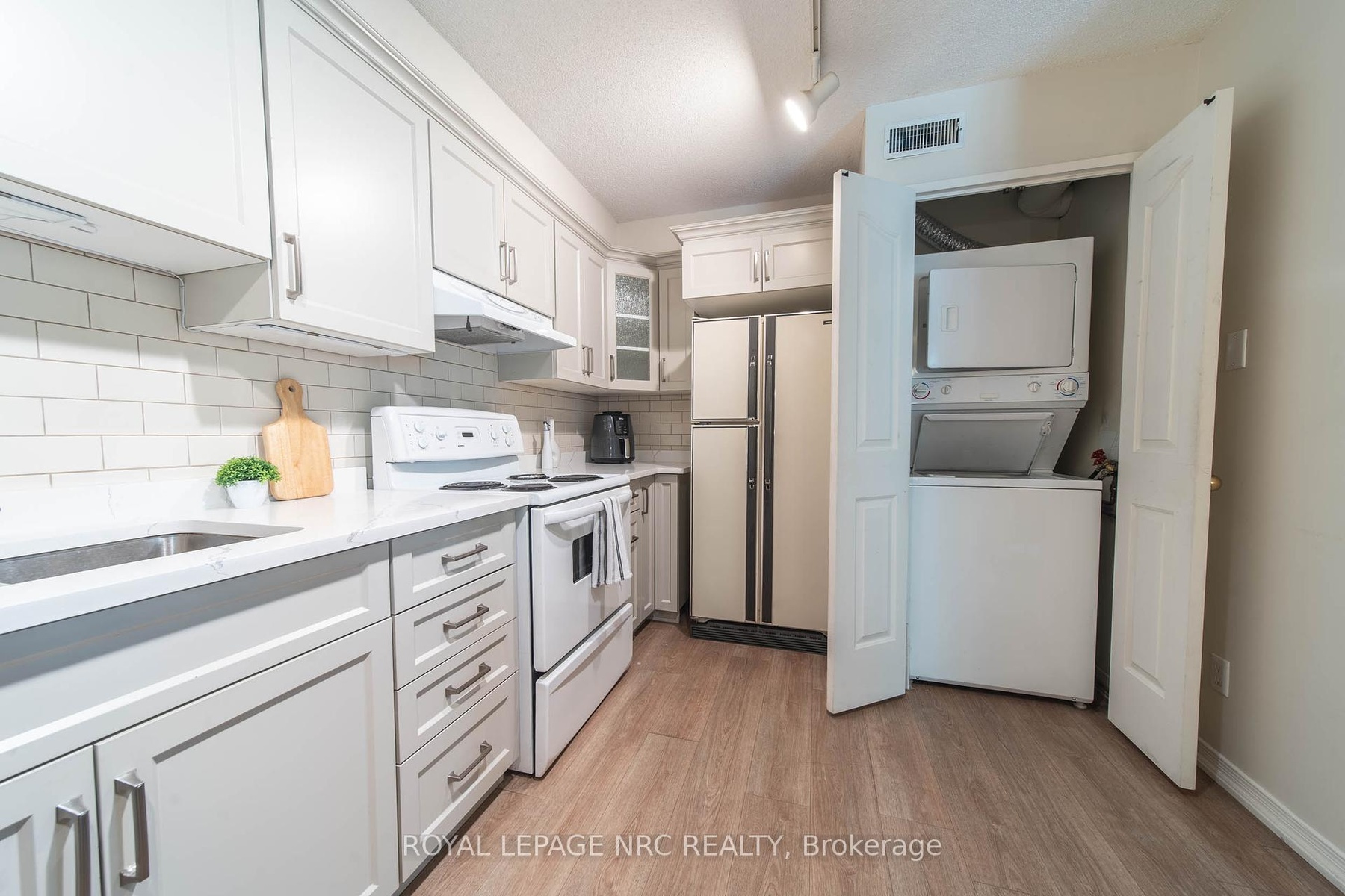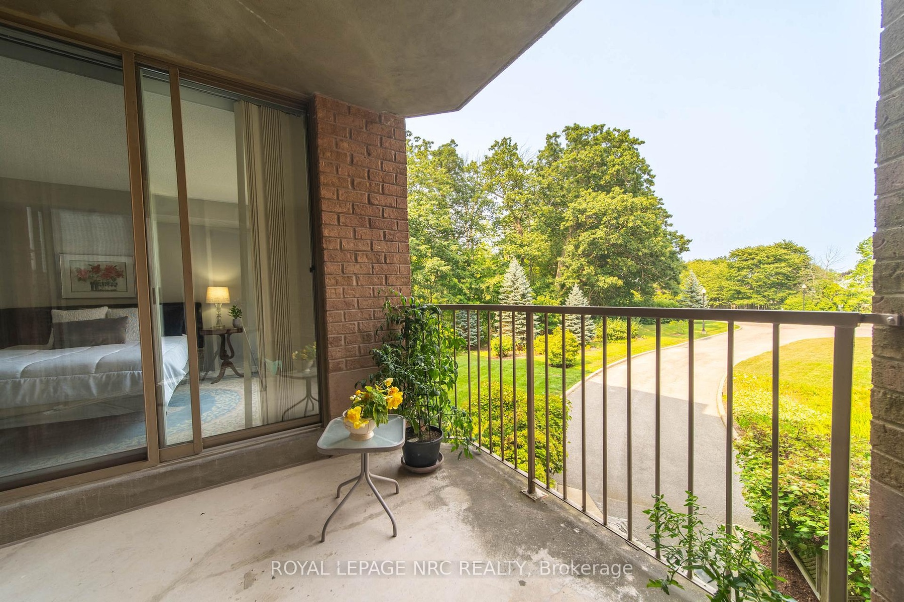 Welcome to this beautifully maintained 2-bedroom, 1-bath condo located in one of Niagara Falls most prestigious buildings, The Mansions of Forest Glen. Nestled among the fine homes of Mount Carmel, this suite offers a serene lifestyle with a private balcony overlooking lush conservation lands. The updated kitchen adds a modern touch, while the buildings exceptional amenities elevate your everyday living. Enjoy an indoor pool, concierge service, underground parking, party room, fitness centre, and guest suite. A rare opportunity to own in a sought-after location!