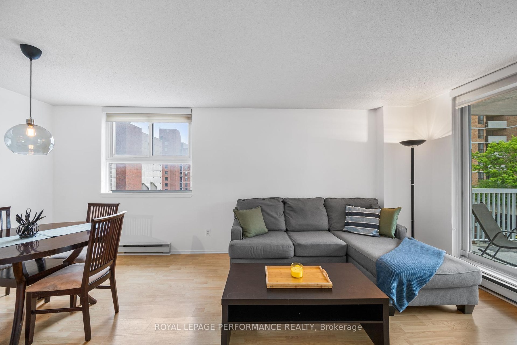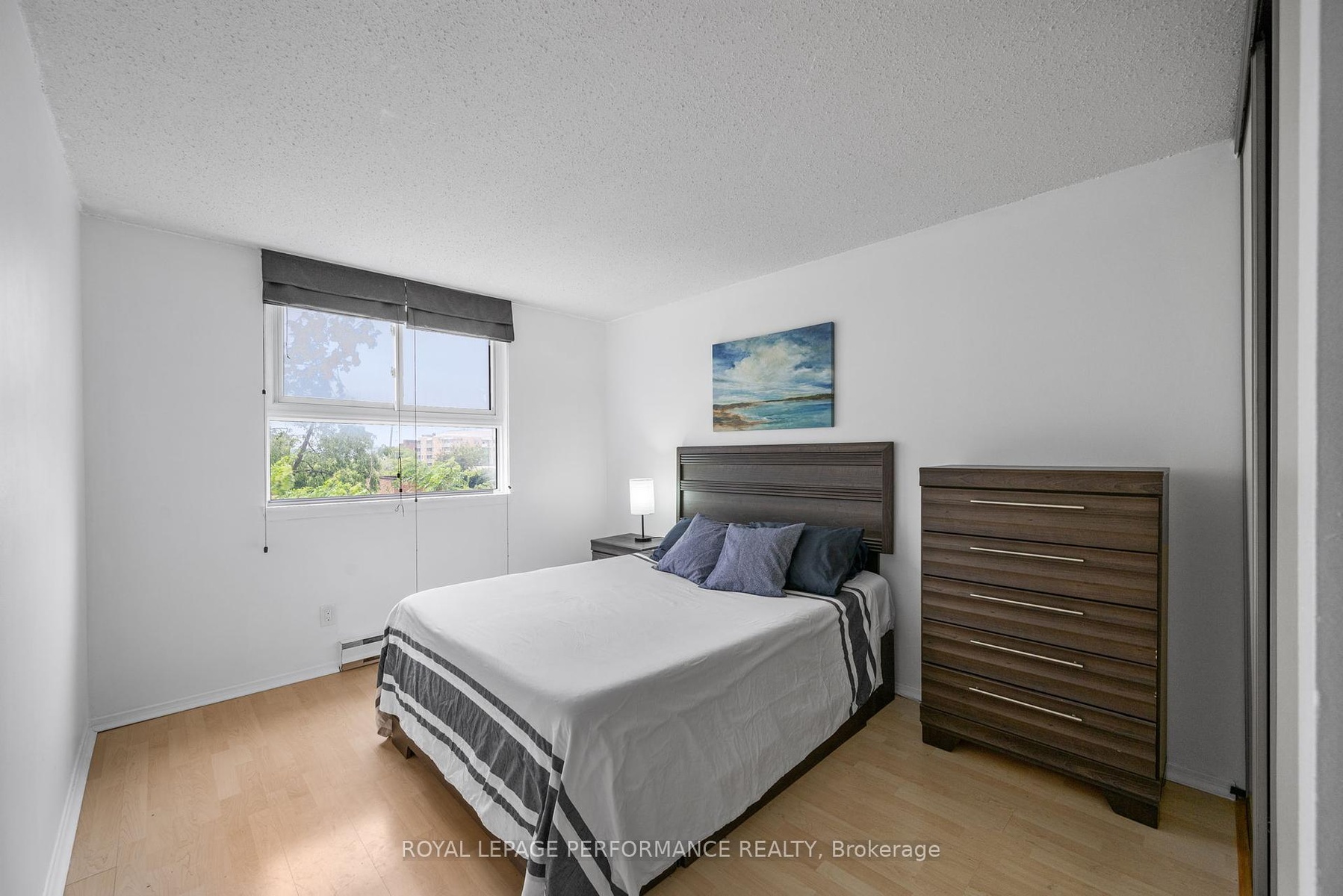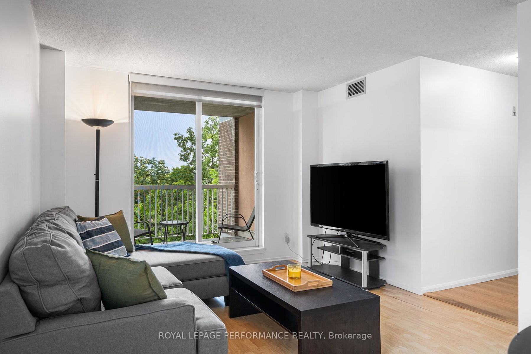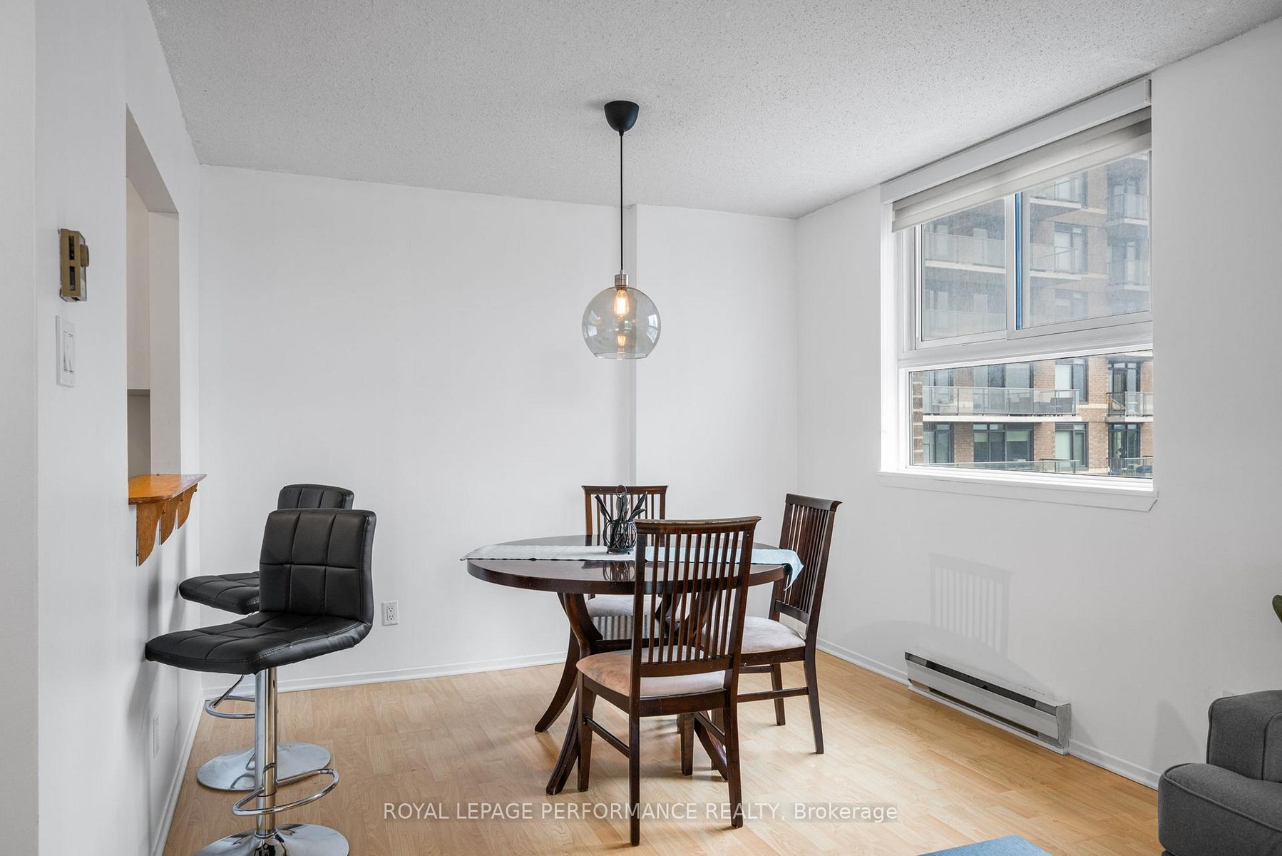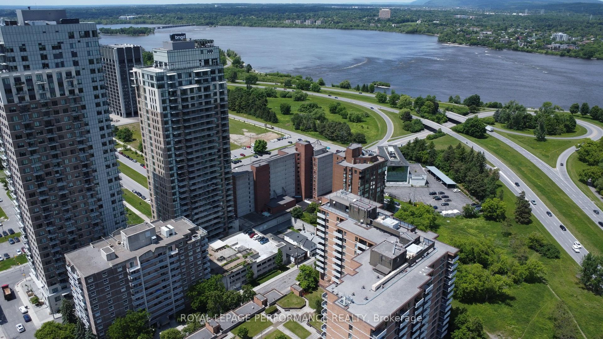 Located in one the most trendy and convenient neighbourhoods in the city, this spacious and affordable 2 bedroom condo is great value. This corner unit has North and East balcony views toward the Ottawa river and Gatineau Hills, and also overlooks the condo rooftop patio. However you want to get around, this condo is close to it all. By bike, you have easy access to the NCC trails along the Ottawa River and Kichi Zibi Mikan Parkway, you are an easy 10 minute walk to the LRT at Tunny's Pasture, and you're adjacent to onramps to the Parkway along the river, with easy access east, west, or across the Ottawa River at Island Park. You are a short walk to the Parkdale Market or the shops along Wellington Street. This well-maintained building boasts a gym (ground level), rooftop patio with BBQ (accessible from the 4th level), underground parking (spot 124 on the lower level accessed from the lobby), a bike storage room (ground level toward the parking garage), and additional storage lockers for rent, though you have your own storage room IN your unit with this model. Shared laundry is located just off the lobby. Inside the unit, both bedrooms are large and have eastern views of trees and a green roof beyond. Updates include fresh paint throughout (except kitchen) and some light fixtures in 2025. Enjoy a carpet free home, with laminate and tile foors throughout. Building IS PET FRIENDLY (MLS system has a glitch that does not allow that option to be selected).