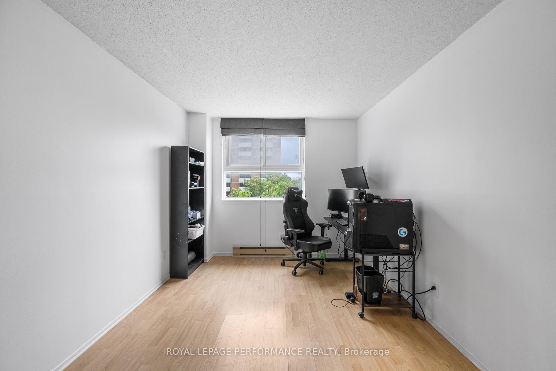 DescriptionLocated in one the most trendy and convenient neighbourhoods in the city, this spacious and affordable 2 bedroom condo is great value. This corner unit has North and East balcony views toward the Ottawa river and Gatineau Hills, and also overlooks the condo rooftop patio. However you want to get around, this condo is close to it all. By bike, you have easy access to the NCC trails along the Ottawa River and Kichi Zibi Mikan Parkway, you are an easy 10 minute walk to the LRT at Tunny's Pasture, and you're adjacent to onramps to the Parkway along the river, with easy access east, west, or across the Ottawa River at Island Park. You are a short walk to the Parkdale Market or the shops along Wellington Street. This well-maintained building boasts a gym (ground level), rooftop patio with BBQ (accessible from the 4th level), underground parking (spot 124 on the lower level accessed from the lobby), a bike storage room (ground level toward the parking garage), and additional storage lockers for rent, though you have your own storage room IN your unit with this model. Shared laundry is located just off the lobby. Inside the unit, both bedrooms are large and have eastern views of trees and a green roof beyond. Updates include fresh paint throughout (except kitchen) and some light fixtures in 2025. Enjoy a carpet free home, with laminate and tile foors throughout. Building IS PET FRIENDLY (MLS system has a glitch that does not allow that option to be selected).Amenities- Bike Storage