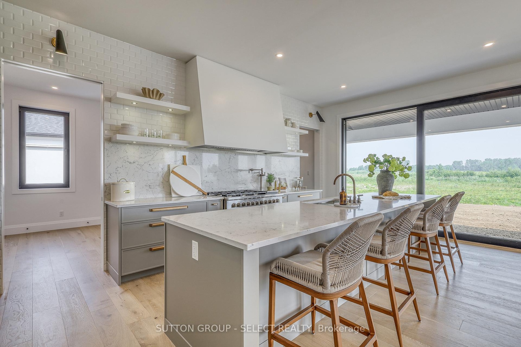 DescriptionTO-BE-BUILT, Timeless design offering 4 spacious bedrooms and almost 4000sqft. with endless upgrades. Located in the desirable neighbourhood of Edgewater Estates, only steps from Komoka provincial parks, trails, nature and still close to amenities. The main floor is open concept with a wall of windows and an oversized sliding door to the covered patio. The kitchen has beautiful custom cabinetry to the 10 ft ceilings. Glass detail in the display cabinets, quartz counters, custom range hood and high end appliances. Through hidden pocket doors you find a large mudroom and a pantry that can serve as a full second kitchen. The main floor also features a private office space, gas fireplace in the living room and a 2 storey entrance way. The staircase is grand and elegant with plenty of natural light. The primary bedroom has views of open space. A beautiful ensuite with a glass shower and freestanding soaker tub. The walk- in closet is lined with cabinetry for maximum storage. The well planned laundry room offershidden hampers and quartz folding counters. The second bedroom offers a private ensuite and walk-in closet. All rooms are spacious with great views and hardwood floors. This impressive home sits on a lookout lot backing onto the pond with a 3 car garage, separate basement entry can be added to the plan. Photos are of past model home, this design can be customized, other designs possible on this lot.Amenities- Auto Garage Door Remote