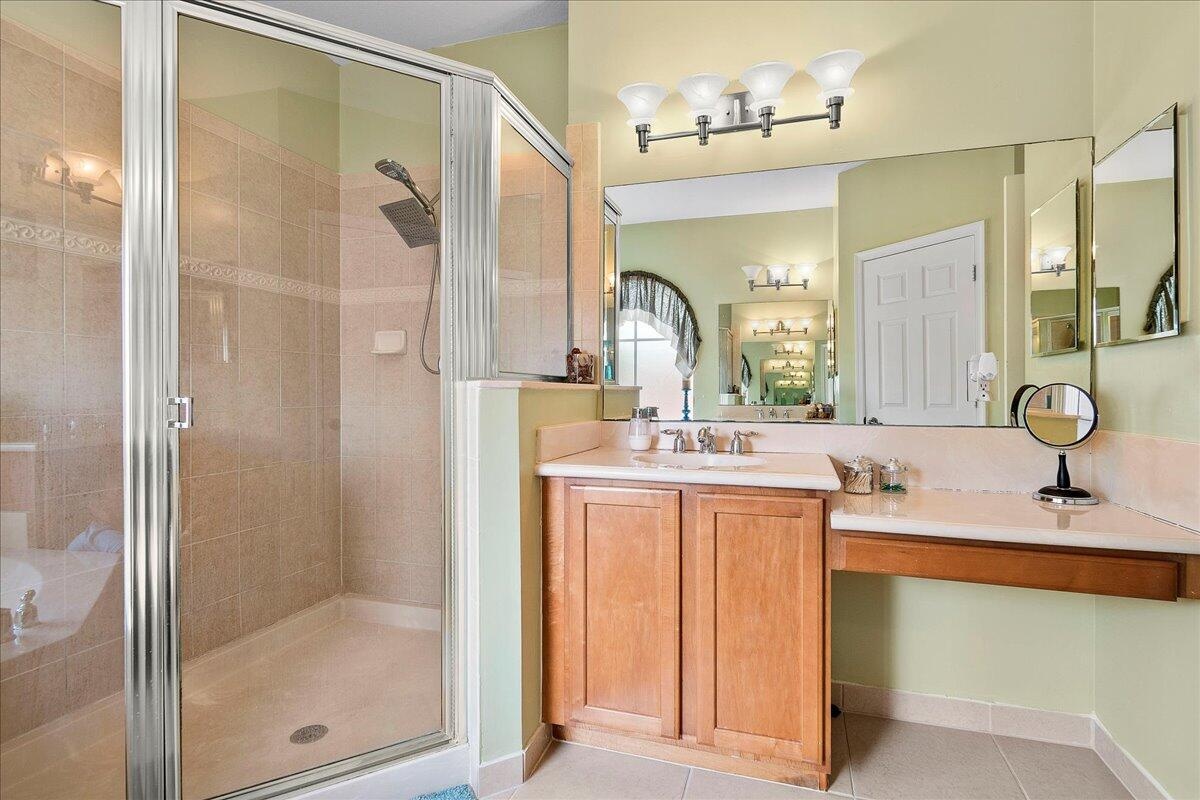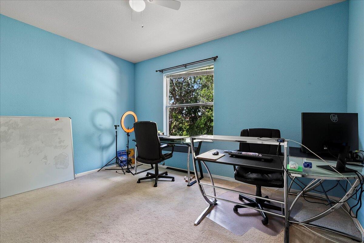 Located in the gated Palmyra Estates community, this spacious 4-bedroom, 2.5-bath home offers serene lake views and a smart, open layout. The kitchen boasts granite countertops, abundant cabinetry, Whirlpool appliances, recessed lighting, pull-out drawers, and a cozy bay window with lake views. The large family room features privacy-tint sliders, recessed lighting, and natural light throughout. Upstairs, the primary suite impresses with double doors, a Roman tub, separate shower, dual vanities, and two walk-in closets. The second bedroom also overlooks the lake. Newer AC (2019). Enjoy community amenities including a pool, playgrounds, BBQ area, and walking paths.