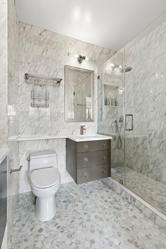 Three Bedrooms Plus Den with En-Suite Baths Each of the three generously-sized bedrooms includes its own bathroom for maximum privacy and convenience. The versatile den offers incredible flexibility - it can easily be converted to a fourth bedroom, home office, study, or even an extension of the living room to create an even grander entertaining space. Breathtaking East River views from the bedrooms create a serene backdrop for daily living. Natural light fills each room, and thoughtful layouts make the most of the space. The master bedroom is truly exceptional, featuring his and her closets that provide abundant storage for even the most extensive wardrobes. Two elegant Flos globe pendants illuminate the space with sophisticated lighting, creating a peaceful retreat at the end of each day. The master bathroom is a study in luxury, wrapped in floor-to-ceiling Italian marble tiles with matching marble flooring that extends throughout. The oversized shower chambers boast impressive ceiling height, transforming your daily routine into a spa-like experience. Every detail has been carefully considered to create a sanctuary of relaxation and refinement.