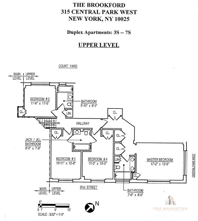 The second level has the master suite which is a corner location with windows facing the park and window facing south . You can see the entire Central Park West Avenue .