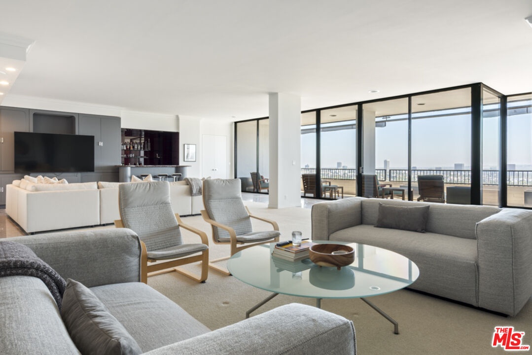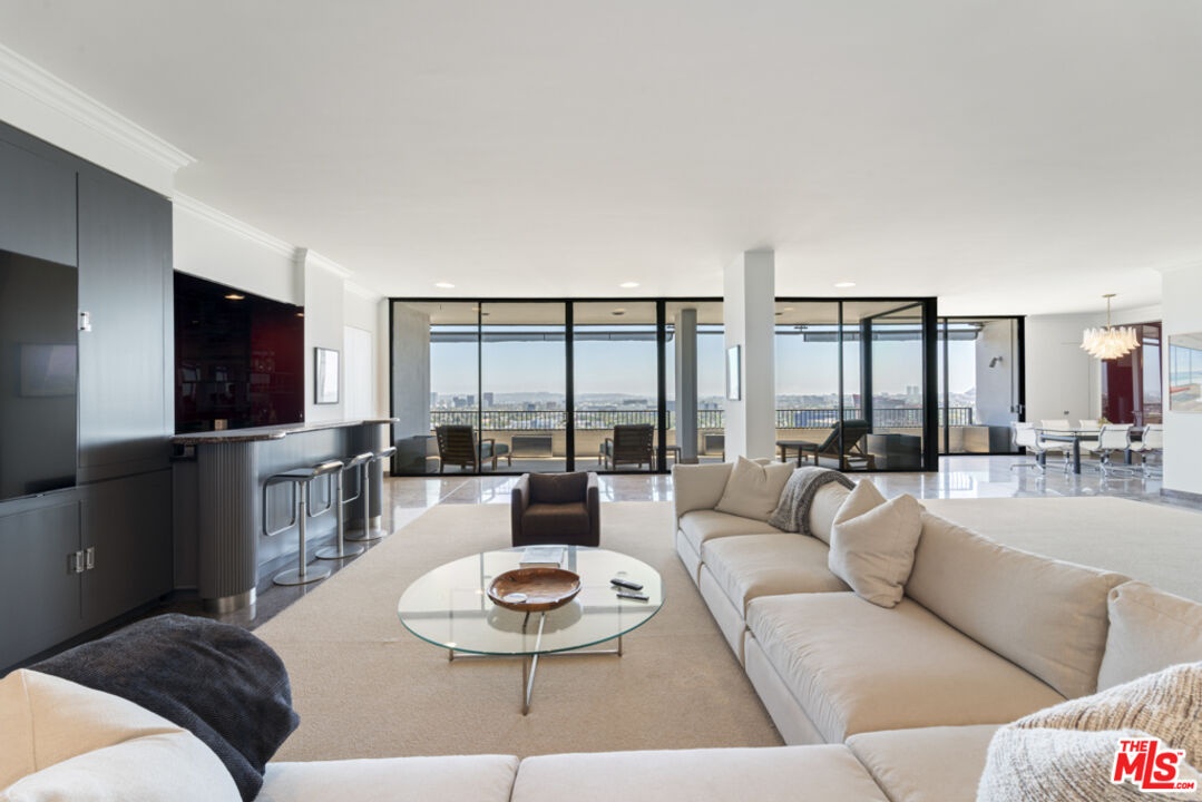 Rare Find Penthouse at Empire West. Live above it all in this rare, nearly 4,000 sq. ft. Penthouse in the iconic Empire West, one of Los Angeles' most prestigious and sought-after high-rise buildings. This expansive 3-bedroom, 3.5-bath residence features a formal entry, an old Hollywood Style bar and lounge area, a family room, formal dining room, and an open-concept living space designed for both grand entertaining and comfortable everyday living. Floor-to-ceiling walls of glass showcase breathtaking 180-degree jetliner views from Beverly Hills to Downtown LA, flooding the space with natural light and highlighting timeless and elegant finishes throughout. Empire West offers world-class amenities including a rooftop pool and private clubhouse with and outdoor fire-pit perfect for enjoying sunsets, a full-service fitness center, tennis court, 24/7 valet parking, concierge service, and top-tier security. Located just moments from Sunset Plaza, this is high-rise luxury redefined in the heart of West Hollywood.