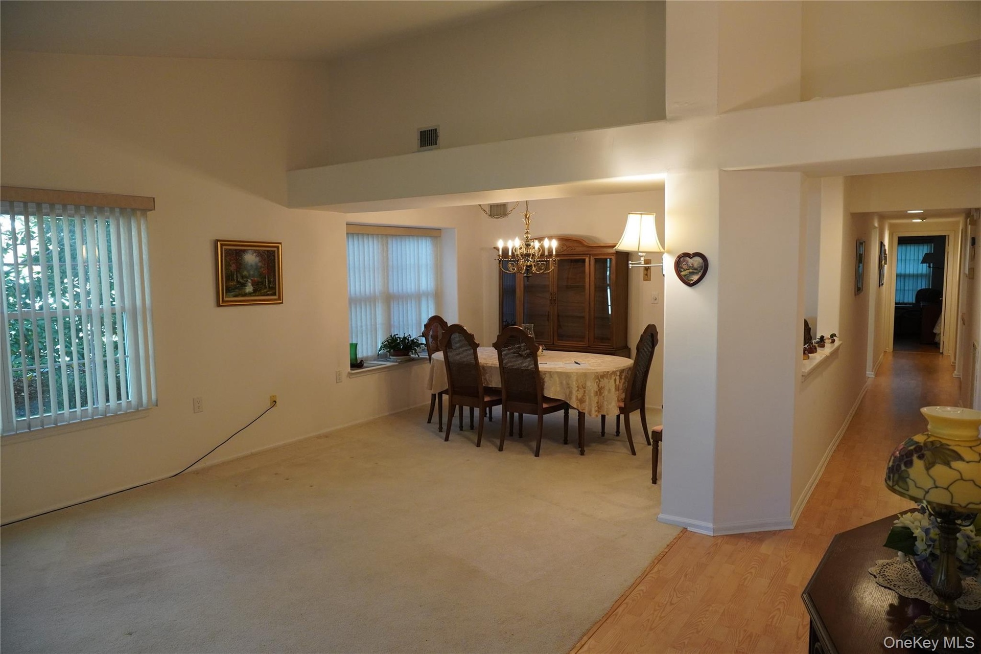 This beautifully maintained condo offers a rare blend of comfort, privacy, and convenience in one of Long Island’s most sought-after active adult communities. Located on a quiet cul-de-sac, this home features soaring vaulted ceilings in both the spacious living room and primary bedroom, a large eat-in kitchen, formal dining room, laundry room with washer and gas dryer, attic storage, and an attached 1-car garage. Step outside to your own private patio in a serene, tucked-away setting.