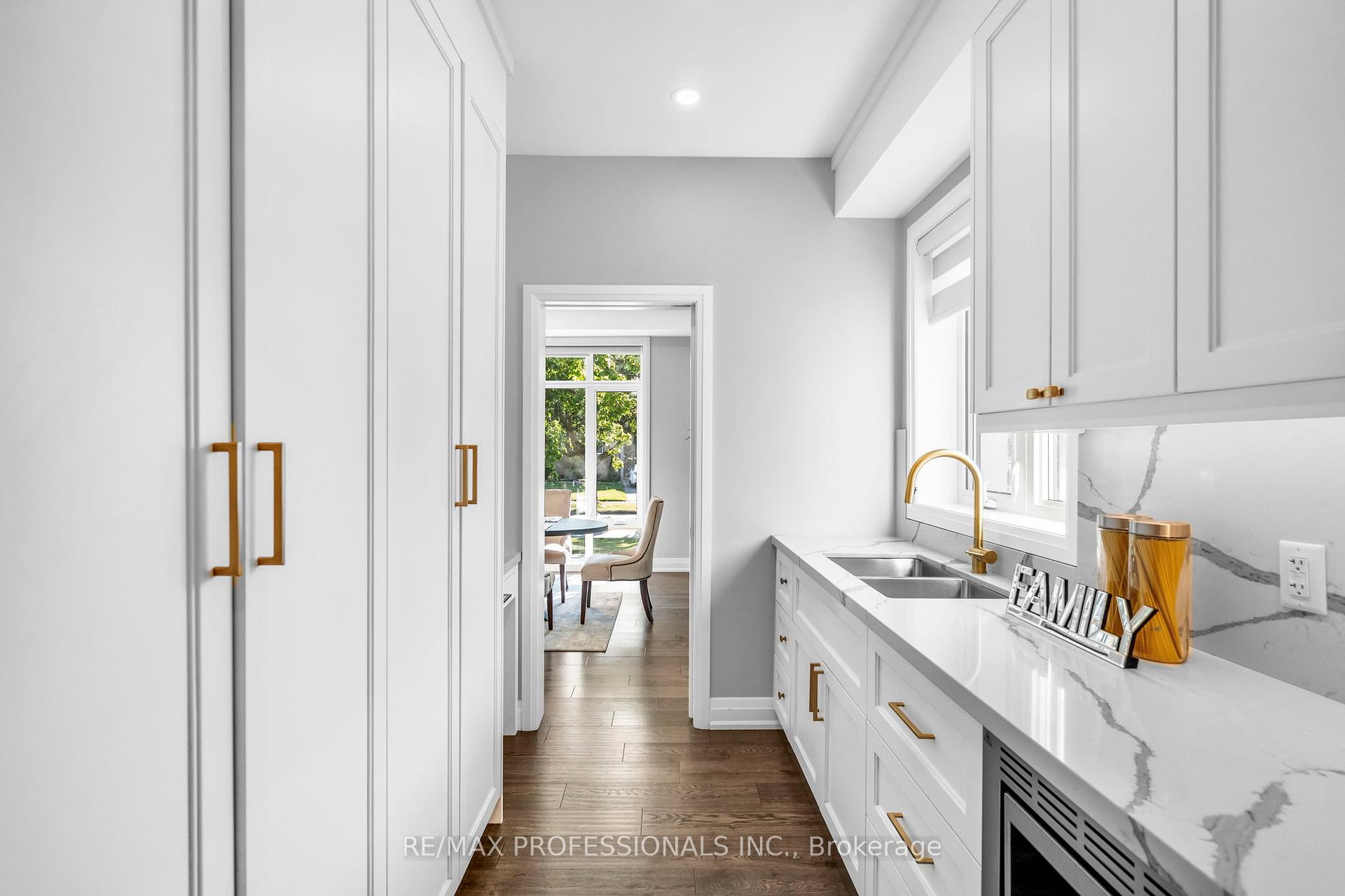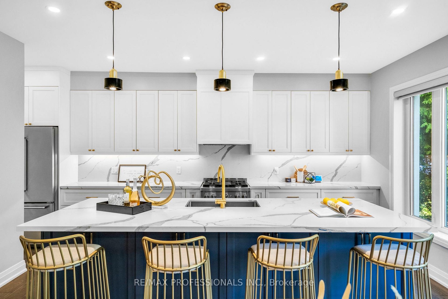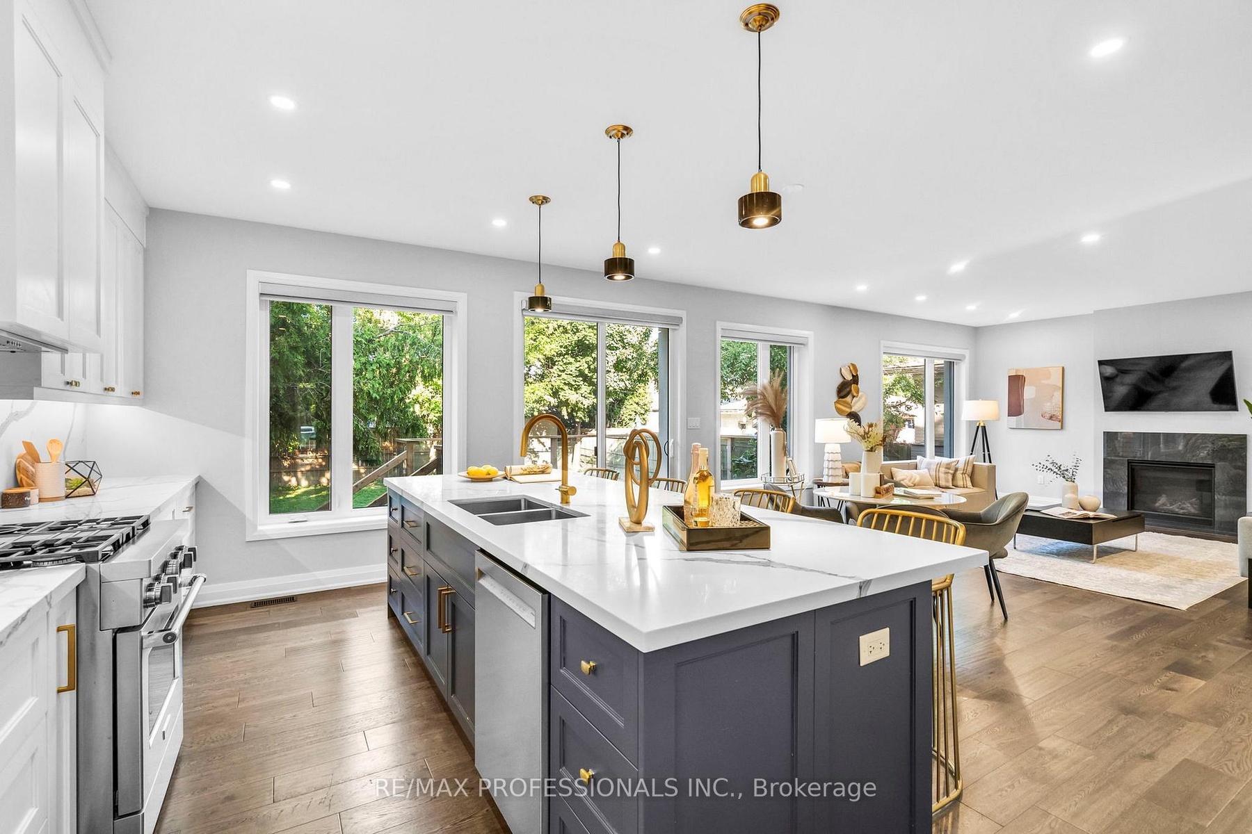 DescriptionExtensively renovated and rebuilt in 2022, this custom 2-storey home blends modern design, functional spaces, and over 3,500 sq ft of thoughtfully planned living. Sunlight fills the interior through large windows and a second-floor skylight, enhancing the warmth of hardwood floors and pot lights throughout. At its heart, the spacious kitchen features stainless steel appliances, an oversized stone island, and a butlers pantry connecting to the dining room, perfect for hosting holiday dinners or enjoying slow Sunday mornings. A conveniently located powder room adds practicality, while the inviting living room with fireplace sets the stage for cozy nights in. Step out to the backyard deck, ideal for summer barbecues and evening conversations. Upstairs, the primary suite offers a spa-like 5-piece ensuite and walk-in closet. Two additional bedrooms, each with dual closets and study nooks, provide versatile spaces for school or work. A convenient second-floor laundry room and an additional hookup in the basement add flexibility for busy households. The finished basement extends the homes functionality with a kitchenette and two additional bedrooms, including one with its own 3piece ensuite, ideal for extended family, guests, or a private office. Located in central Etobicoke, this home sits in a family-friendly neighborhood with top-rated schools, including Michael Power High School, as well as parks, shopping, and local amenities. Centennial Park, major highways (427 & 401), and Pearson Airport are all just minutes away, offering the perfect balance of lifestyle and location.Amenities- In-Law Capability