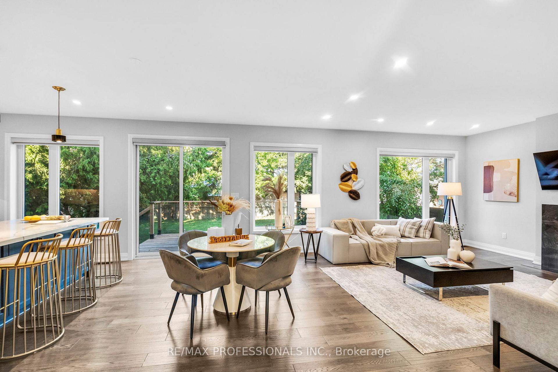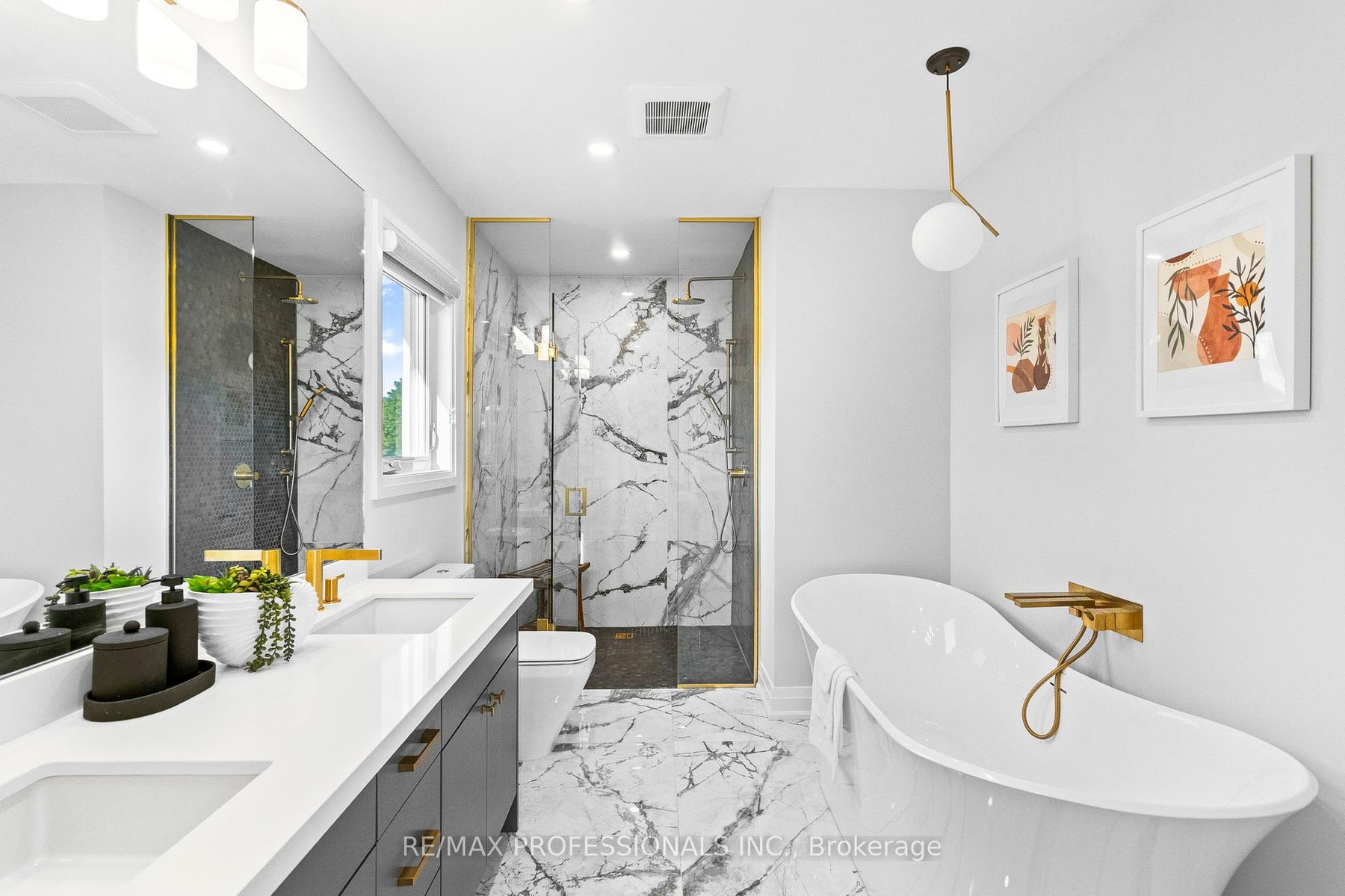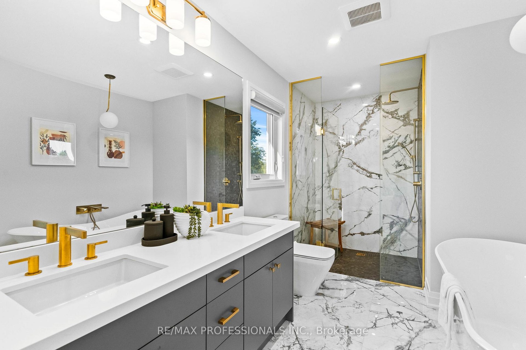 DescriptionExtensively renovated and rebuilt in 2022, this custom 2-storey home blends modern design, functional spaces, and over 3,500 sq ft of thoughtfully planned living. Sunlight fills the interior through large windows and a second-floor skylight, enhancing the warmth of hardwood floors and pot lights throughout. At its heart, the spacious kitchen features stainless steel appliances, an oversized stone island, and a butlers pantry connecting to the dining room, perfect for hosting holiday dinners or enjoying slow Sunday mornings. A conveniently located powder room adds practicality, while the inviting living room with fireplace sets the stage for cozy nights in. Step out to the backyard deck, ideal for summer barbecues and evening conversations. Upstairs, the primary suite offers a spa-like 5-piece ensuite and walk-in closet. Two additional bedrooms, each with dual closets and study nooks, provide versatile spaces for school or work. A convenient second-floor laundry room and an additional hookup in the basement add flexibility for busy households. The finished basement extends the homes functionality with a kitchenette and two additional bedrooms, including one with its own 3piece ensuite, ideal for extended family, guests, or a private office. Located in central Etobicoke, this home sits in a family-friendly neighborhood with top-rated schools, including Michael Power High School, as well as parks, shopping, and local amenities. Centennial Park, major highways (427 & 401), and Pearson Airport are all just minutes away, offering the perfect balance of lifestyle and location.Amenities- In-Law Capability