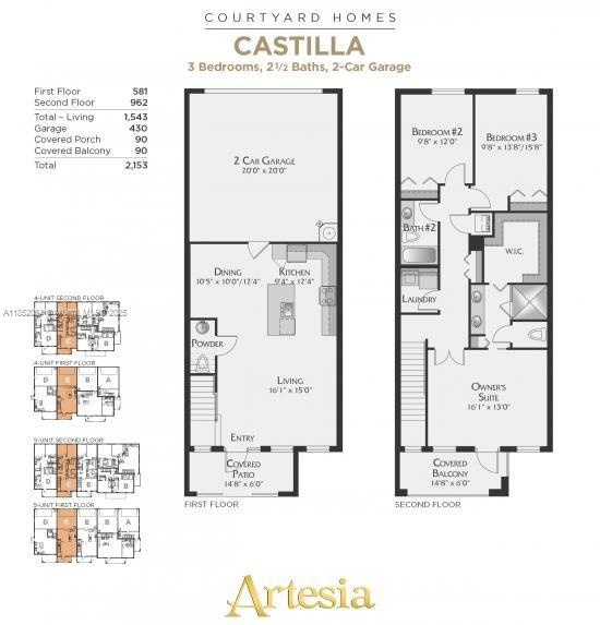 Priced to sell quickly!! Extraordinary Mediterranean Style Villa in exclusive Artesia by Minto. Immaculate & move-in ready w/premium upgrades. It features 3 bedrooms, 2.5 baths, 2-car garage, open-kitchen concept w/ stainless steel appliances, wood cabinets, granite countertops, impact windows, crown moldings, beautiful SPC flooring throughout the 2nd floor, walk-in closet & tile on the first floor. AC system installed in 2018. Master bedroom balcony was upgraded w/ TV & ceiling fan. Artesia is a resort living community that includes 3 tranquil pools, 3 tennis courts, fitness center, child playground etc. Walking distance to international shopping, restaurants, entertainment & sporting events. Low $529 HOA maintenance fee includes Internet/WiFi, cable, trash pick up