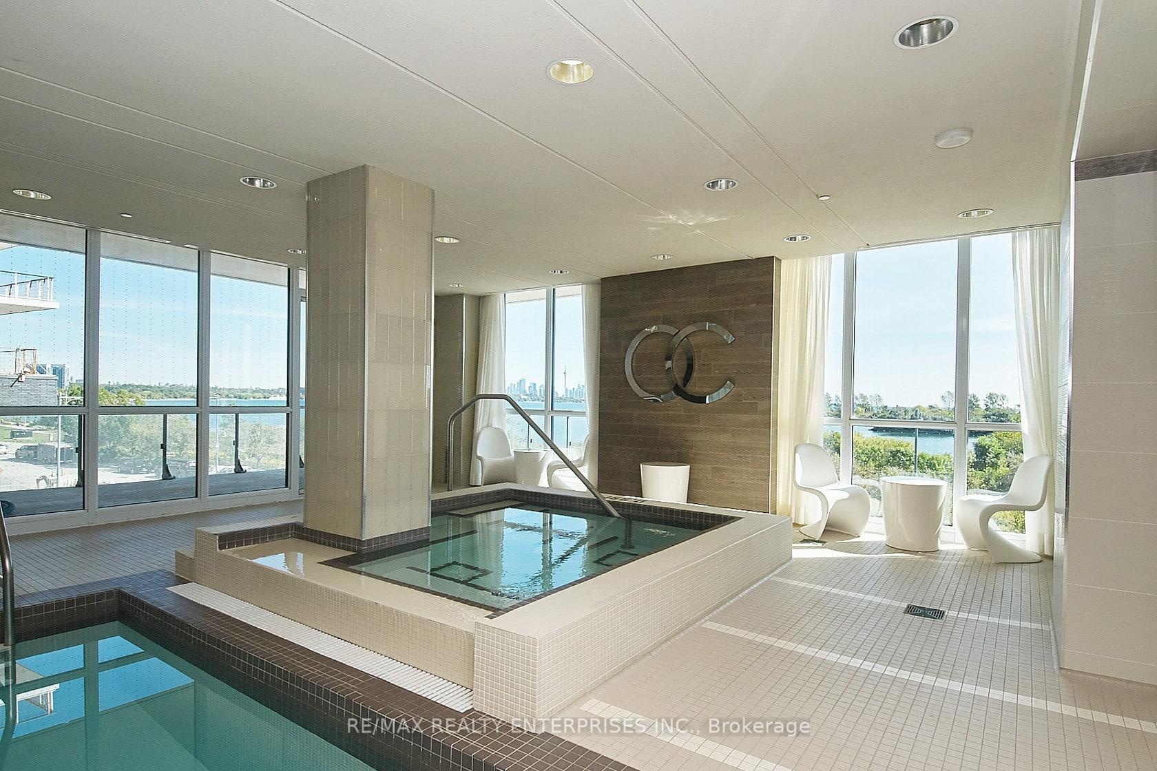 Welcome to the Ocean Club Waterfront Condos where luxury meets stunning views. This beautifully furnished 645 sq. ft. condo boasts unobstructed southeast vistas of Lake Ontario, stretching all the way to downtown Toronto and the iconic CN Tower.Inside, youll find a spacious layout featuring a large kitchen island with a breakfast bar, perfect for casual dining or entertaining. The 4-piece bathroom is sleek and modern, while the in-suite laundry adds a convenient touch. Custom closets in both the primary bedroom and hallway ensure plenty of storage space, and a versatile den provides even more options.Step outside onto your private balcony an ideal spot for enjoying breathtaking sunrise and sunset views while relaxing or hosting guests.The unit also includes a locker and parking spot for added convenience. Please note, some furnishings including the sofa have been updated since the photos were taken. Currently vacant.