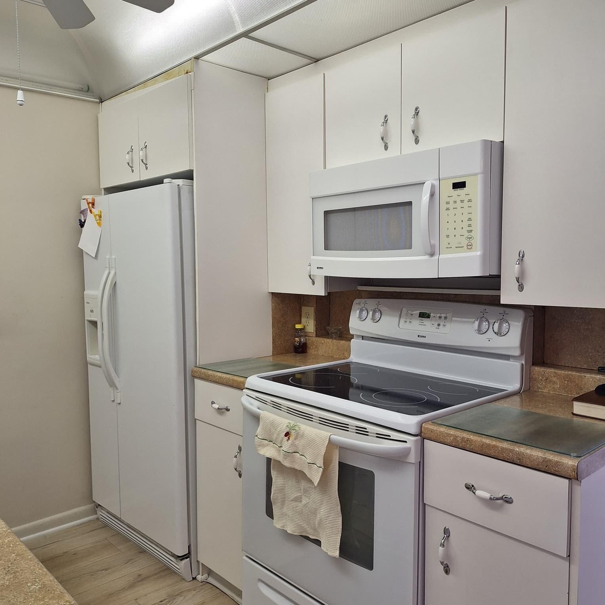 DescriptionBright spacious one bedroom 1.5 bathroom apartment on the top floor. Fabulous flooring throughout the apartment. Updated kitchen and fans in every room. Come relax on the closed-in lanai with a panoramic water view. Cornwall E is the closest Cornwall building to the clubhouse and houses of worship. Come see the amazing clubhouse with its outstanding gym, pools, courts as well as endless activities in this 55+ community. Can be rented immediately.