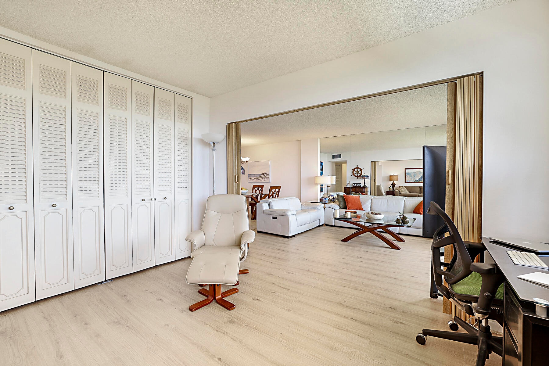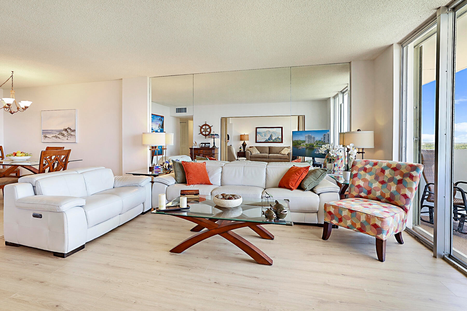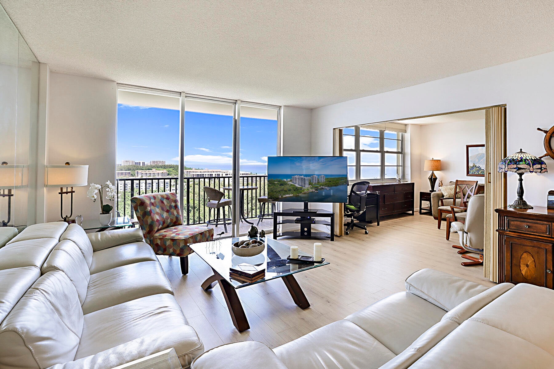 Bathed in natural light and graced with multi-million-dollar panoramic views, this residence offers an extraordinary coastal lifestyle. From the moment you enter, you'll be captivated by the unobstructed vistas of the Atlantic Ocean, Intracoastal Waterway, and serene nature preserve--visible from every room. The flexible floor plan includes guest bedrooms that can easily serve as a den or private office, with folding doors for versatility. Enjoy the convenience of an additional storage room on the same floor and a fully covered parking space (#149). From your private balcony, soak in spectacular sunsets over the water.Just steps away, an exclusive gated beach access with outdoor shower awaits, leading you to the sparkling Atlantic Ocean.