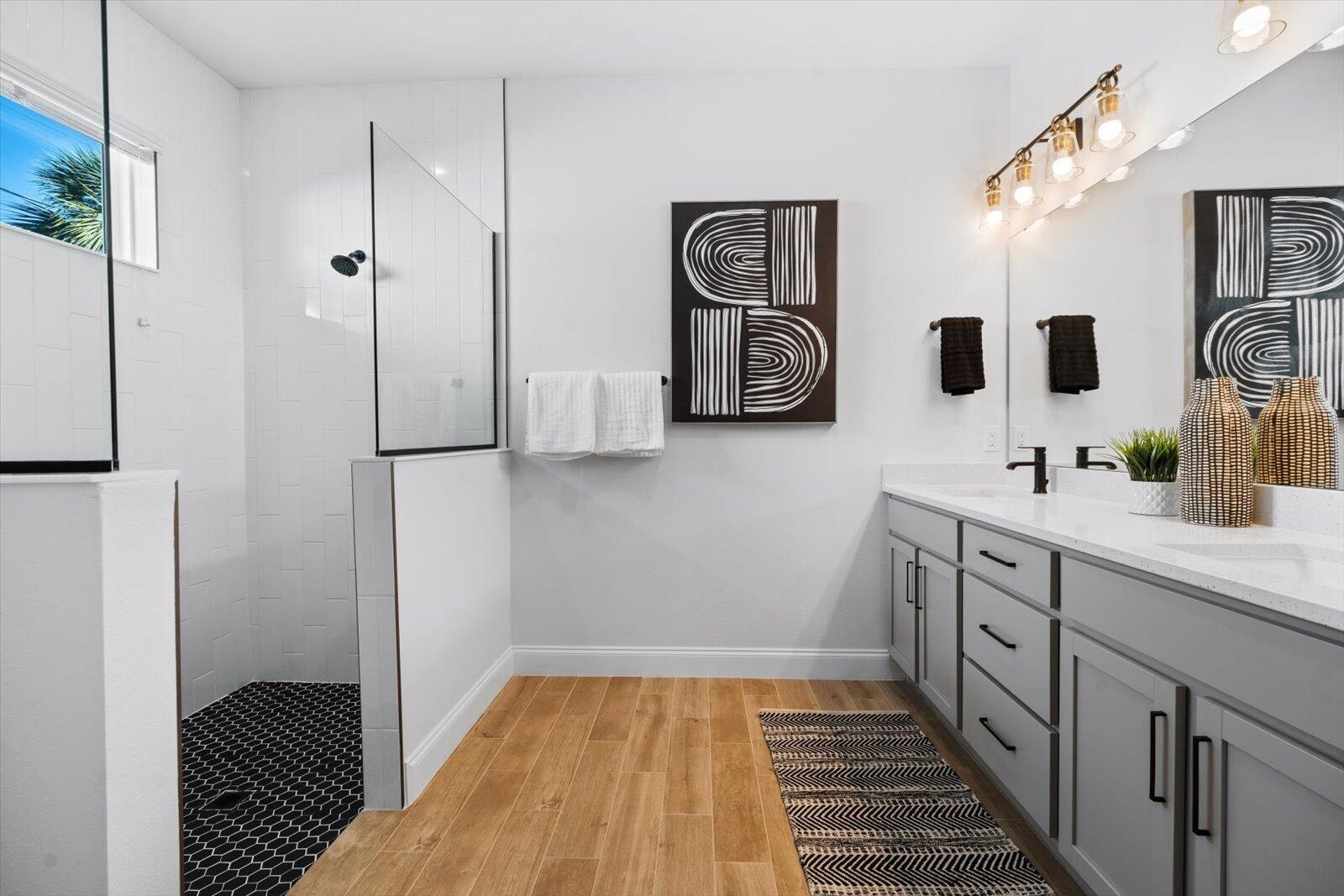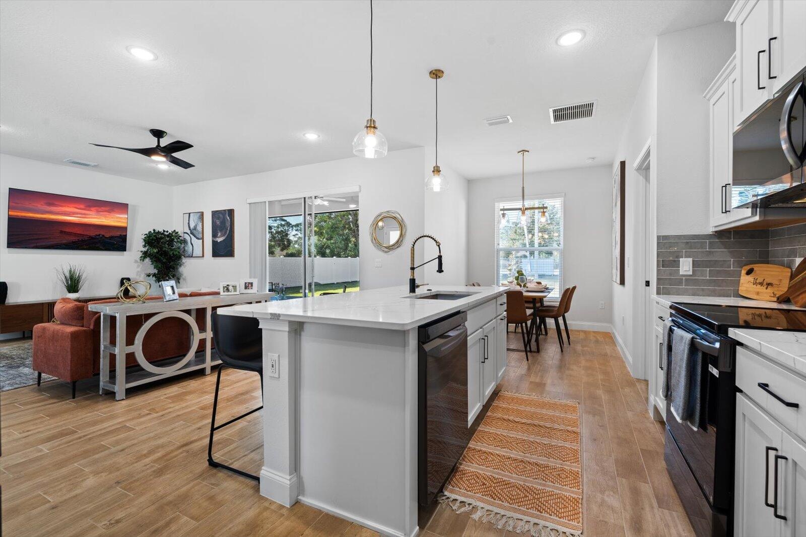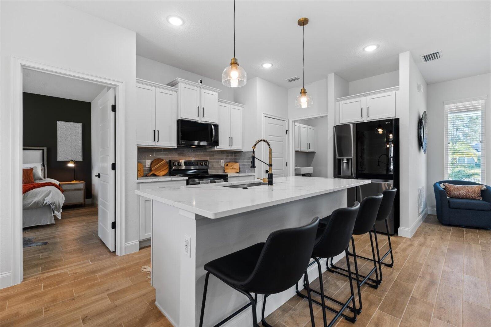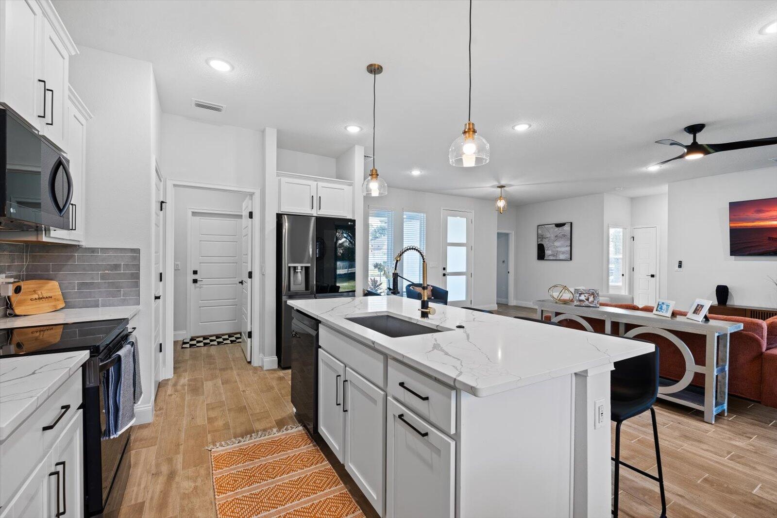 DescriptionUP TO $15,000 BUILDER INCENTIVES! NO ORIGINATION OR APPLICATION FEES with our approved lender + $31,000 IN UPGRADES INCLUDED! This stunning new construction on an oversized corner lot offers elegance, comfort, and style. Features include an 8' designer front door, tile throughout, 9'4'' ceilings, and an 8' sliding glass door to a covered lanai. Natural light fills the open floor plan. The kitchen boasts shaker cabinets, veined quartz counters, backsplash, and matte black stainless appliances. Baths feature matte black faucets, bronze fixtures, and tiled walls. Riverside-style doors and designer lighting add refined touches. Photos shown are of the Model at 182 Bayside Dr. Open daily 11AM-5PM.