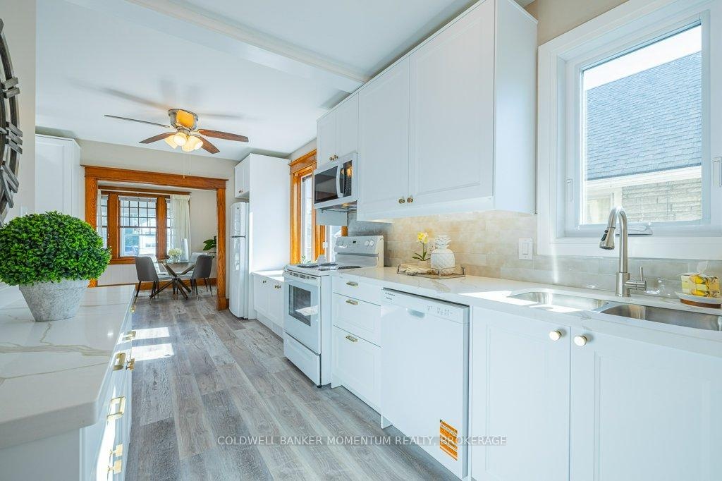 AMAZINGLY renovated brick 3 bedroom close to park and downtown. Move in condition. this home still has some of the original character trims with all the modern features. The huge gourmet kitchen with quartz counters and matching backsplash is to die for .The main floor laundry is something not found at this price .The upstairs bedroom has a very large closet, a 2 piece bath. A large storage area plus an office section to work from home. Extensive electrical work and numerous recessed lights brightens this whole house up.The back dinette addition offers a great space for casual meals and view of the yard. The basement has been completely waterproofed with a life time transferable warranty. A large covered front porch will allow you to enjoy many evenings An old brick fireplace with brass covering and a mantel above is just waiting to be restored. dont hesitate you will really like the interior.