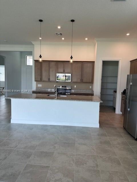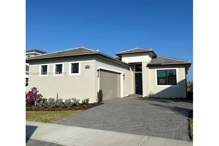 Brand New home built 2025 ! Never LIved in! Great lot with garden and lake views. 4 bedrooms and 3 full bathrooms. Crown MOulding through common araes, Hi hats in Living room, kitchen and Owner bedroom, fans and lights installed on ceilings, cabinets in pantry room and laundry, laundry tb, summer kitchewn ready, window blinds, tile to the rook in shower and bathtub, mirros to the roof on 2 bathrooms, outside camera connection, flood light plus other upgrades, must see.Under Builders Warranty.