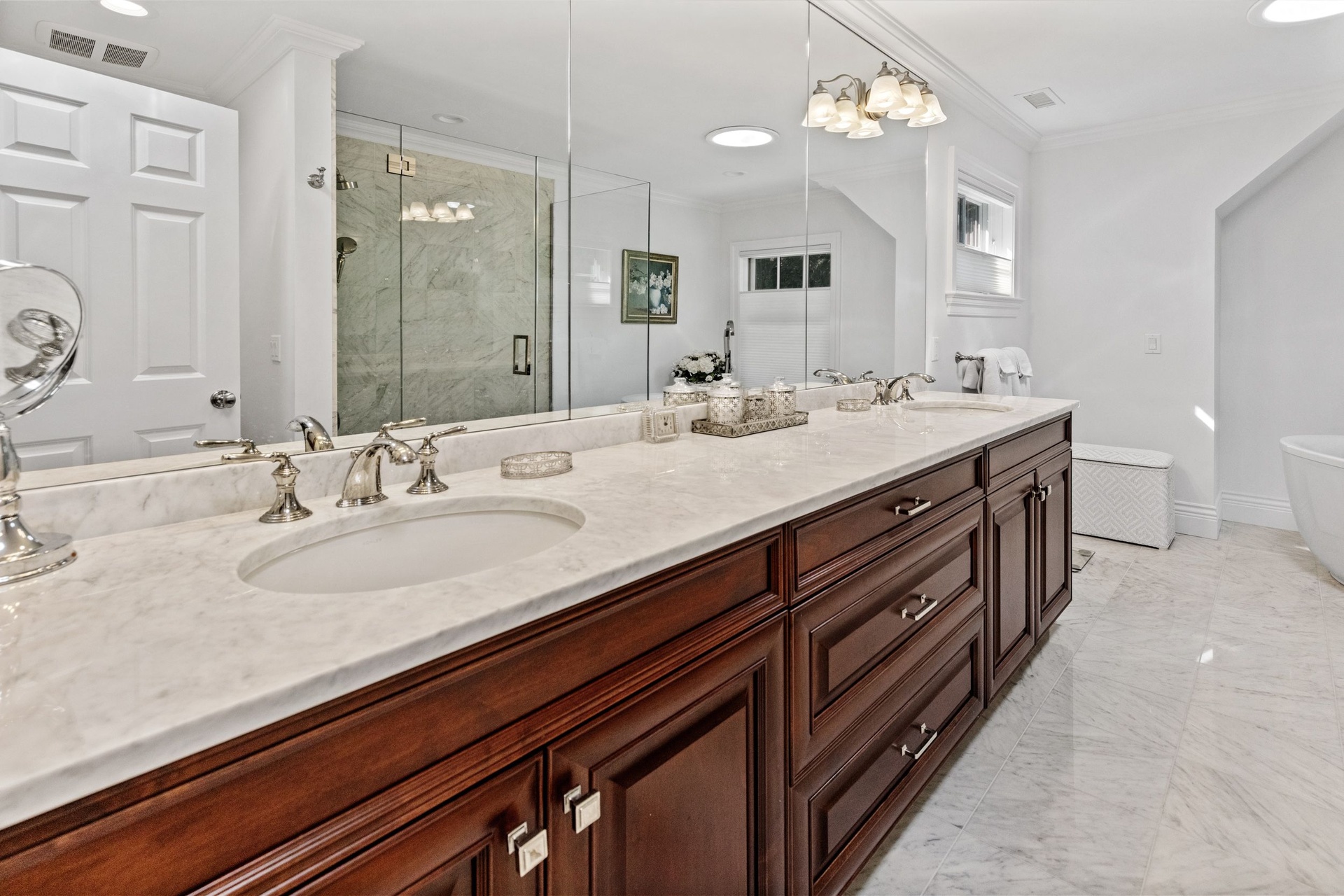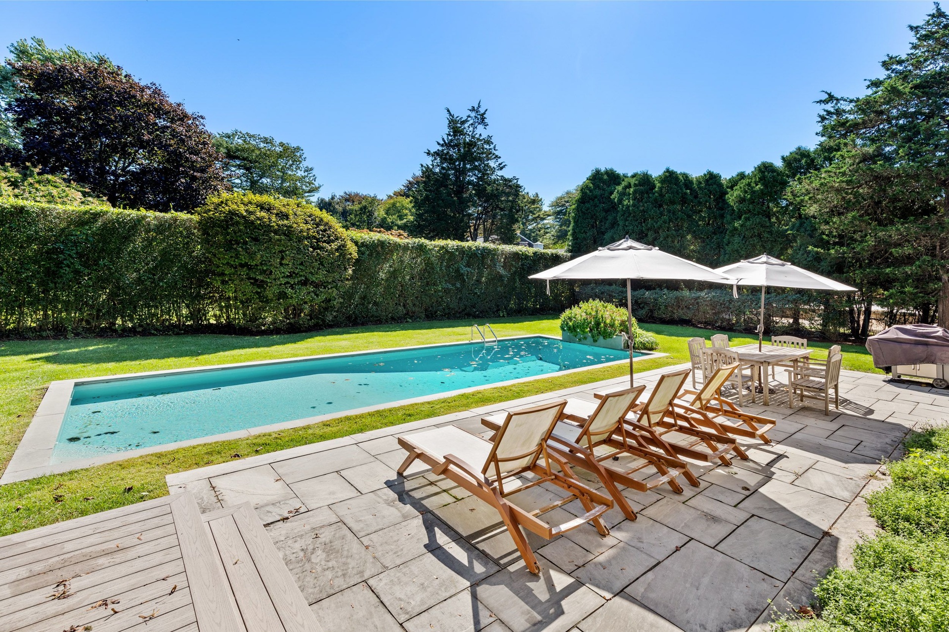 Rental Registration #: This beautiful home has just been completely renovated and expanded to double in size and has been perfectly decorated with a light beachy elegant feel. The five-bed/five-bathroom home has everything you will need for a great summer rental, including the bikes! The oversized chef's kitchen is equipped with Sub-Zero, Wolf, and Viking appliances and is open to the new living room with walls of glass and a formal dining area - perfect for entertaining! There is a also a second living room with a fireplace, as well as a private study and full bath on the main level. The new master suite presides over the second floor with a marble bathroom that includes a heated soaking bubble tub and walk-in shower. There is an additional junior master suite, as well as two more guest rooms, full bath, and a convenient second story laundry room. The lower level offers additional playroom space, bedroom, full bath and added storage. Outside, the heated gunite pool and back yard with new blue-stone patios and decks, will make the perfect place to spend the summer. The landscaping makes the yard an ideal place to entertain or just hang out and relax! Available for Winter months at $8,000. per month