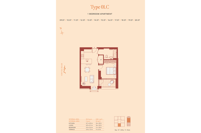 | Exterior area: | 5.0 m² (54 sq ft) |