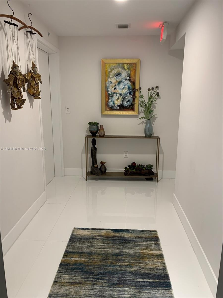 - Elevator opens to Private Foyer. Door entrance to the condo. White porcelain floors throughout