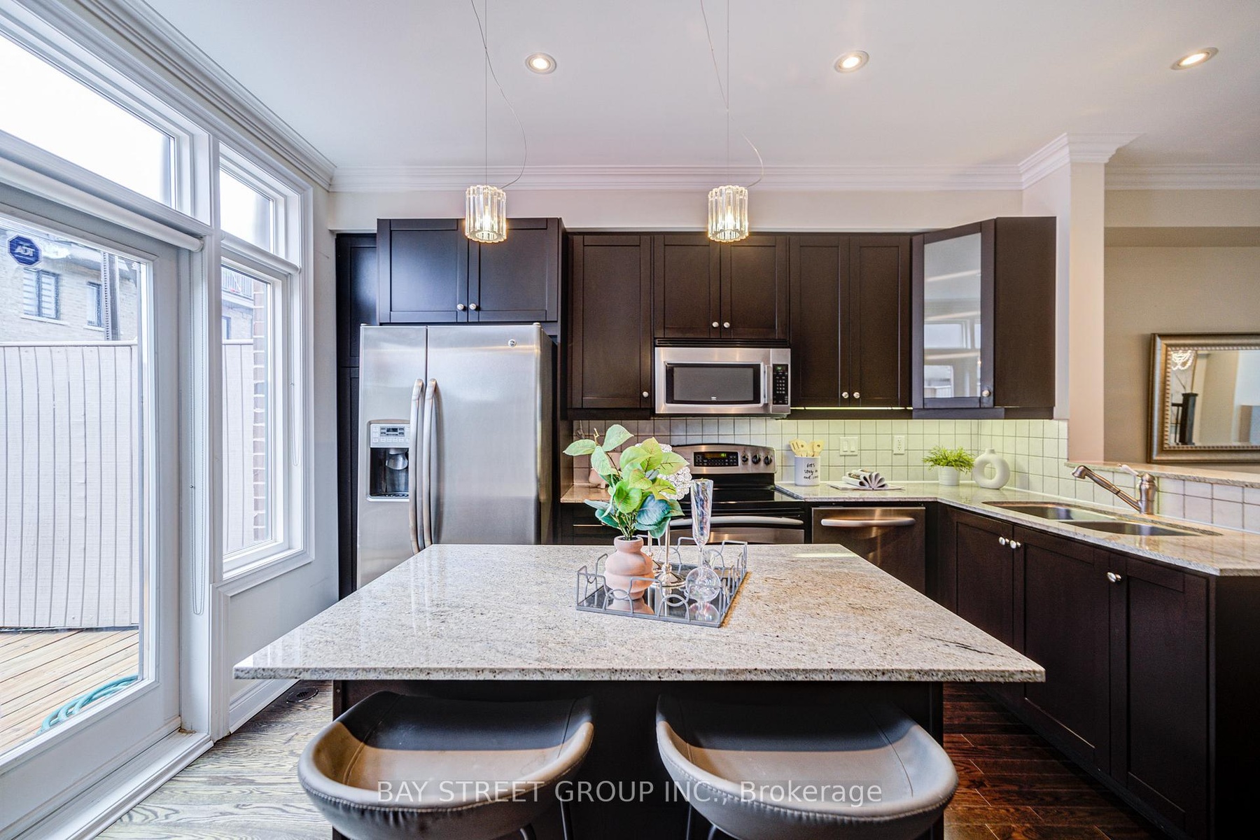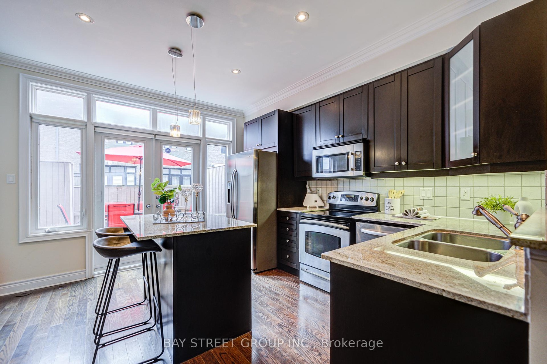 Nestled in an exclusive and serene cul-de-sac, this beautifully appointed 3-bedroom, 2.5-bathroom freehold townhouse offers exceptional living in the heart of Bloor West Village. Featuring elegant hardwood flooring throughout, neutral tones, and a spacious, thoughtfully designed layout, this home is ideal for both daily living and entertaining. The chef's kitchen boasts granite countertops, a pantry, a central island, and opens onto a sun-filled, south-facing deck with a gas BBQ hookup perfect for hosting or enjoying quiet outdoor meals. The ground level features a versatile space that can serve as a family room, home office, or a 4th bedroom, complete with a convenient powder room and hardwood floors. The top floor is dedicated to a luxurious full-floor primary retreat, showcasing a custom walk-in closet and a spa-inspired 5-piece ensuite with a Jacuzzi tub, separate glass shower, and quality finishes. Additional highlights include upper-level laundry, ample storage, and a 2-car garage with direct interior access. Located just minutes to Kipling GO Station, TTC, shops, restaurants, parks, and top-rated schools, this home offers a rare combination of privacy, functionality, and location. This outstanding residence is the perfect blend of comfort, style, and convenience - a true must-see for anyone looking to enjoy refined urban living.