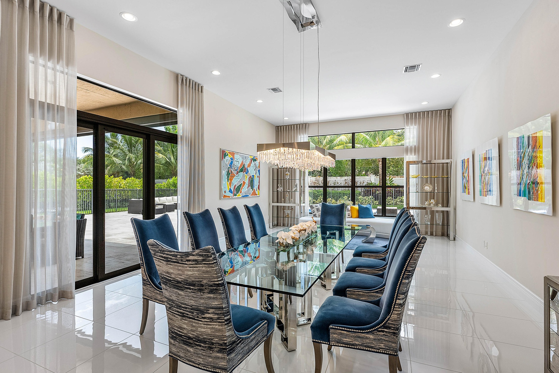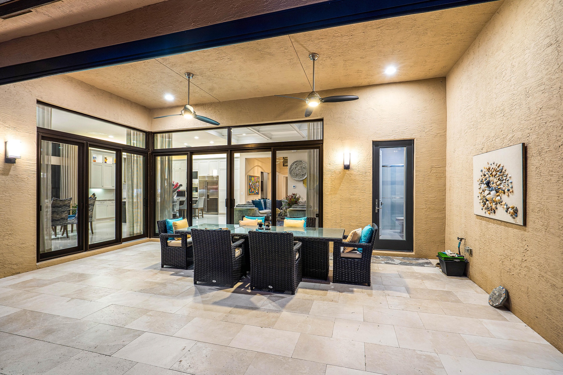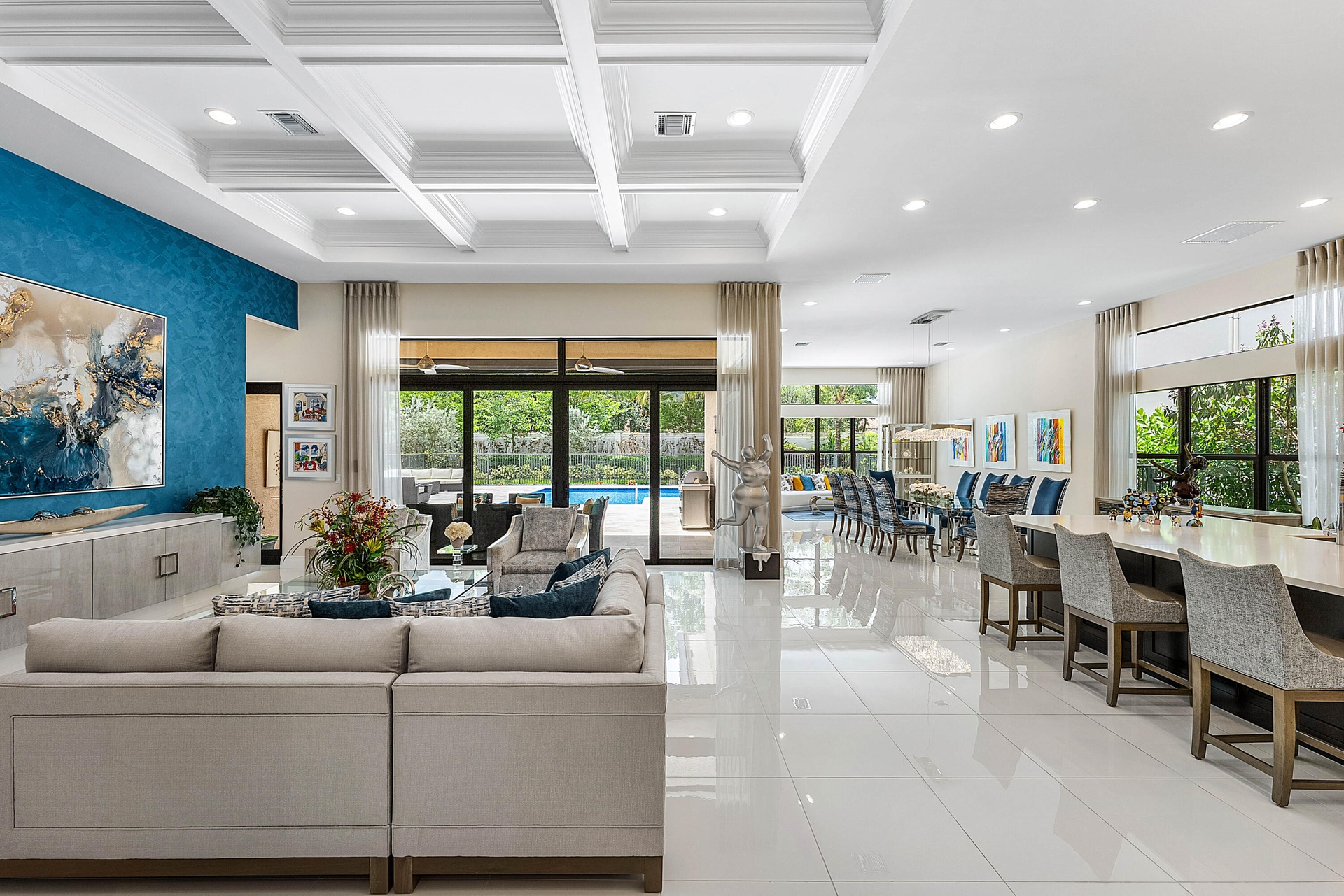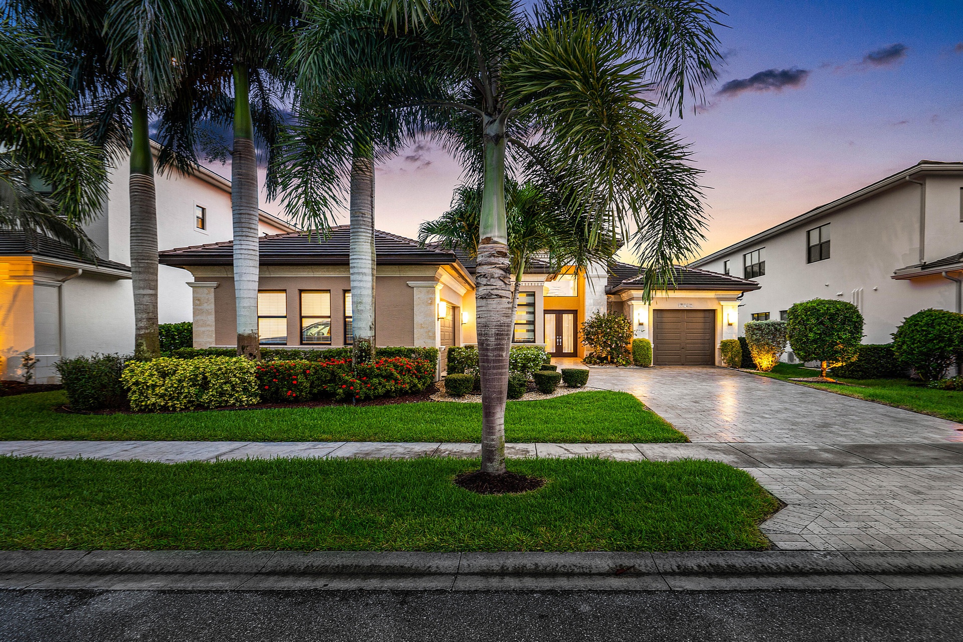 Welcome to 17442 Rosella Rd -- an exceptional Murano Model from the Coastal Collection, now being offered for the first time in the prestigious Boca Bridges. This expansive one-story residence spans 3,792+/- sq ft under air and showcases designer upgrades far beyond builder finishes. Perfectly positioned on a quiet cul-de-sac with ideal southern exposure, the home is light, bright, and thoughtfully appointed. Soaring ceilings with detailed coffered designs add architectural elegance, while custom landscape lighting brings the property to life after sunset.The heart of the home features a gourmet kitchen with Sub-Zero appliances, double wall ovens, and an oversized island overlooking the open-concept living space and dining/club room -- all seamlessly connected to the backyard. The