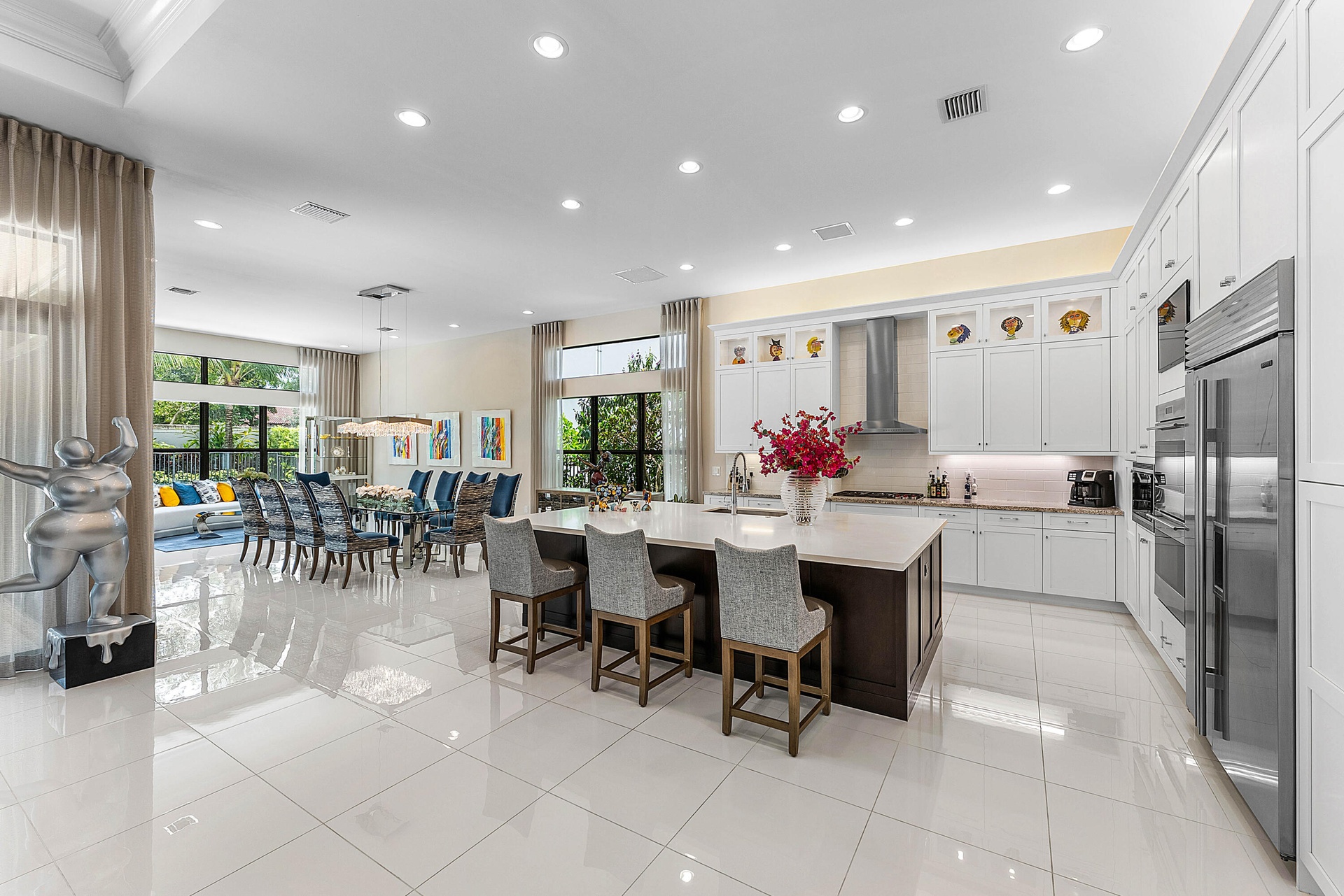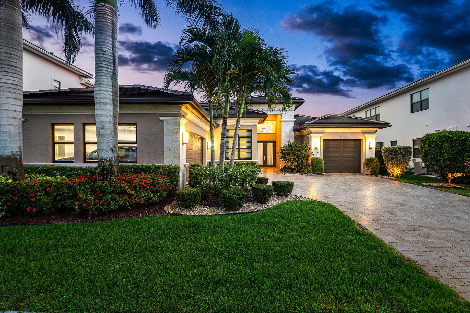 DescriptionWelcome to 17442 Rosella Rd -- an exceptional Murano Model from the Coastal Collection, now being offered for the first time in the prestigious Boca Bridges. This expansive one-story residence spans 3,792+/- sq ft under air and showcases designer upgrades far beyond builder finishes. Perfectly positioned on a quiet cul-de-sac with ideal southern exposure, the home is light, bright, and thoughtfully appointed. Soaring ceilings with detailed coffered designs add architectural elegance, while custom landscape lighting brings the property to life after sunset.The heart of the home features a gourmet kitchen with Sub-Zero appliances, double wall ovens, and an oversized island overlooking the open-concept living space and dining/club room -- all seamlessly connected to the backyard. The