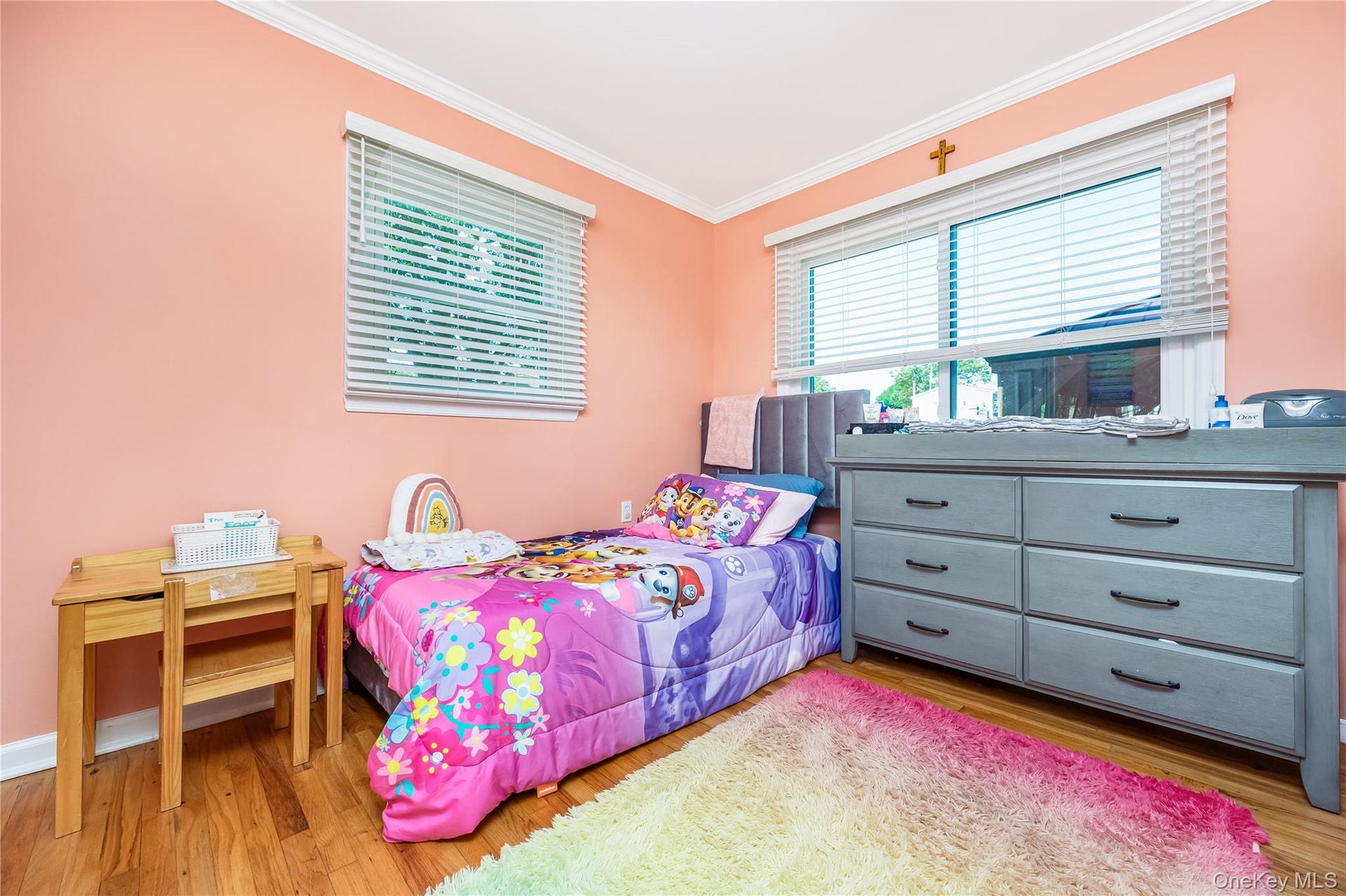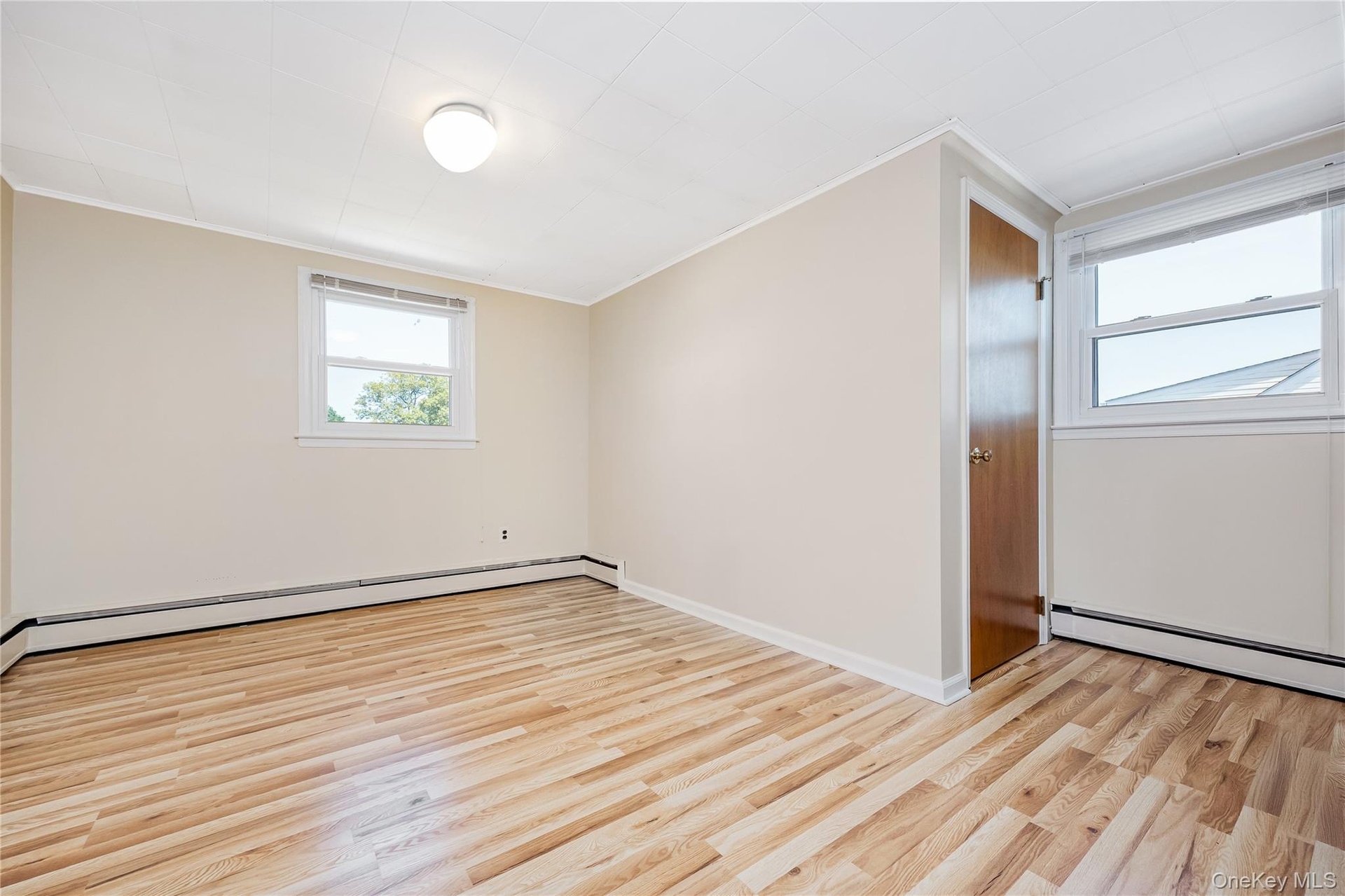 - Spare room with light wood-type flooring, crown molding, a baseboard radiator, and plenty of natural light