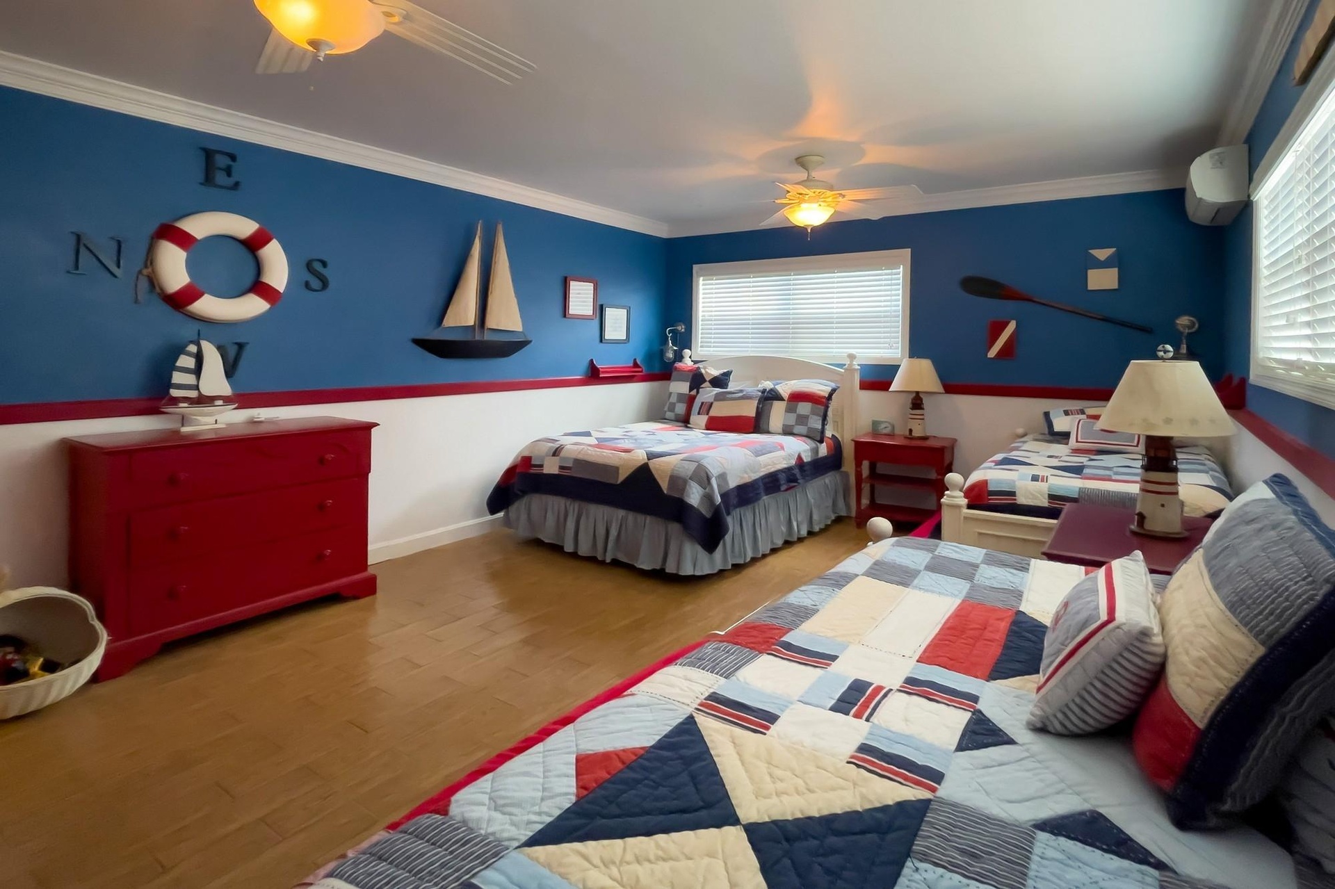 Welcome to Savannah Sunset, a stunning oceanfront home with a pool on the tranquil shores of Little Bay. Spanning two acres, this property offers ample space for additional cottages or a second residence. The great room boasts vibrant colors and breathtaking ocean views through expansive floor-to-ceiling windows. The open layout flows into a cheerful kitchen, spacious pantry, dining area, and a screened porch—ideal for relaxation, where you can enjoy the refreshing breezes and scenic vistas. The main level features two large bedrooms with king-sized beds and en-suite bathrooms. One bedroom overlooks the ocean, while the other offers views of the lush garden. Step outside to the boardwalk leading to the pool. The lower level is perfect for entertainment, with a cozy family room, plush seating, a large TV, and a wide selection of games, books, and activities. A bright bedroom accommodating up to six people is also located here, with a queen bed, twin beds, and trundles.