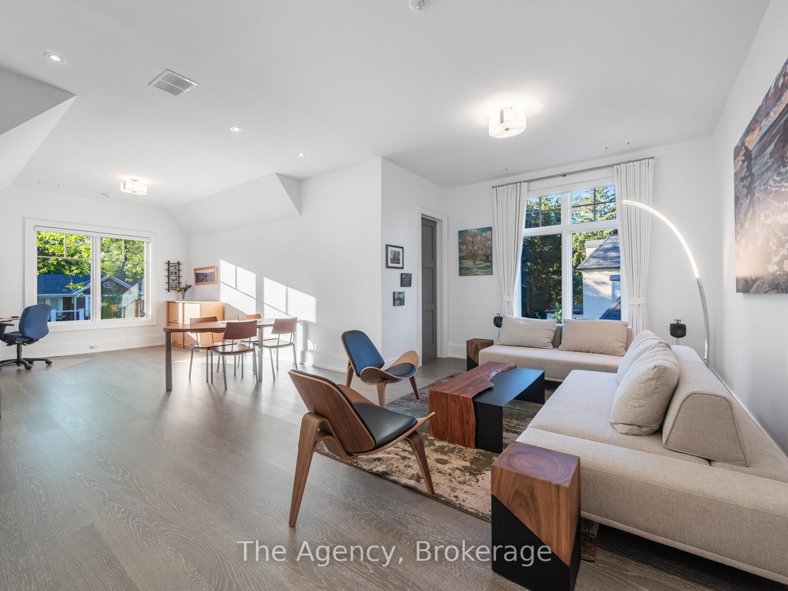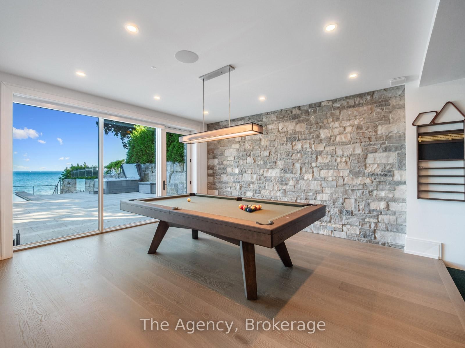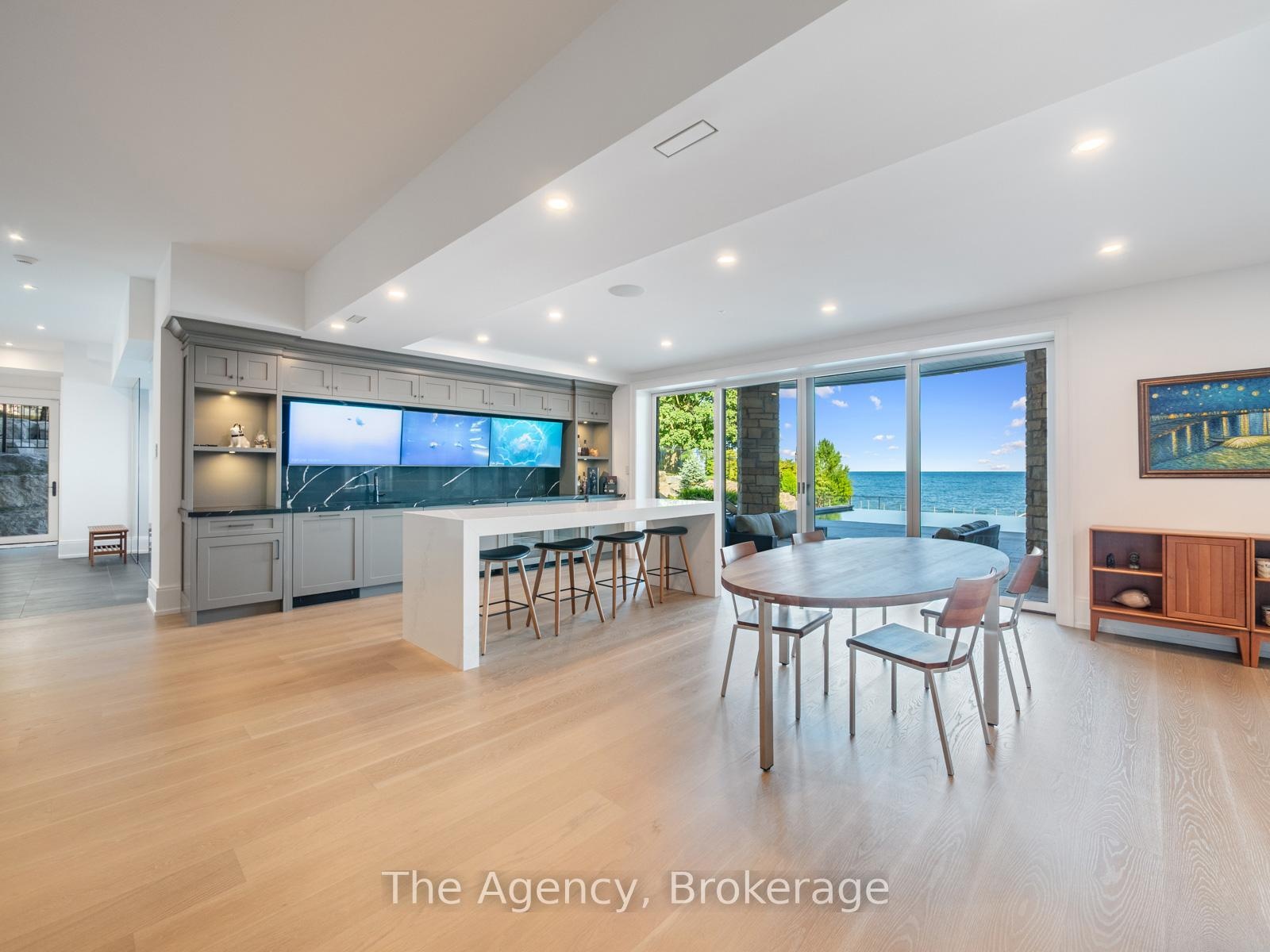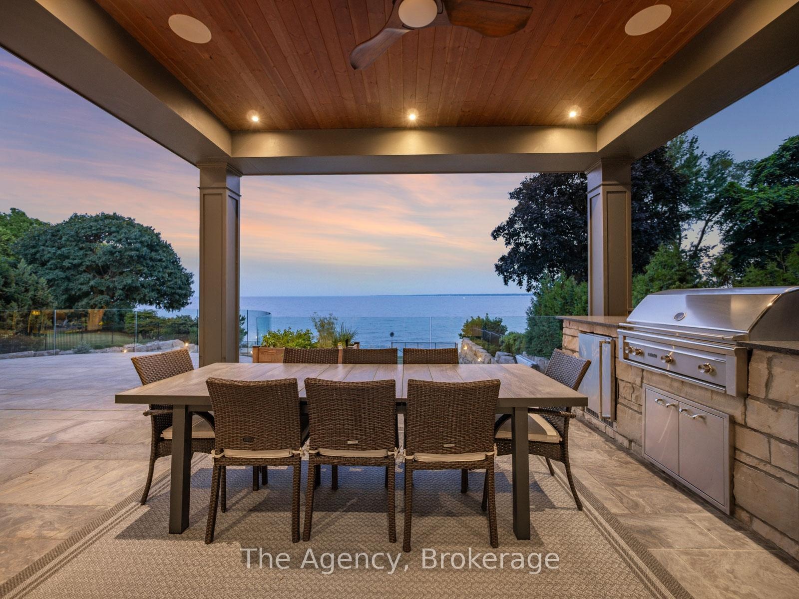 The Haven. A rare waterfront estate on a private laneway in South Burlington. Set on nearly of an acre with 103 ft of shoreline and full riparian rights, this property offers privacy, direct lake access, 11,417 Sq ft of living space and a lifestyle that feels like a luxury resort without leaving home. Inside, the lake takes centre stage. Floor to ceiling windows in the great room frame the view, anchored by 22-foot ceilings, a dramatic full-height stone fireplace, and a skylight that floods the space with light. A second living room provides another place to unwind, while a private office with 18-foot beamed ceilings and a stone feature wall inspires focus. Designed by architect David Small and built by Rock Cliff Custom Homes, this home is a masterclass in craftsmanship and elegance.Details like radiant heated floors throughout and a heated driveway ensure year-round comfort.Three outdoor terraces extend the living space.One includes a full outdoor kitchen with built-in BBQ, fridge, and bar sink; another is heated and screened for cooler nights.An additional custom stone patio sits at the waters edge.The backyard is a showstopper.An infinity edge pool appears to spill into the lake, while a private tennis court adds to the resort feel.Inside the kitchen features a large quartz island, Sub- Zero, Miele, and Wolf appliances, and custom cabinetry.A generous mudroom and main-floor laundry offer everyday function.Upstairs are four bedrooms, each with its own ensuite.The primary suite enjoys panoramic lake views, a spa-like ensuite, and a custom dressing room with center island.A second laundry room is also on this level.The walk-out lower level includes a lounge and bar, wine cellar, golf simulator, gym with lake views, sauna, tiered theatre, guest suite, and 3 additional bathrooms.An oversized 4-car tandem garage completes the home.Just minutes to downtown Burlington and a short drive to Toronto and Niagara, this is lakeside living without compromise. Luxury Certified