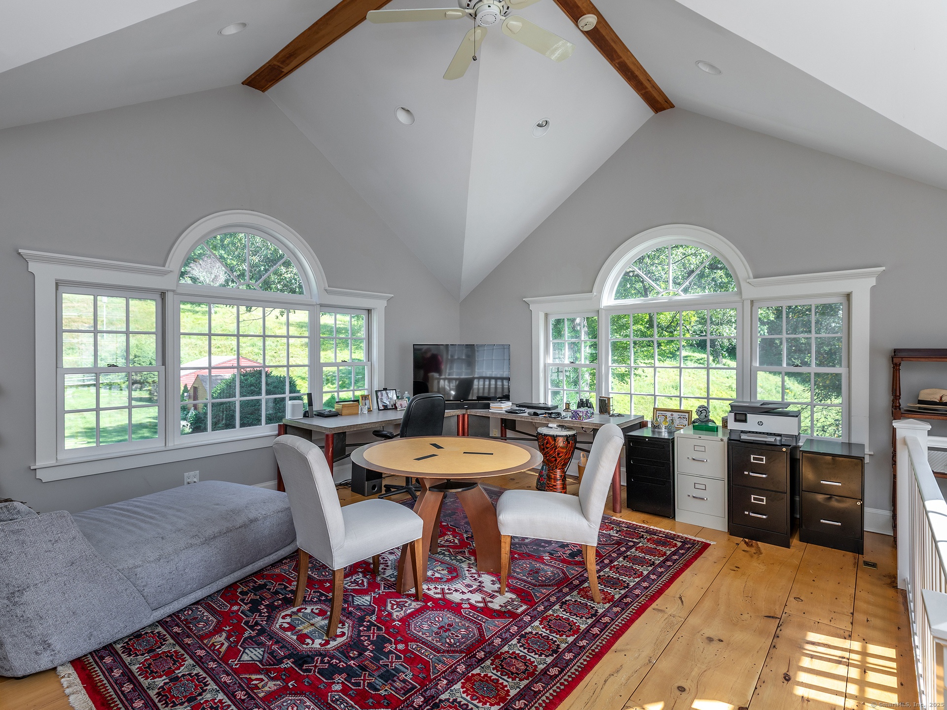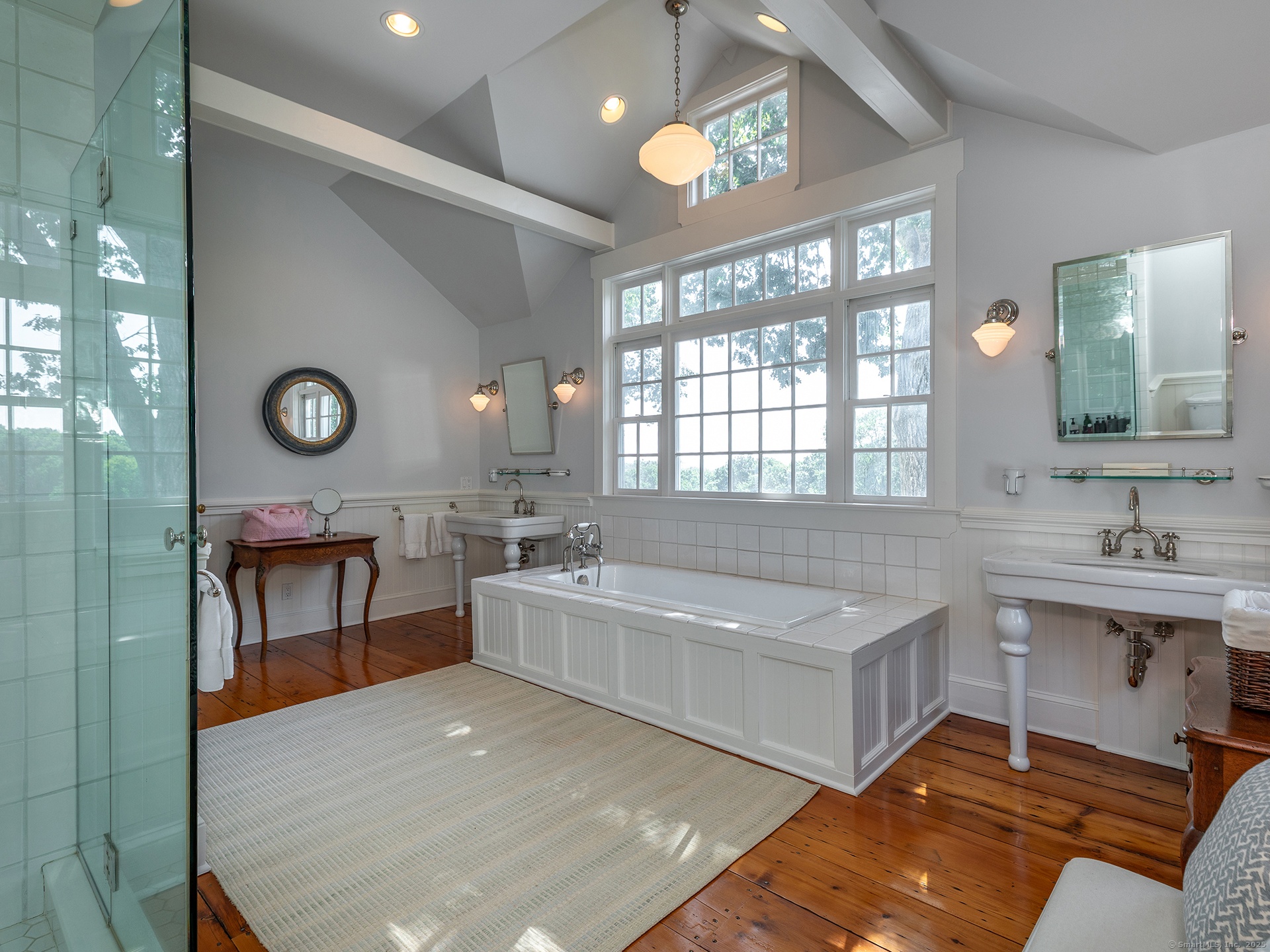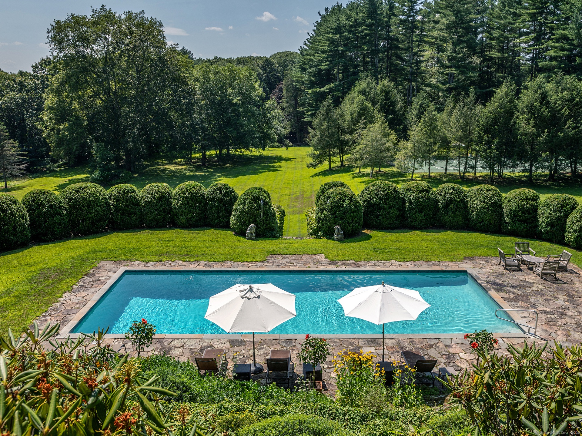 DescriptionIconic and authentic, Shagbark Farm in central Washington represents the quintessential Connecticut country escape. Set on 3 separate parcels totaling over 85 acres and sited down a long private driveway this is the property of dreams. Classic white renovated 1930's colonial with 5 bedrooms, 5.5 bathrooms and incredible entertaining spaces inside and out. Oversized eat in gourmet kitchen with fireplace. Sun room and living room lead to a spectacular entertaining deck with multiple seating areas, stand alone bar, expansive western views over the pool, lawns, tennis court and party barn. Spacious primary suite with fireplace, multiple closets, access to private stairway, sitting room and 2 full baths. First floor guest/staff room with office above. Charming 3 bedroom 2 bath guesthouse, nicely located away from the main residence. 2 separate 3 bay garage barns, each with attached garden or work rooms. Party barn with half bath near tennis court. 60' pool with fieldstone terrace and incredible oversized boxwood hedging. Fruit trees, pond, trails, multiple outbuildings and the potential for additional conservation easements. Less than 5 minutes to the Mayflower, Washington Depot's shops and services, along with Steep Rock's main preserve with the Shepaug River and miles of hiking. This is a special opportunity to own a disappearing and hard to find country estate in the heart of Litchfield County. Floorplans available by request.Amenities- Awnings