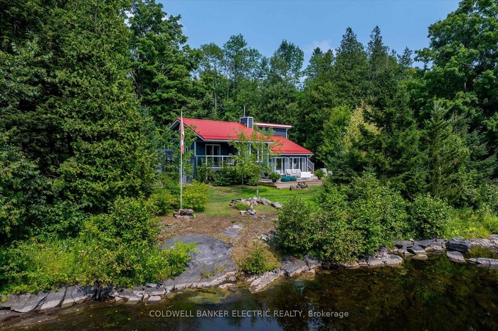 Magnificent year-round waterfront retreat offering approximately 675 feet of river frontage, as well as space to build a bunkie, tucked away on 1.66 acres of private, wooded landscape. This contemporary year-round home fronts directly on the serene waters of Beaver Creek, just 10 minutes outside of Marmora, Ontario. Inside, the home has been meticulously updated with a modern design that blends comfort and style. The sunken living room offers a cozy yet spacious feel, warmed by a beautiful wood stove perfect for quiet evenings with views of the river. The custom designed kitchen features Quartz countertops and sleek finishes with a quaint dining area off to the side. Down the hall are two spacious bedrooms -the primary, offering a walkout to the private balcony for two, a laundry room and lastly is a modern bathroom with glass shower to complete the homes refined interior. Outside, unwind in your private luxurious spa tub after embracing an outdoor workout in the fully enclosed glass gym overlooking the water, wander the peaceful forest trail towards the natural rapids to a Gazebo which invites you to unwind with the soothing sounds of nature, or take a relaxing boat ride down the river to Crowe Lake, where you will find a large sandbar. The detached insulated 1.5-car garage provides ample storage for toys and gear, and includes an upper-level loft finished as a bright guest space, studio, or office, complete with a ductless heat pump and a walkout sundeck overlooking the river. If you require additional guest space, a clearing in the woods has been made for a cozy guest cabin. This property is a rare blend of nature, privacy, and modern comfort -this is more than a home; it's a lifestyle... and definitely worth the drive to view!