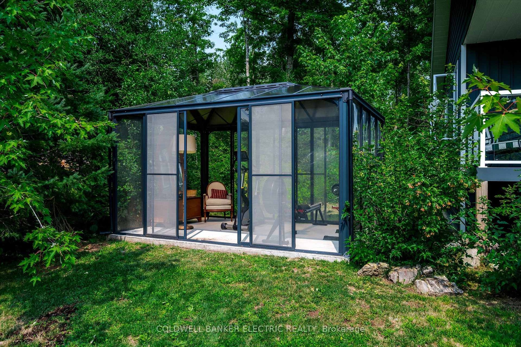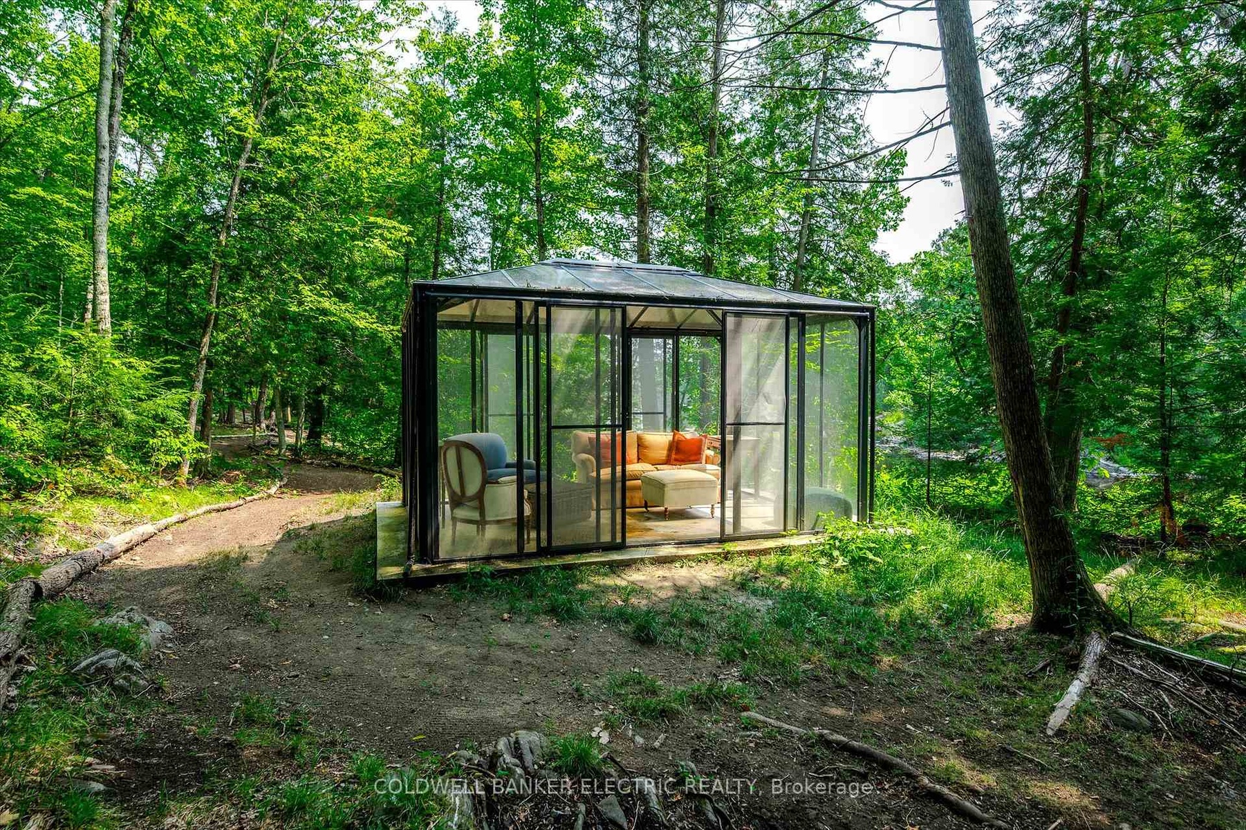 DescriptionMagnificent year-round waterfront retreat offering approximately 675 feet of river frontage, as well as space to build a bunkie, tucked away on 1.66 acres of private, wooded landscape. This contemporary year-round home fronts directly on the serene waters of Beaver Creek, just 10 minutes outside of Marmora, Ontario. Inside, the home has been meticulously updated with a modern design that blends comfort and style. The sunken living room offers a cozy yet spacious feel, warmed by a beautiful wood stove perfect for quiet evenings with views of the river. The custom designed kitchen features Quartz countertops and sleek finishes with a quaint dining area off to the side. Down the hall are two spacious bedrooms -the primary, offering a walkout to the private balcony for two, a laundry room and lastly is a modern bathroom with glass shower to complete the homes refined interior. Outside, unwind in your private luxurious spa tub after embracing an outdoor workout in the fully enclosed glass gym overlooking the water, wander the peaceful forest trail towards the natural rapids to a Gazebo which invites you to unwind with the soothing sounds of nature, or take a relaxing boat ride down the river to Crowe Lake, where you will find a large sandbar. The detached insulated 1.5-car garage provides ample storage for toys and gear, and includes an upper-level loft finished as a bright guest space, studio, or office, complete with a ductless heat pump and a walkout sundeck overlooking the river. If you require additional guest space, a clearing in the woods has been made for a cozy guest cabin. This property is a rare blend of nature, privacy, and modern comfort -this is more than a home; it's a lifestyle... and definitely worth the drive to view!Virtual Tour: https://pages.finehomesphoto.com/411-Fidlar-Glen-Rd/idxAmenities- Boat Launch
