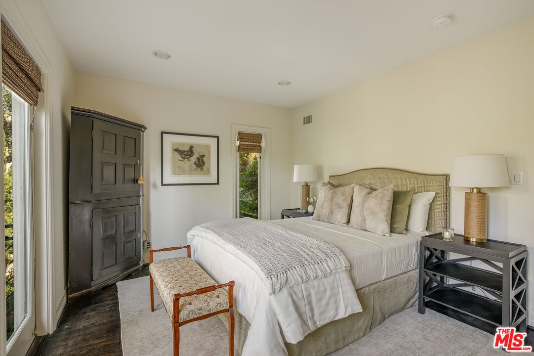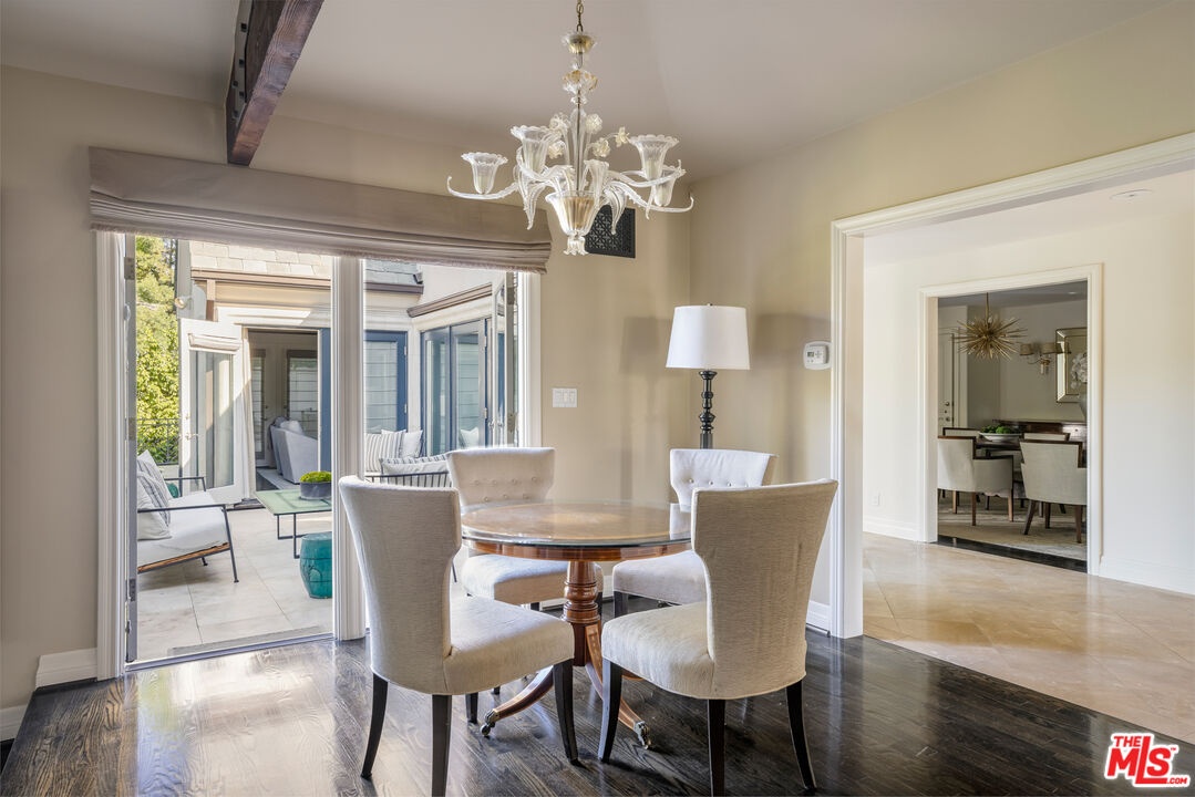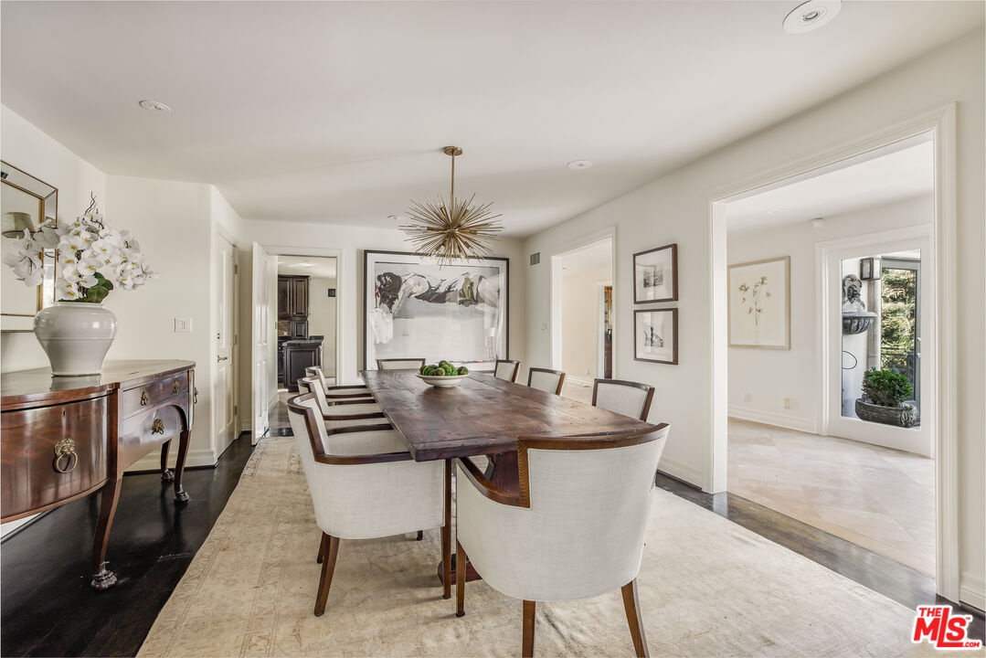 DescriptionA timeless and turn-key residence in the City of Beverly Hills. Just one mile north of Sunset Blvd, this elegant home sits on a quiet cul-de-sac off lower Benedict Canyon. With five bedrooms and five and a half baths, the three-story home offers a flexible layout with ultimate privacy and wonderful city and mountain views. At the heart of the home lies a serene, garden courtyard visible from all the main rooms. Up a short flight of stairs from the foyer, the main floor is connected by a sunny and gracious hallway. Here you'll find a spacious, sunken family room and wet bar, a well-appointed eat-in kitchen, a formal dining room, living room, office, powder room, and a staff bedroom & bath tucked away behind the laundry room. On the top floor is a primary bedroom featuring dual bathrooms, two walk-in closets, and two private balconies which incredible views. Another upstairs bedroom with en-suite bath is currently used as an office. The lower level is dedicated to entertainment with a spacious TV room and a pool table. Two more bedrooms (one currently used as a gym) and a full bathroom with a steam shower complete this level. Outdoors, you'll find a beautifully landscaped courtyard, offering private space for relaxation, entertaining, and dining. A two-car garage, walk-in security gate, and locked gardener entrance offer ultimate security. This Beverly Hills classic is the perfect blend of timeless elegance and modern comfort.NeighborhoodMore listings: