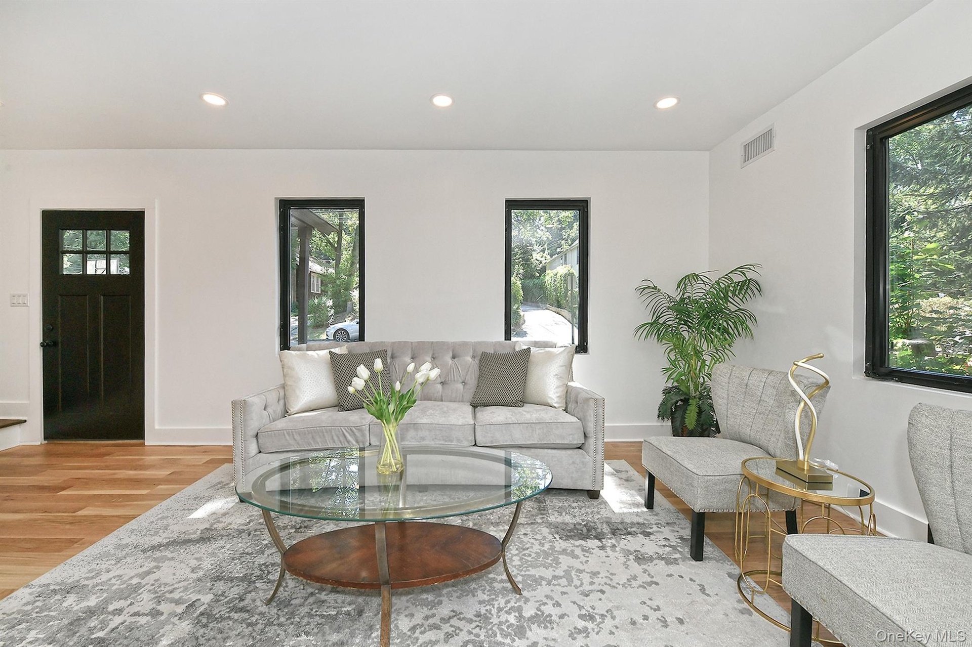 - Living area with recessed lighting, light wood finished floors, and plenty of natural light