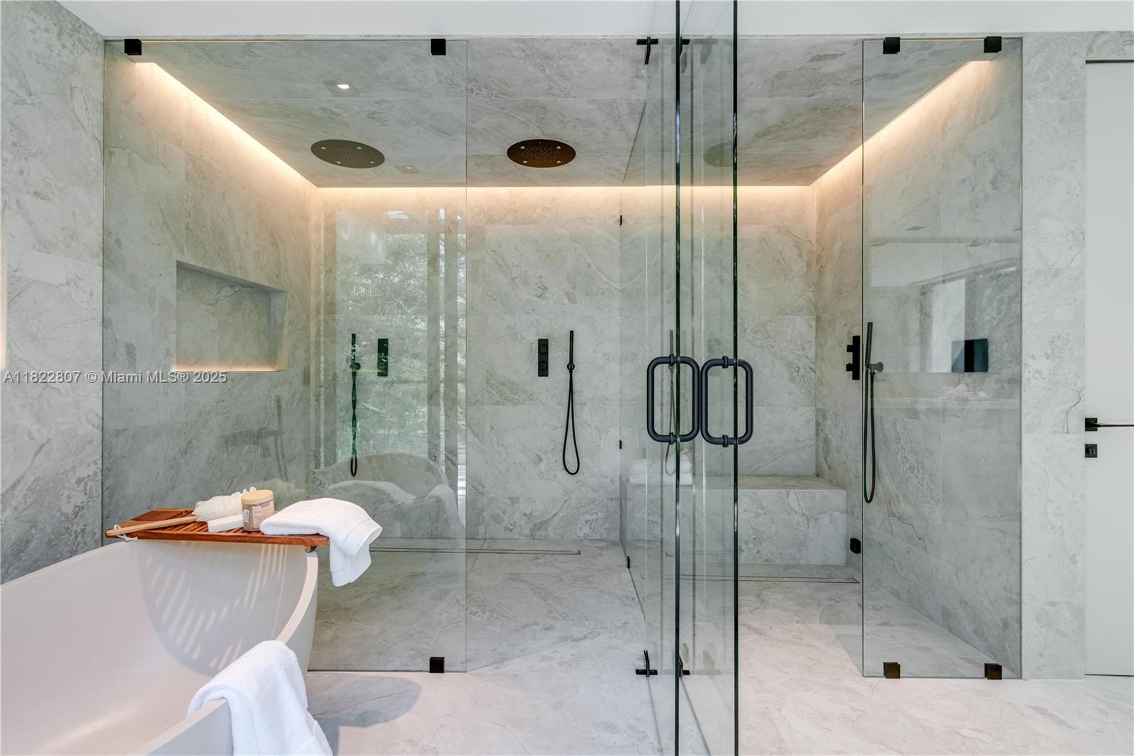Welcome to CASA GRANDE, a striking 7BD/7BA modern residence on a premium corner lot in the heart of Coconut Grove designed by Bernardo Paredes and developed by the Modd Group. This home blends contemporary luxury with comfort and functionality. Enter through a dramatic grand foyer with a sculptural floating staircase. Main level features an expansive living room, formal dining, state-of-the-art kitchen with walk-in pantry, family room with custom millwork, home office, laundry, 2-car garage, and a serene yoga suite/cabana with full bath. Upstairs offers five ensuite bedrooms and a second-floor family lounge ideal for relaxing or movie nights. Enjoy seamless indoor-outdoor living with a covered patio, summer kitchen, resort-style pool, spa, and lush tropical landscaping.
