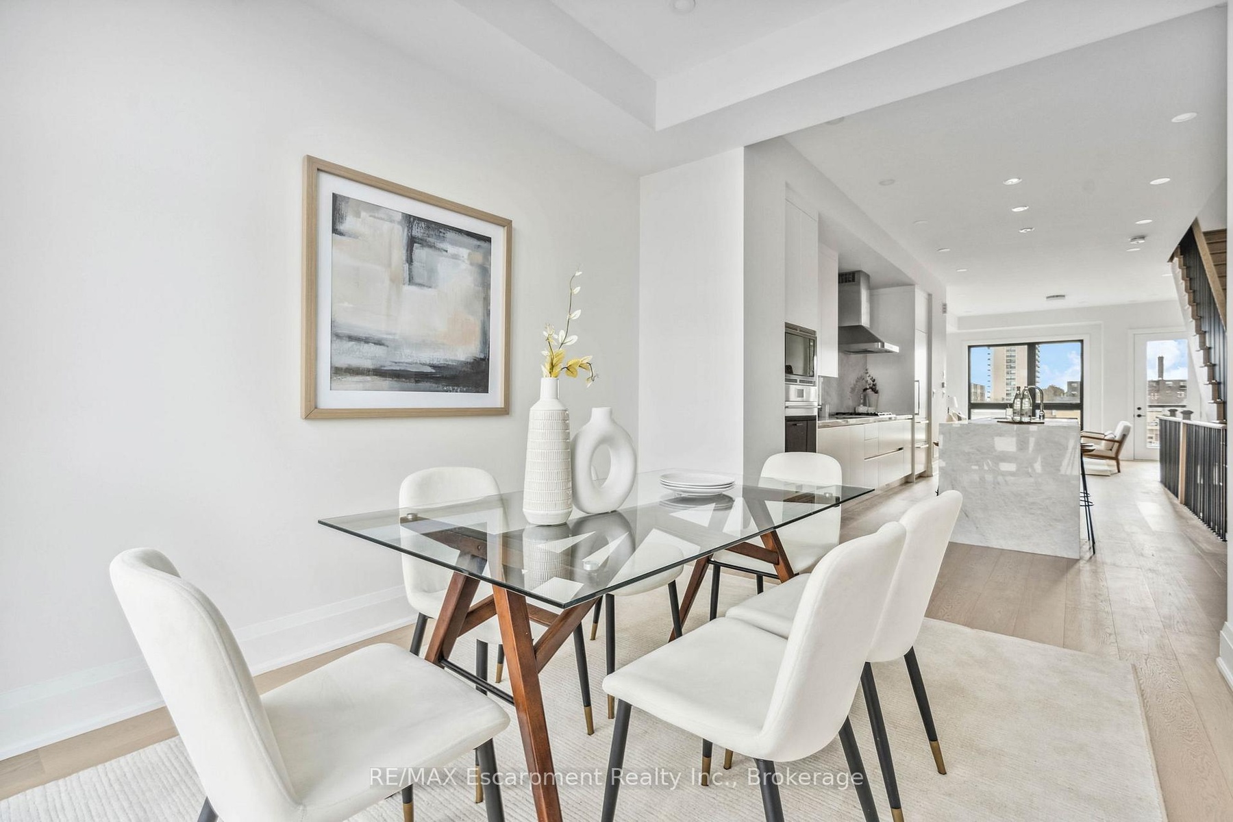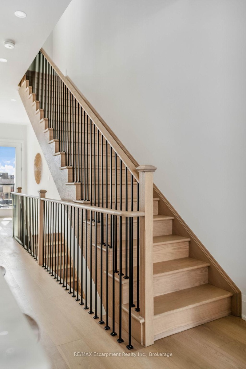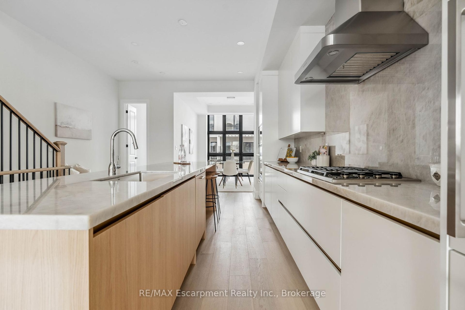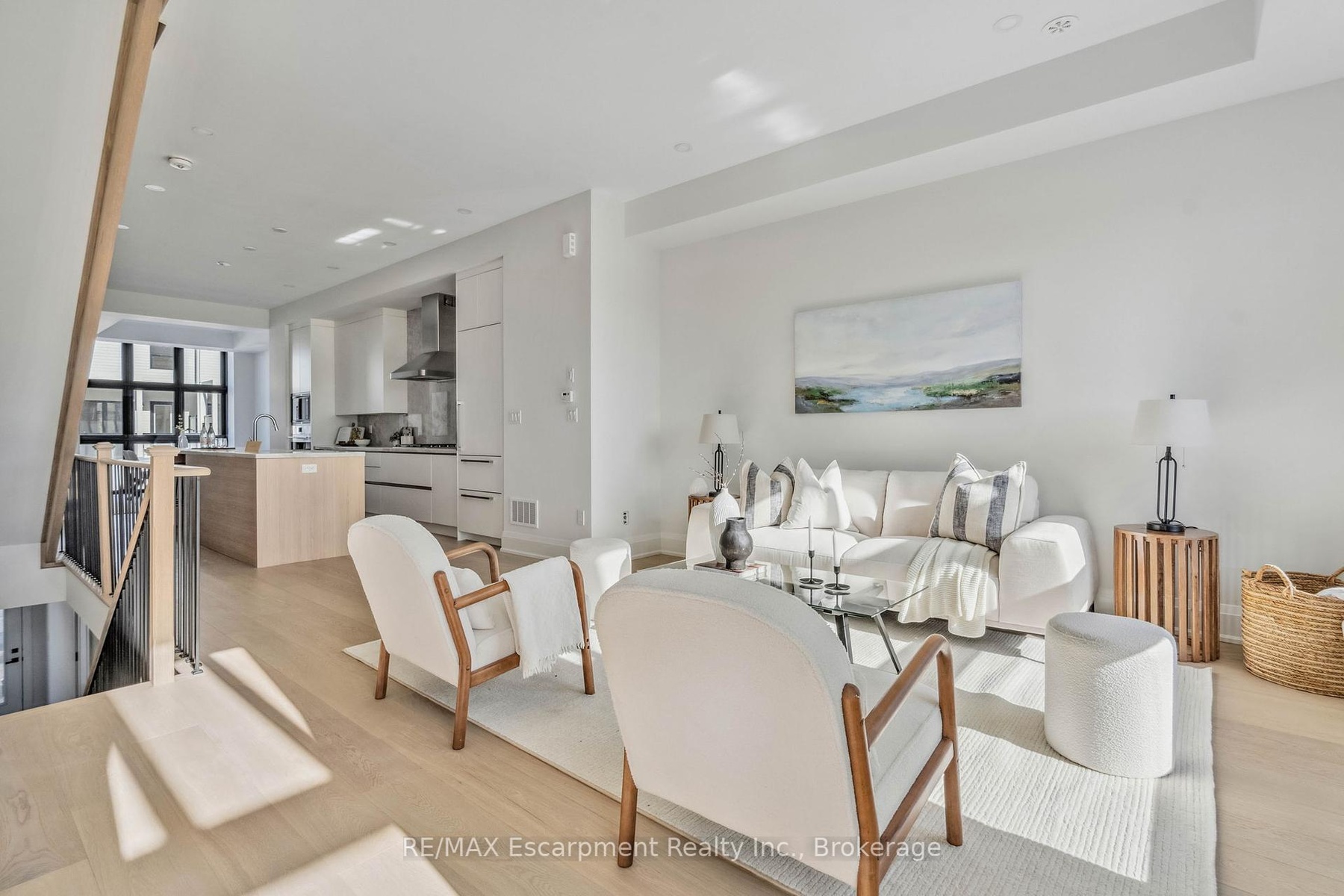 An exceptional opportunity to own a brand new luxury executive townhome by Sunfield Homes, ideally located within walking distance to Bronte Harbour and the scenic shores of Lake Ontario. Nestled in the vibrant heart of Bronte Village, you're just steps from boutique shops, local restaurants, transit, the Bronte Marina, and the area's beloved annual festivals. This beautifully designed home has over $140,308 of upgrades, and offers approximately 3,019 sq. ft. of finished living space, including a 726 sq. ft. finished basement. A true showcase offering a blend of comfort, functionality, and elevated finishes. Enjoy wide-plank engineered oak flooring, 24" x 24" porcelain tiles, smooth ceilings, and over 20 pot lights throughout the home. The spacious kitchen is a standout feature, complete with Taj Mahal Quartzite countertops, a stunning slab backsplash, an oversized island, and five built-in appliances, perfect for both casual dining and entertaining. Architectural details include a custom oak staircase with metal pickets, 10-foot ceilings on the second floor (main living level), and 9-foot ceilings on the remaining floors, creating an open and airy atmosphere. A 141 sq. ft. outdoor terrace extends your living space, offering the perfect setting for morning coffee or evening gatherings. The ground floor bedroom or den features a walkout to the backyard, while the finished basement adds flexible space for a home office, gym, or media room. With its ideal location and thoughtful design, this move-in ready townhome offers an unparalleled lifestyle in one of Oakville's most charming and walkable lakeside communities.