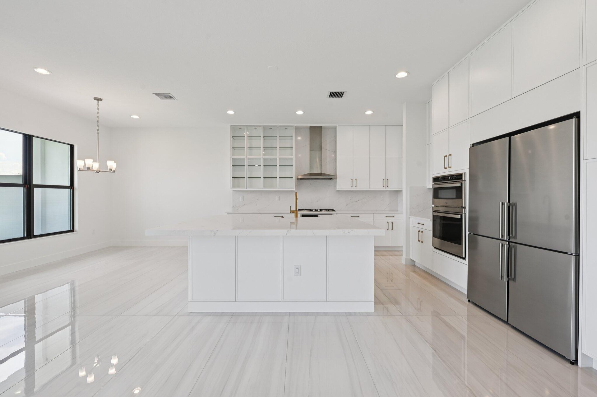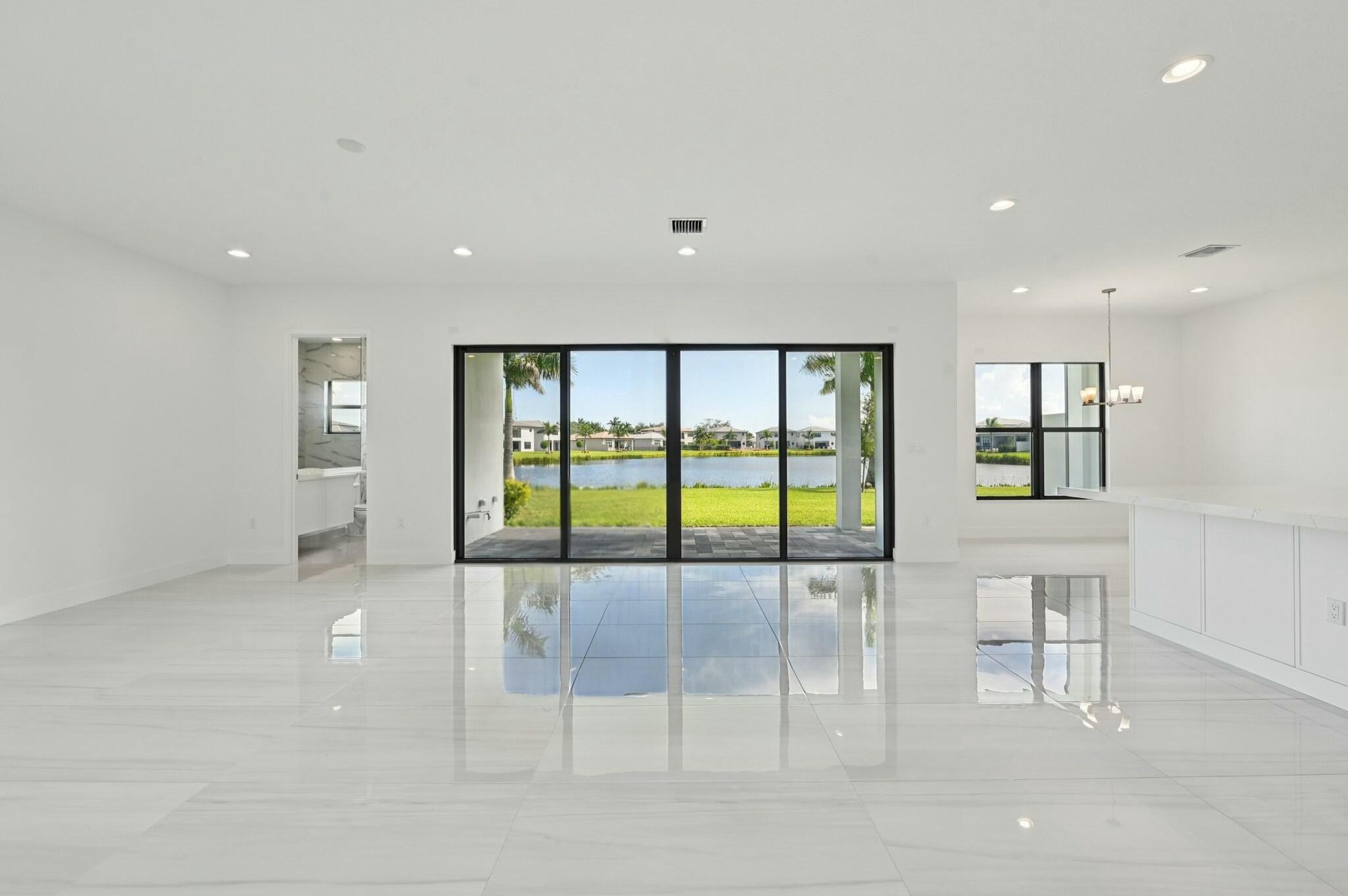 Come & See this Brand New Lakefront Home | 5BD + Den | Designer Finishes Throughout. Stunning new construction home with expansive long lake views and premium upgrades throughout. This spacious 5-bedroom home showcases a rare his-and-her bathroom layout in the primary suite, paired with an oversized walk-in closet. Porcelain tile flooring flows seamlessly through the main level, complementing a chef-inspired kitchen with an apron-front sink, full backsplash, gas cooktop, and elegant gold hardware. All bathrooms feature luxury finishes and refined gold accents. Impact glass and a thoughtfully designed open floor plan blend elegance with everyday comfort, all within a community that truly has it all!