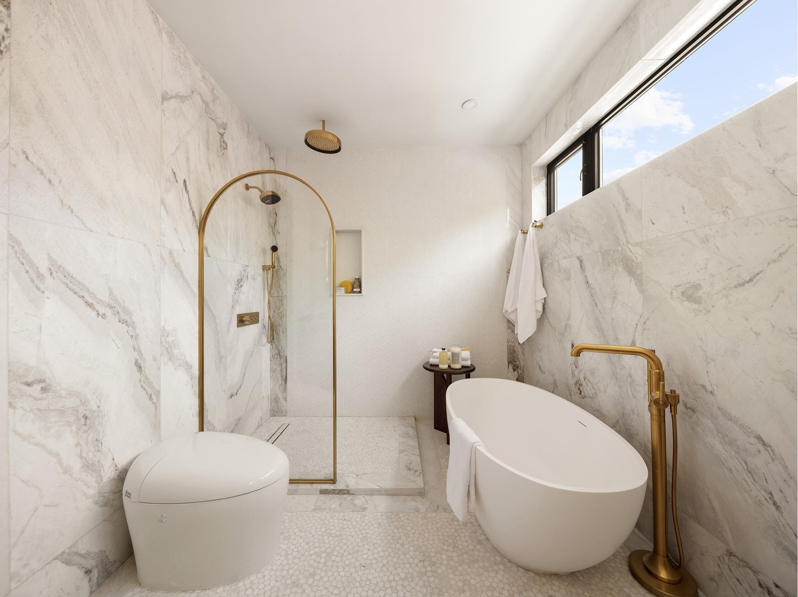 The entire second floor is dedicated to a luxurious primary suite with a generous closet, a spa-like bathroom with premium fixtures, and a separate laundry room. A windowed-nook off the stairs offers the perfect space for a home office or sitting area.