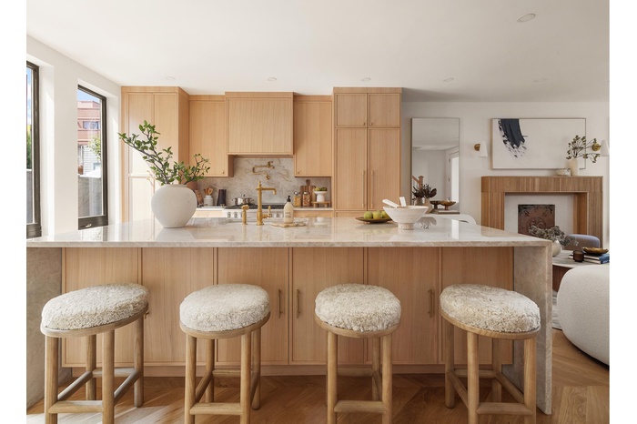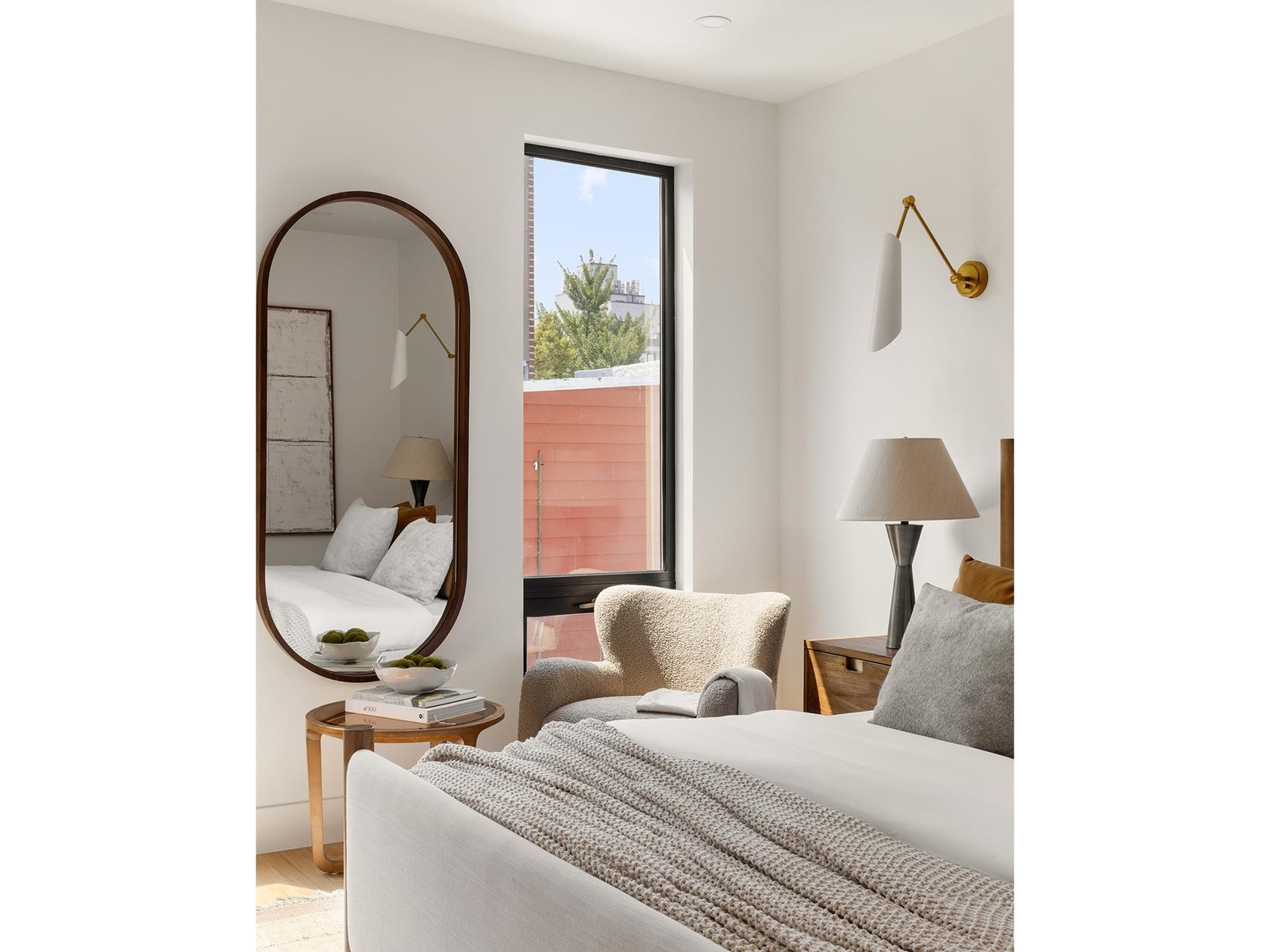 On the parlor floor, natural light soaks into the beautiful hardwood floors and cabinetry, enhancing the open-concept living and dining areas. The warm, beautifully appointed kitchen is the heart of the home, outfitted with high-end appliances and refined finishes. A convenient powder room and a second access point to the garden complete this level. The living and dining spaces feature plenty of room for hosting or relaxing at the end of the day.
