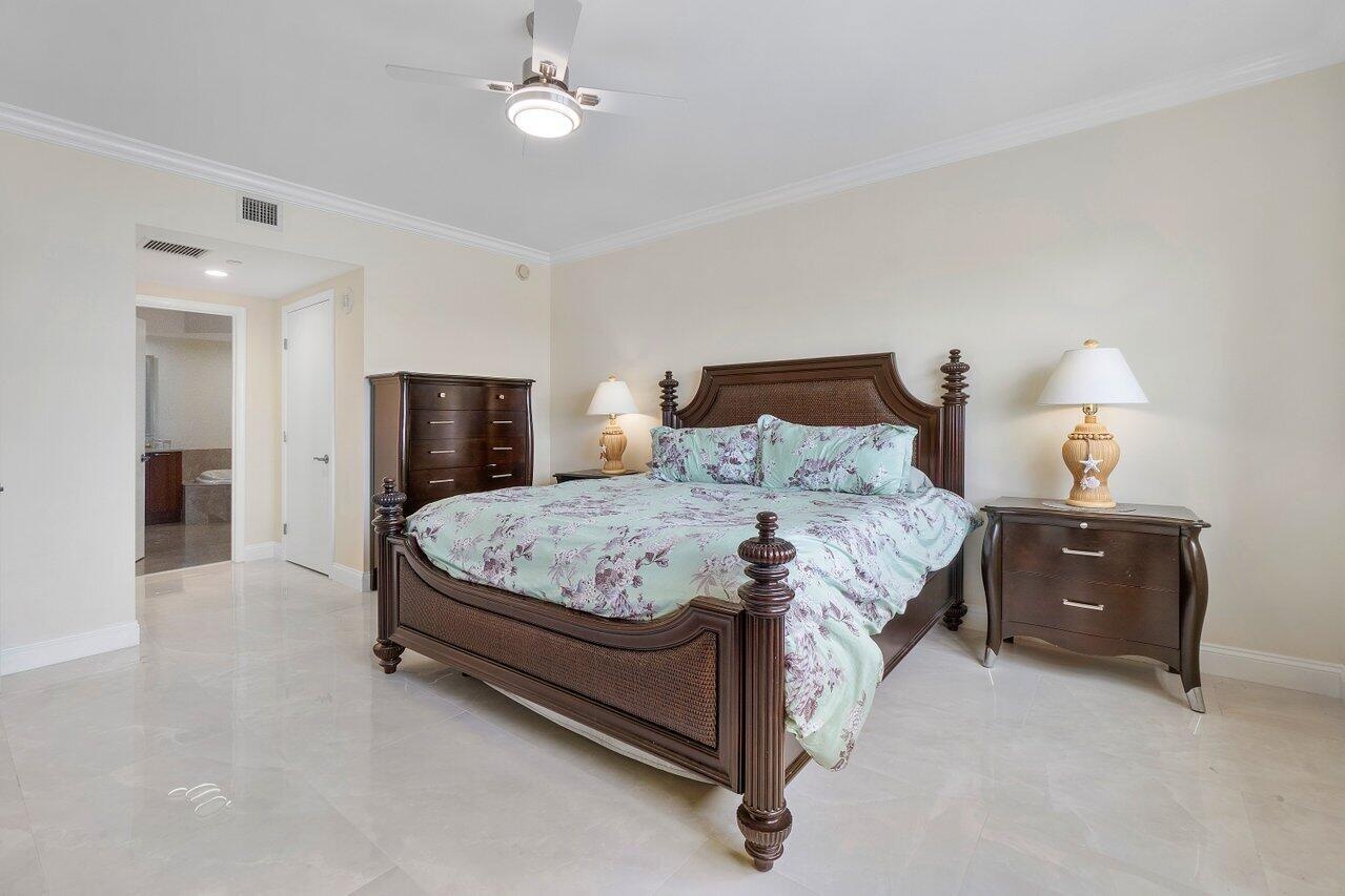 Panoramic 22nd floor Intracoastal & ocean views! Immaculate 2BR/2.5BA condo w/impact glass, Open concept w/spacious great room, dining/den, granite kitchen w/stainless appliance, split floor plan, & semi-private elevator access. Spacious owner suite w/his & her walk-in closets. Marble owner bath w/double vanity, jetted whirlpool bathtub & water closet. Freshly painted and new porcelain flooring throughout. Assigned parking in covered parking garage. 24/7 manned gate, valet, tennis, pickleball, walking path w/gazebo, covered rooftop oasis w/pool, spa, BBQ areas, clubhouse, billiard room & fitness center. Marina w/dry docks available. Jump on your boat effortlessly & be on the ocean in minutes; no fixed bridges! Minutes to nationally ranked snorkeling/diving at Blue Heron Bridge